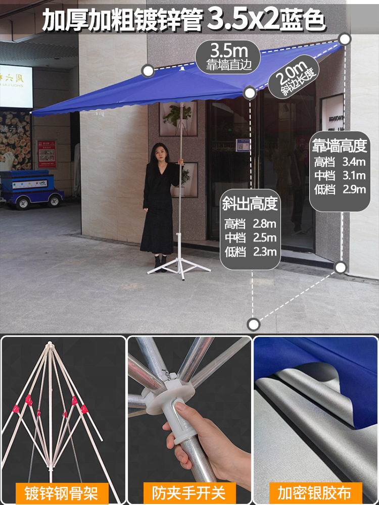 • (파란색) 경사우산 3x 2.1m 갈비뼈 [굵고 두꺼운 스타일]