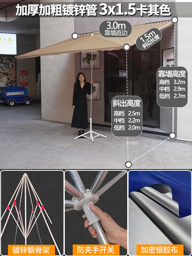 • (카키) 경사우산 3x 2.1m 갈비 [굵고 두꺼운 스타일]