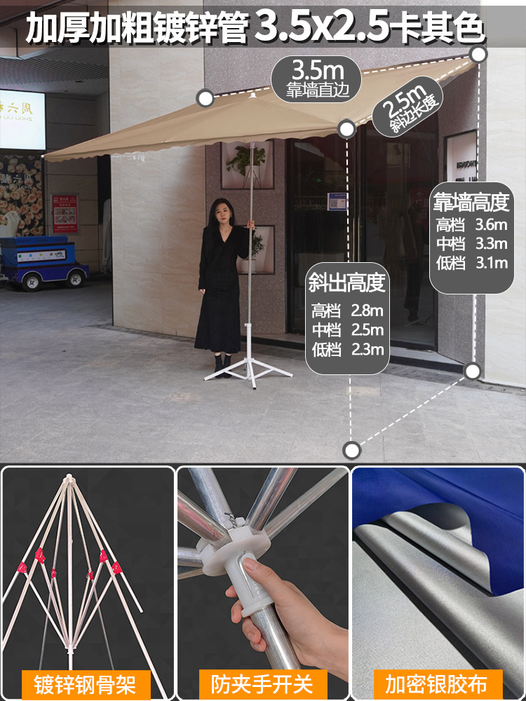 • (카키) 경사우산 3x 3.6m 갈비 [굵고 두꺼운 스타일]