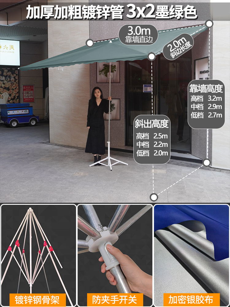 • (진한 녹색) 경사우산 3x 2.4m 갈비 [굵고 두꺼운 스타일]