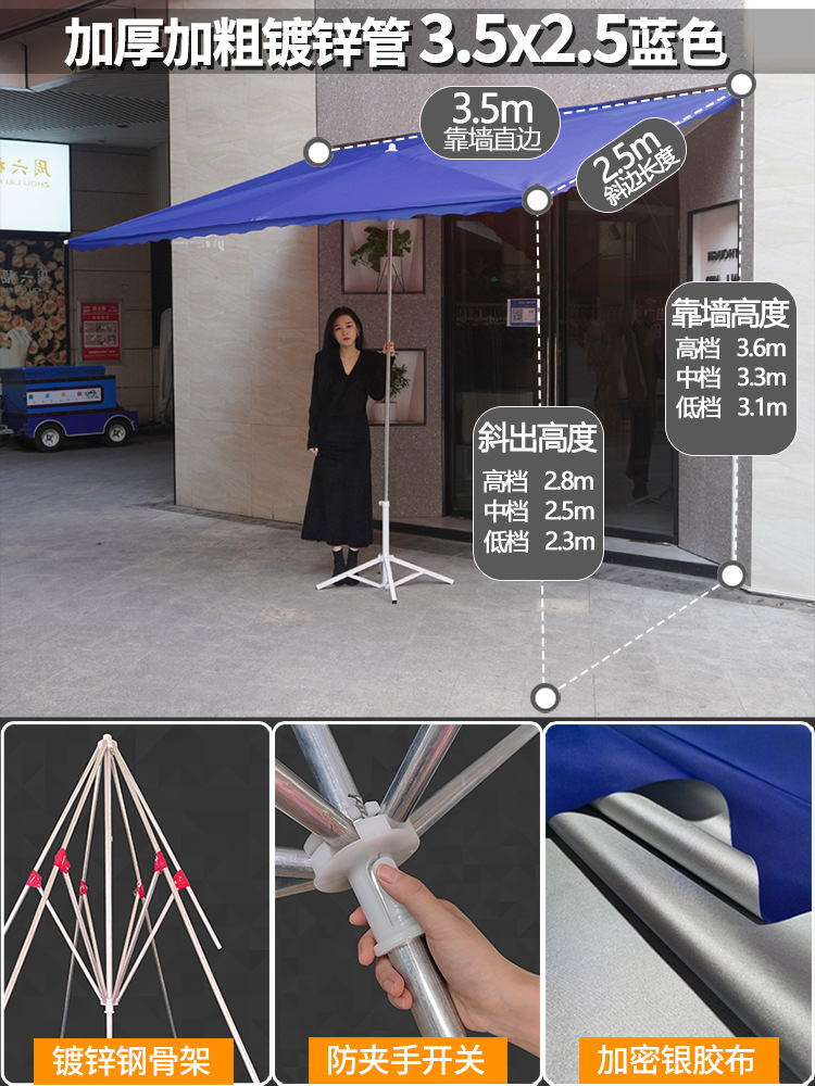 • (파란색) 경사우산 3x 3.6m 갈비뼈 [굵고 두꺼운 스타일]