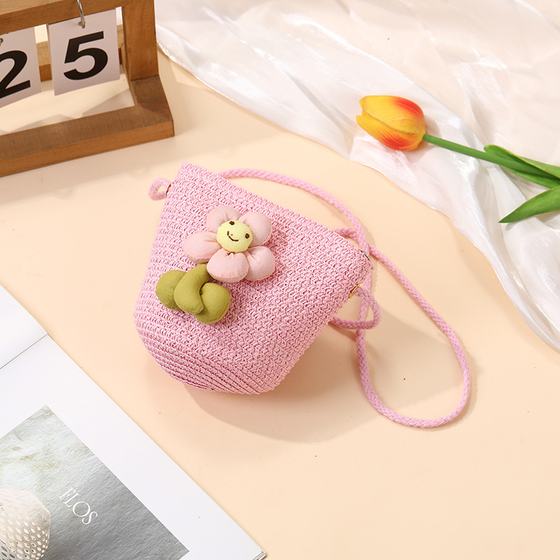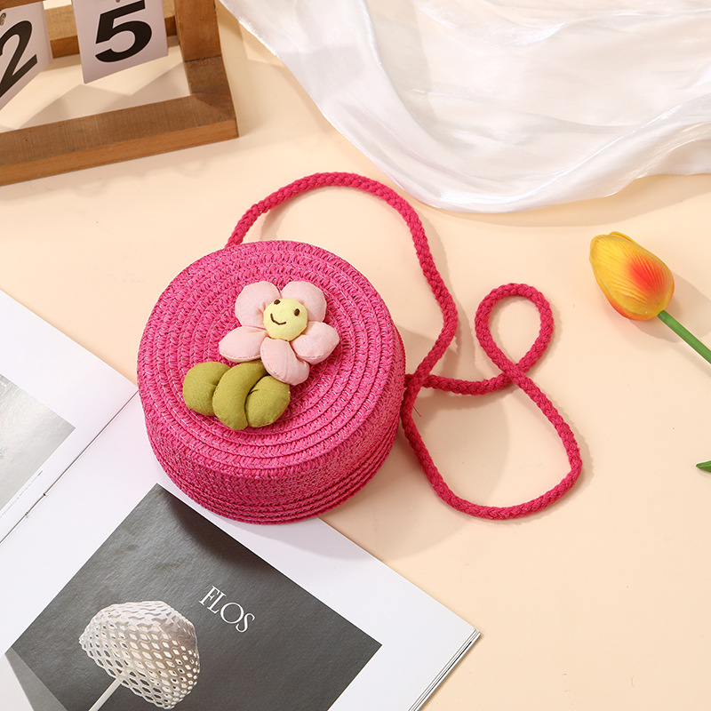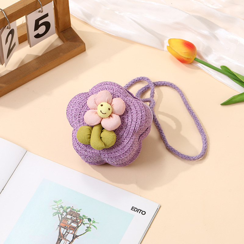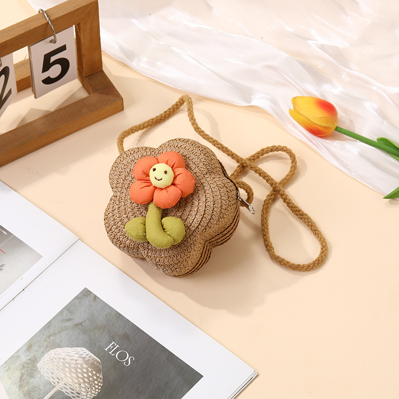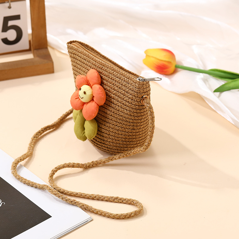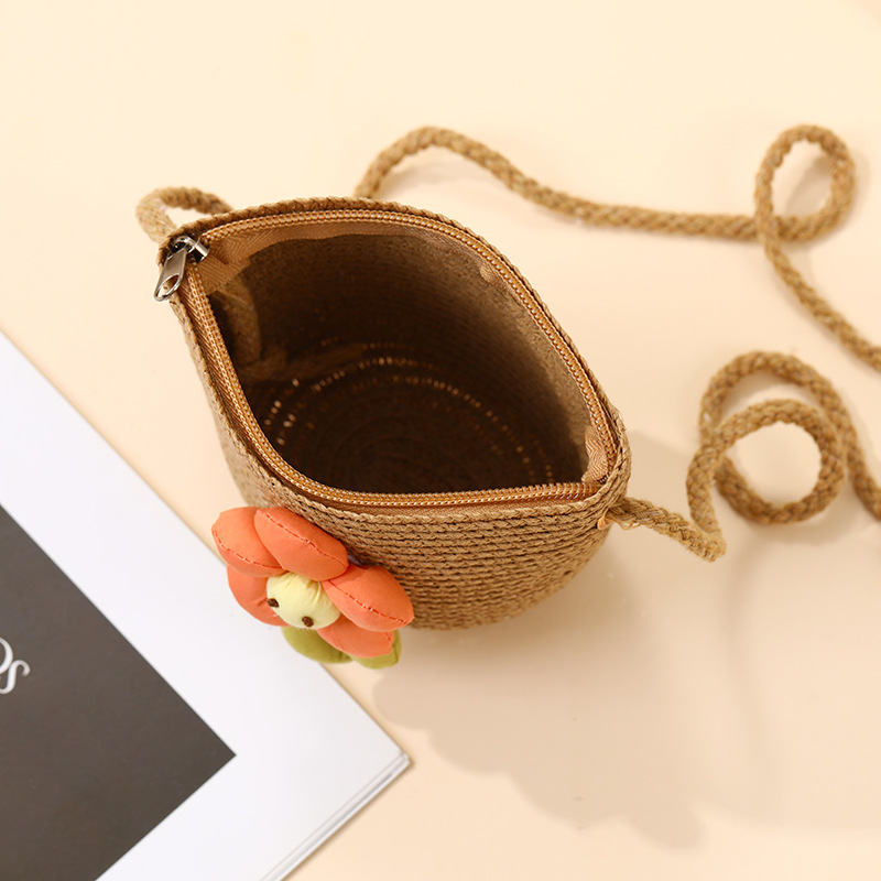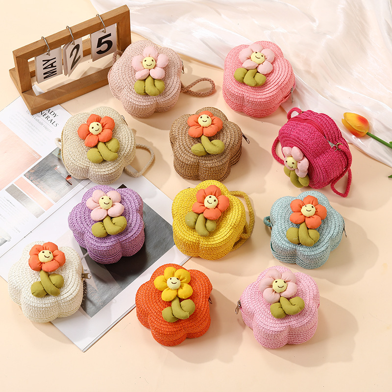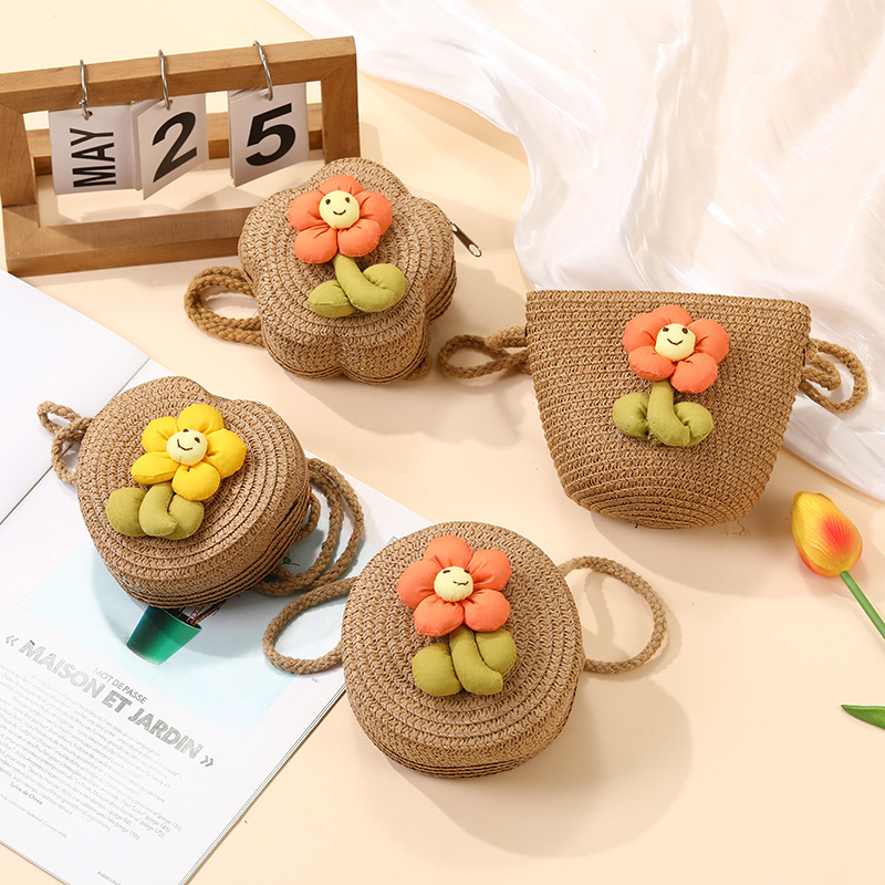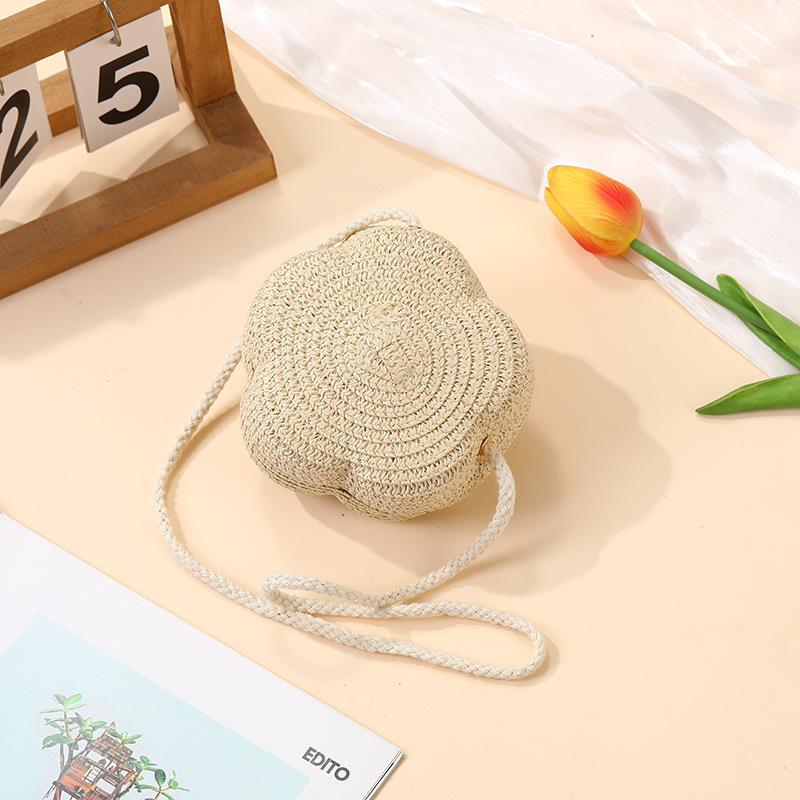 여성을위한 여름 밀짚 가방 2025 새로운 해변 휴가 해변 밀짚 가방 어린이 크로스 바디 가방 귀여운 꽃