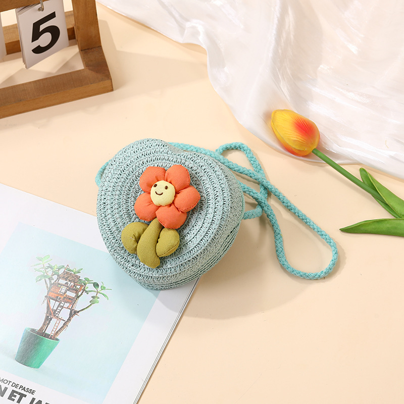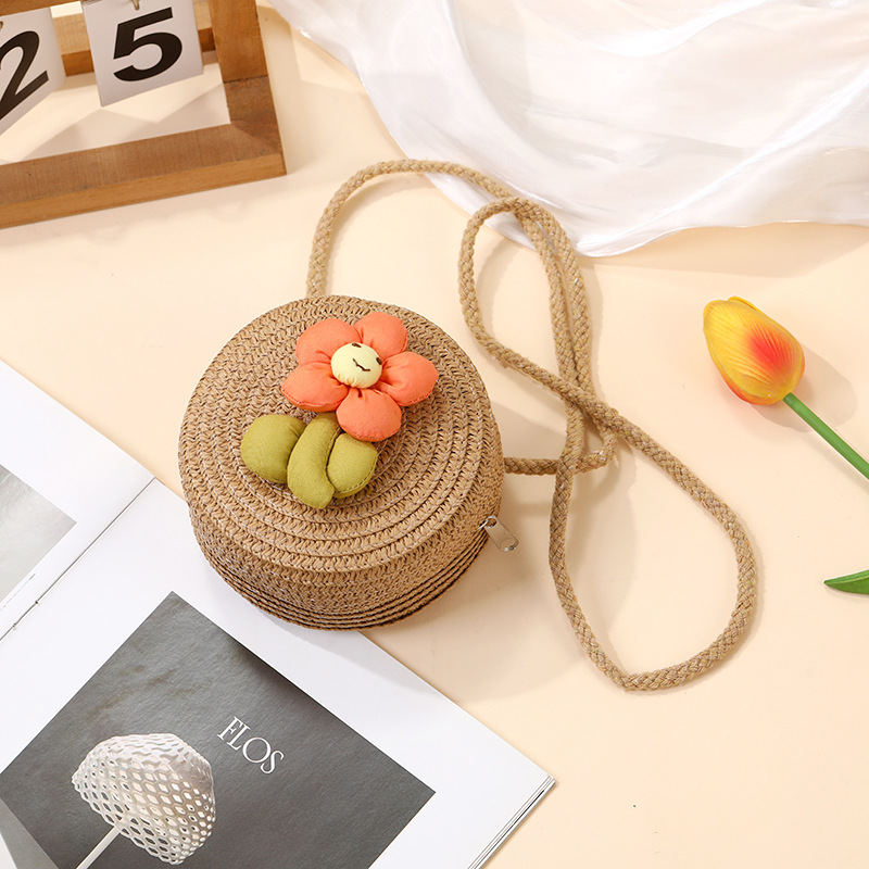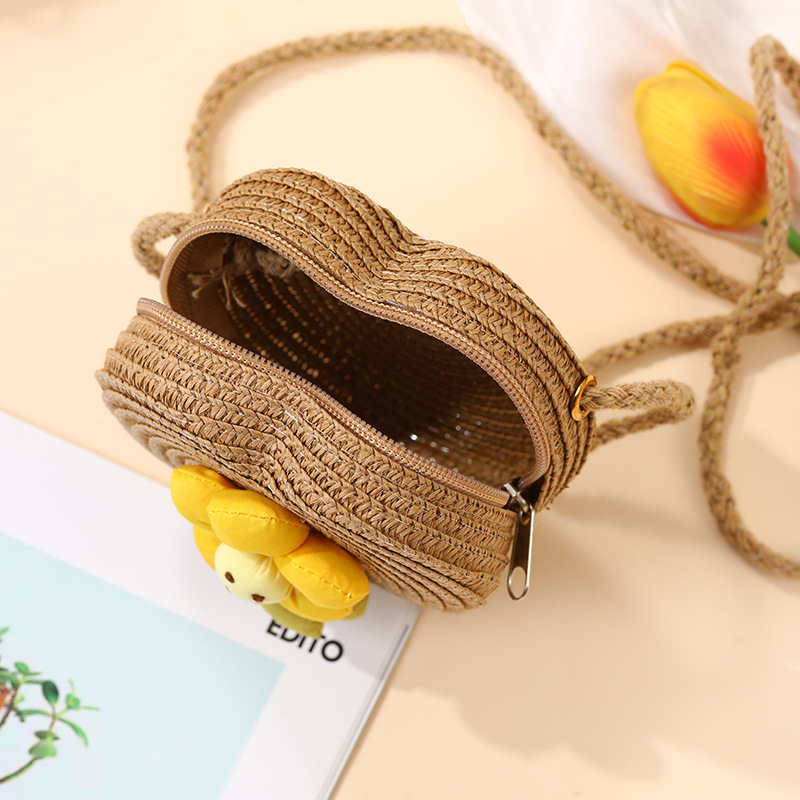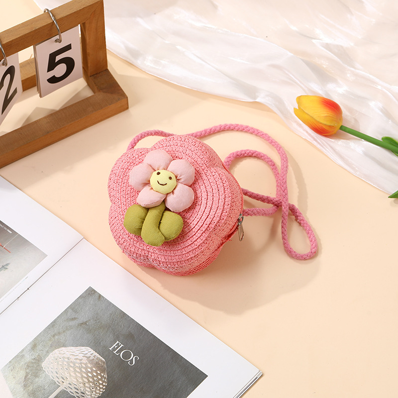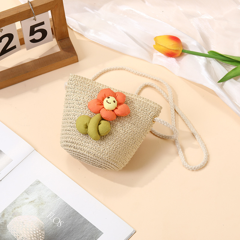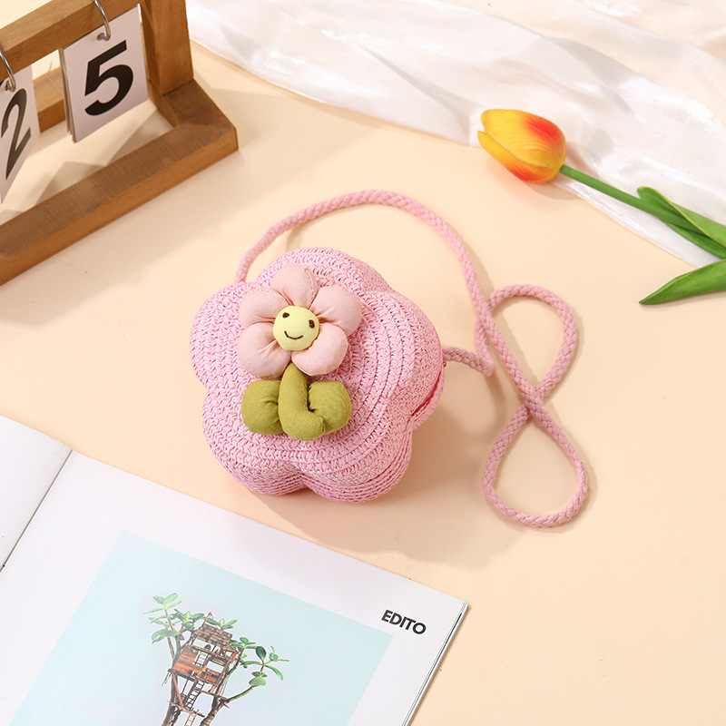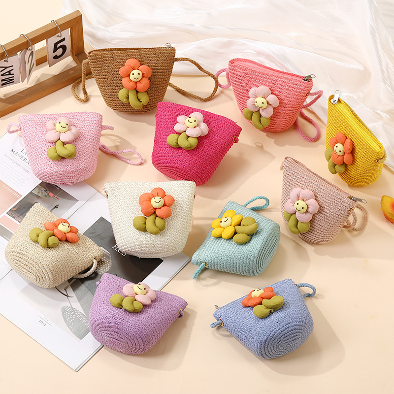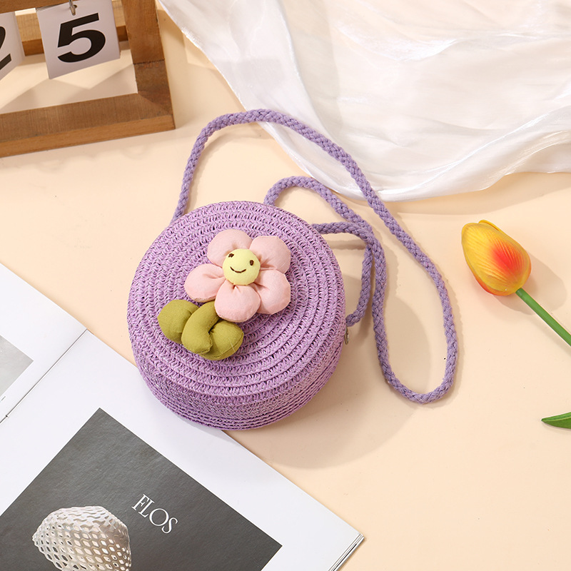 여성을위한 여름 밀짚 가방 2025 새로운 해변 휴가 해변 밀짚 가방 어린이 크로스 바디 가방 귀여운 꽃