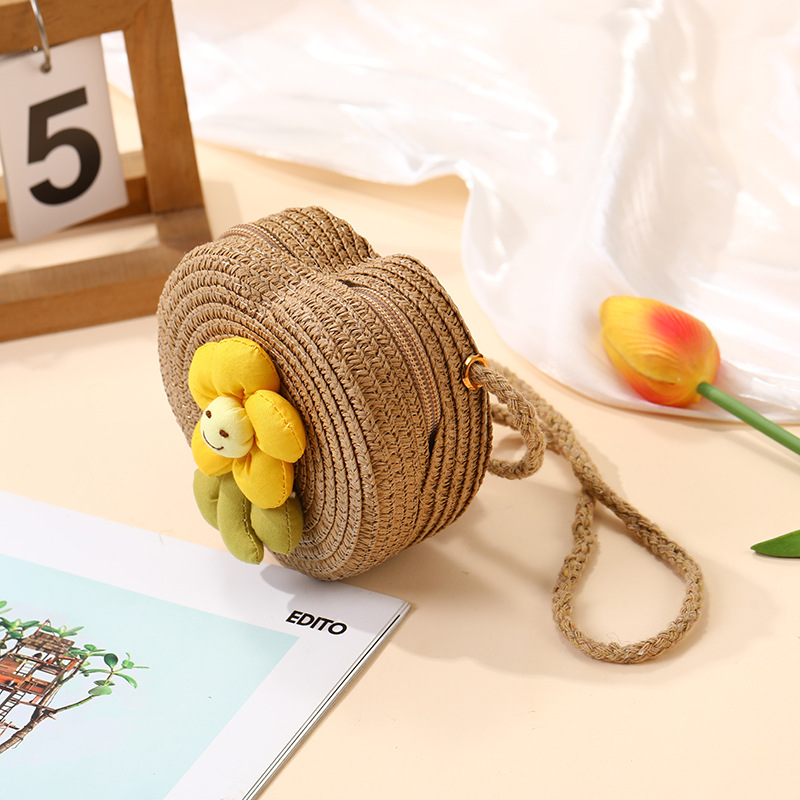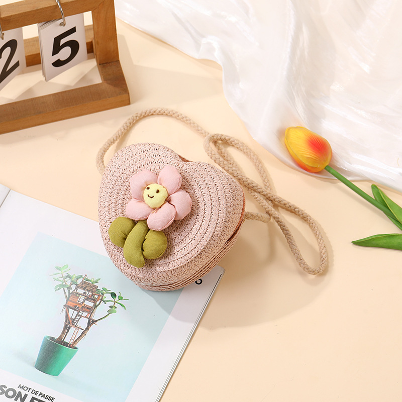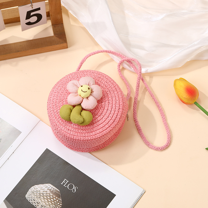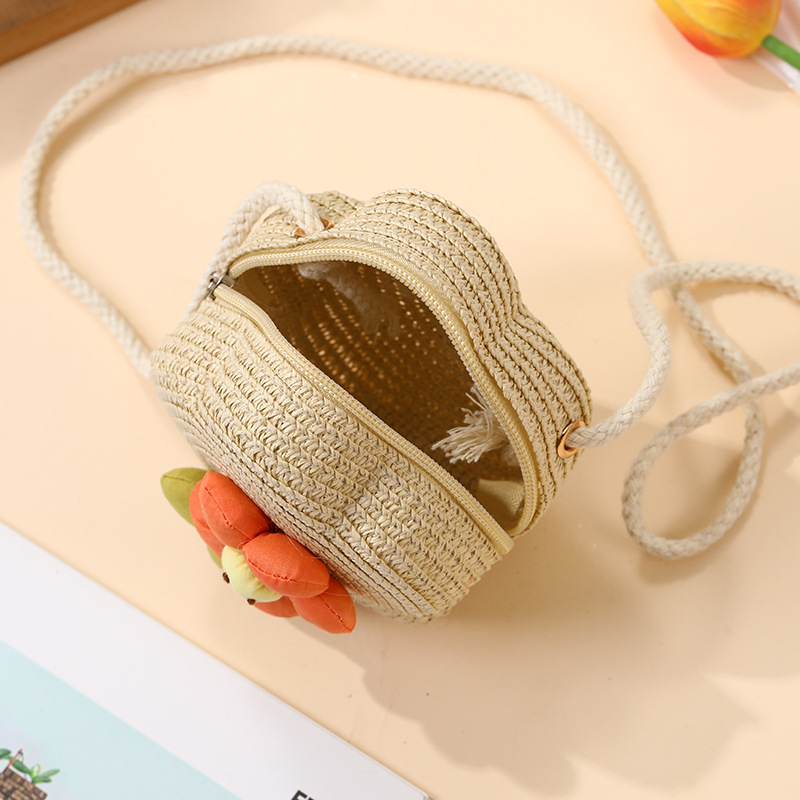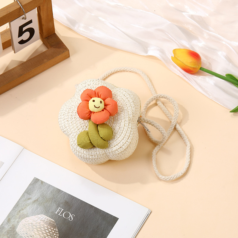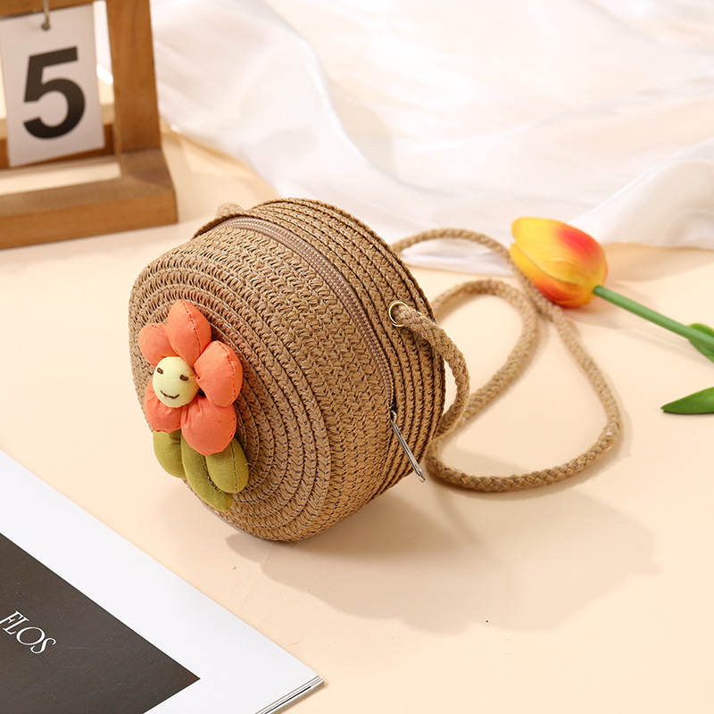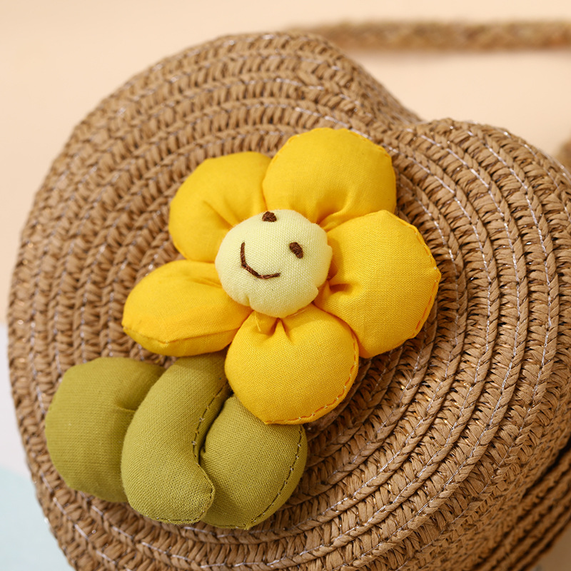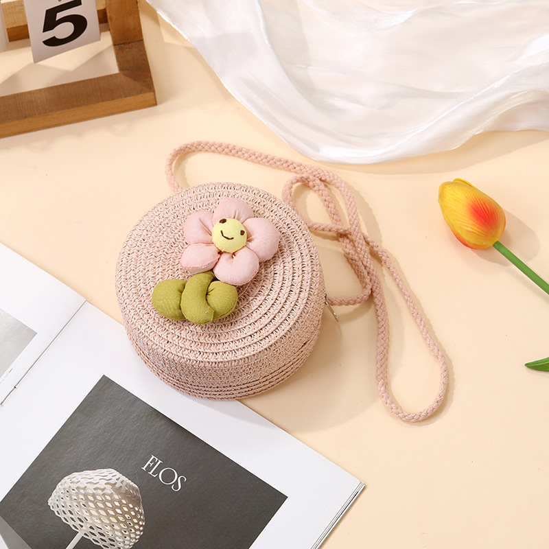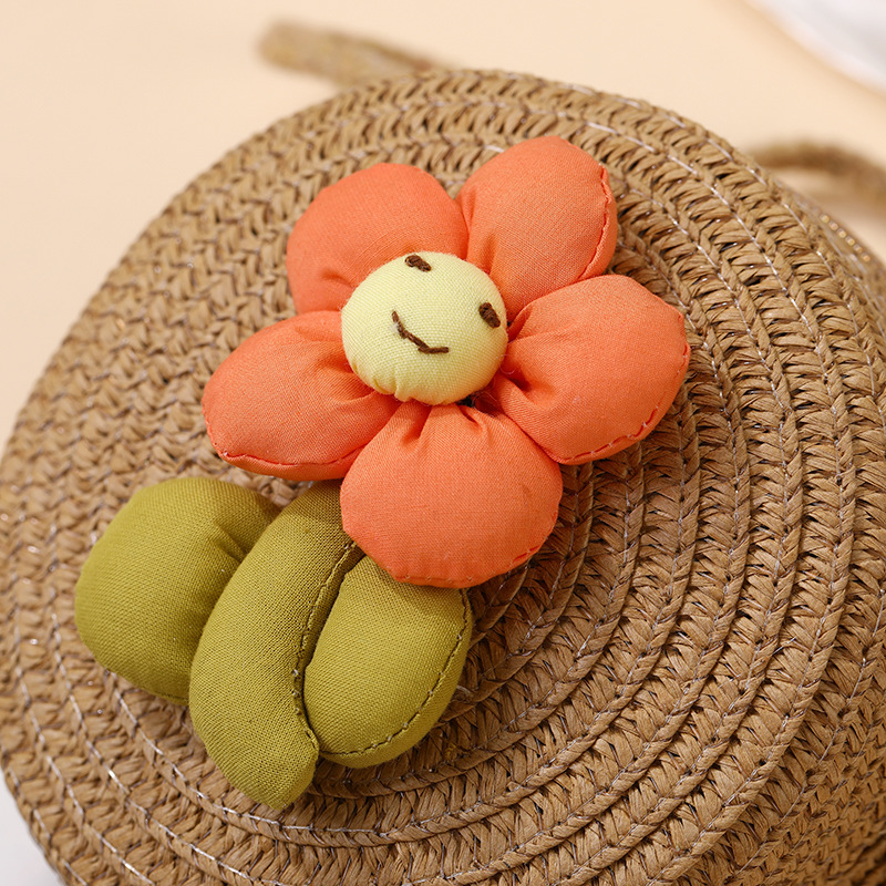 여성을위한 여름 밀짚 가방 2025 새로운 해변 휴가 해변 밀짚 가방 어린이 크로스 바디 가방 귀여운 꽃