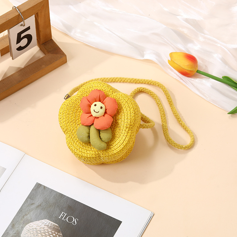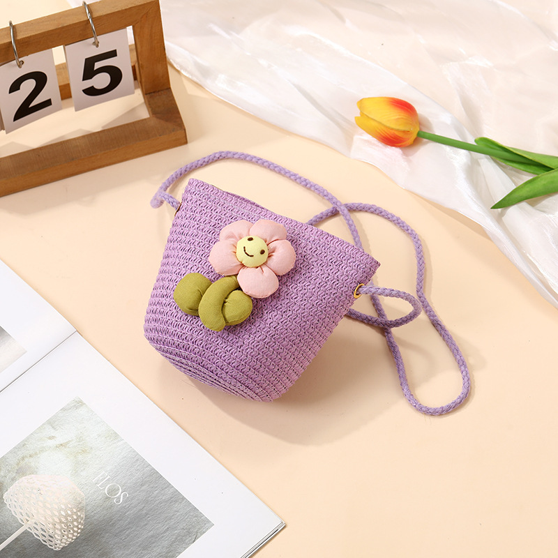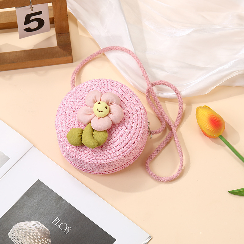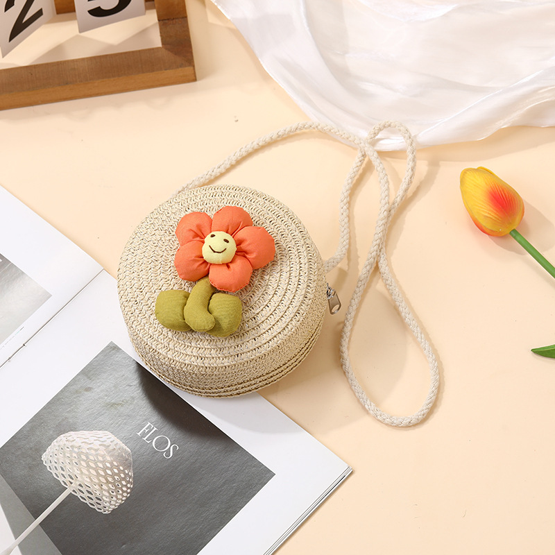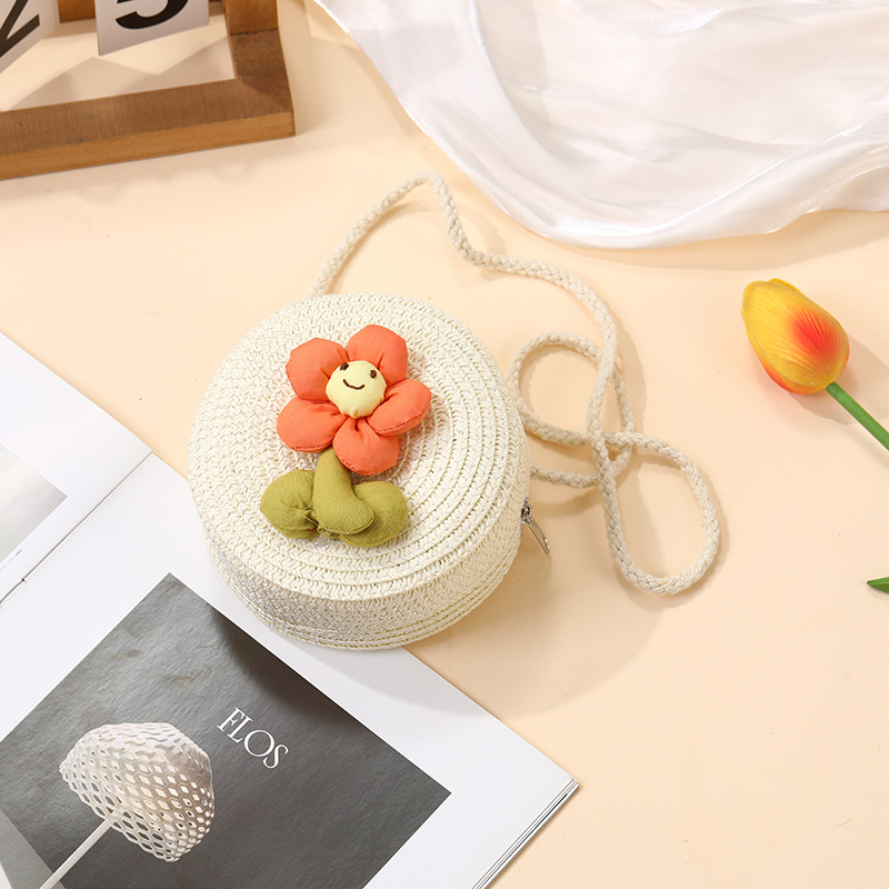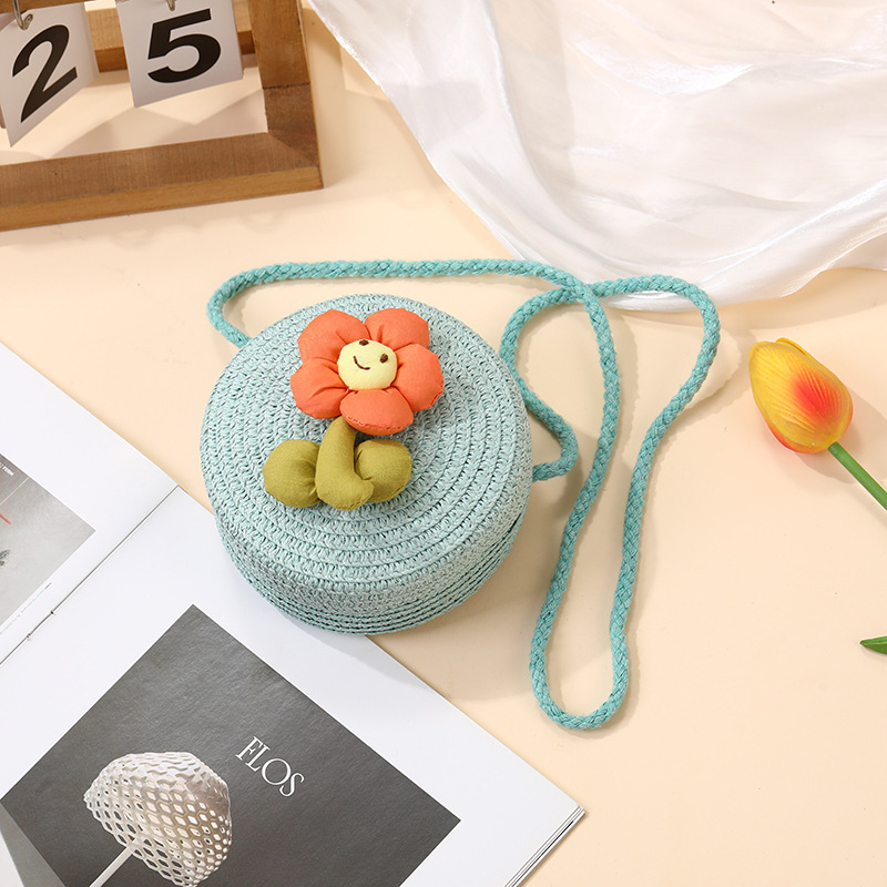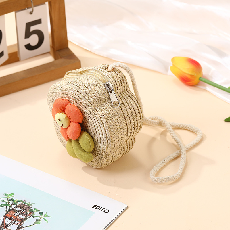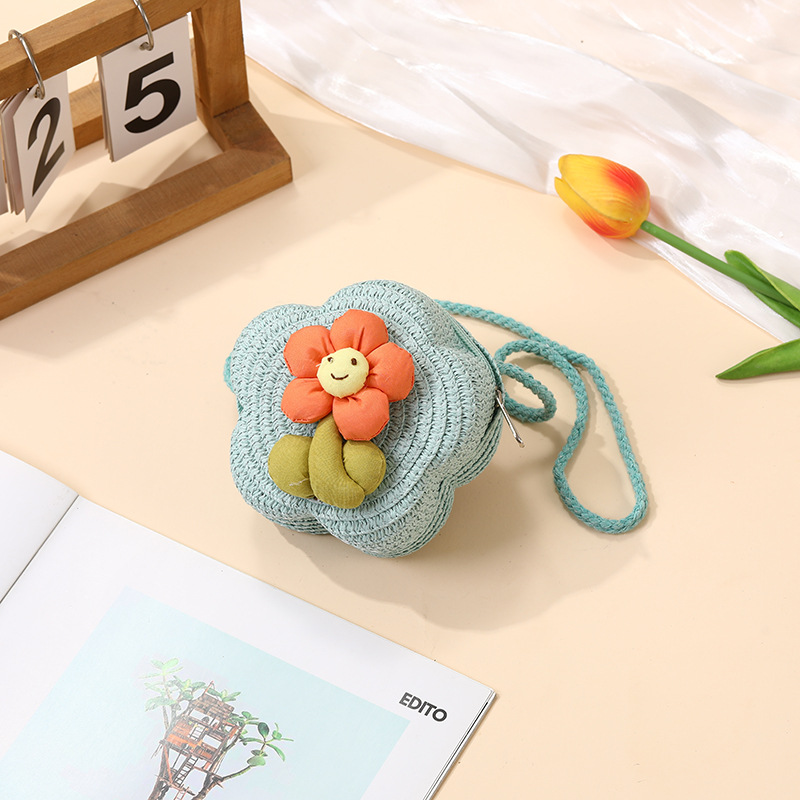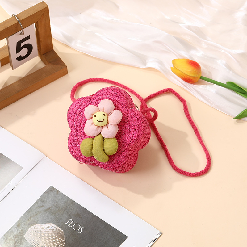 여성을위한 여름 밀짚 가방 2025 새로운 해변 휴가 해변 밀짚 가방 어린이 크로스 바디 가방 귀여운 꽃