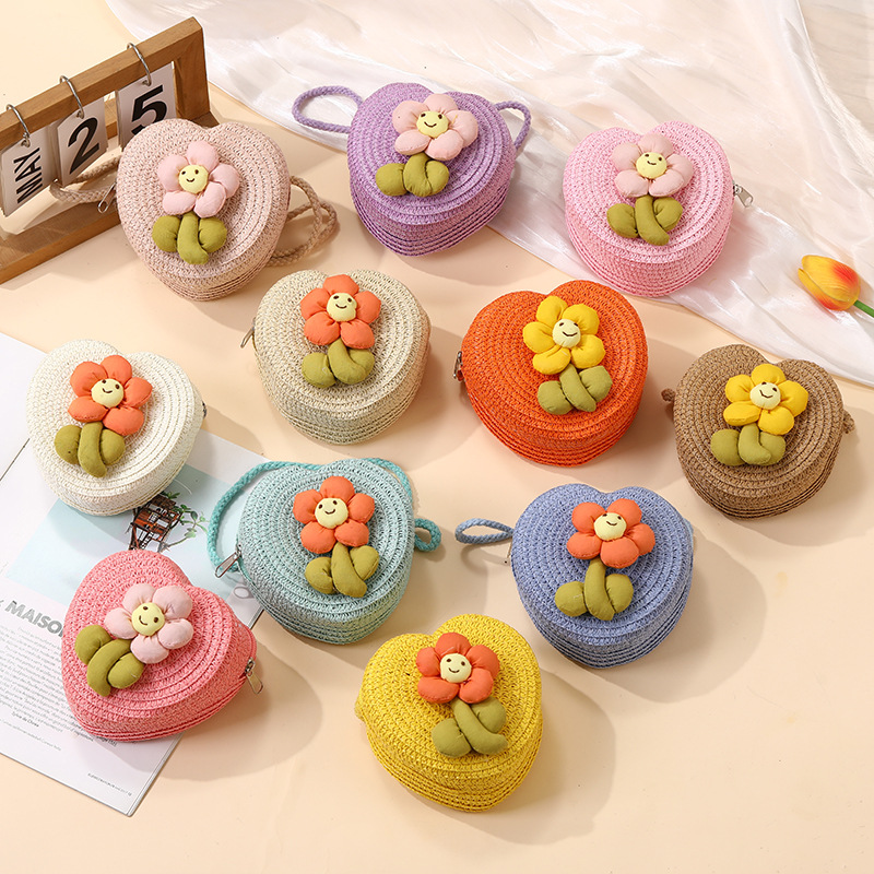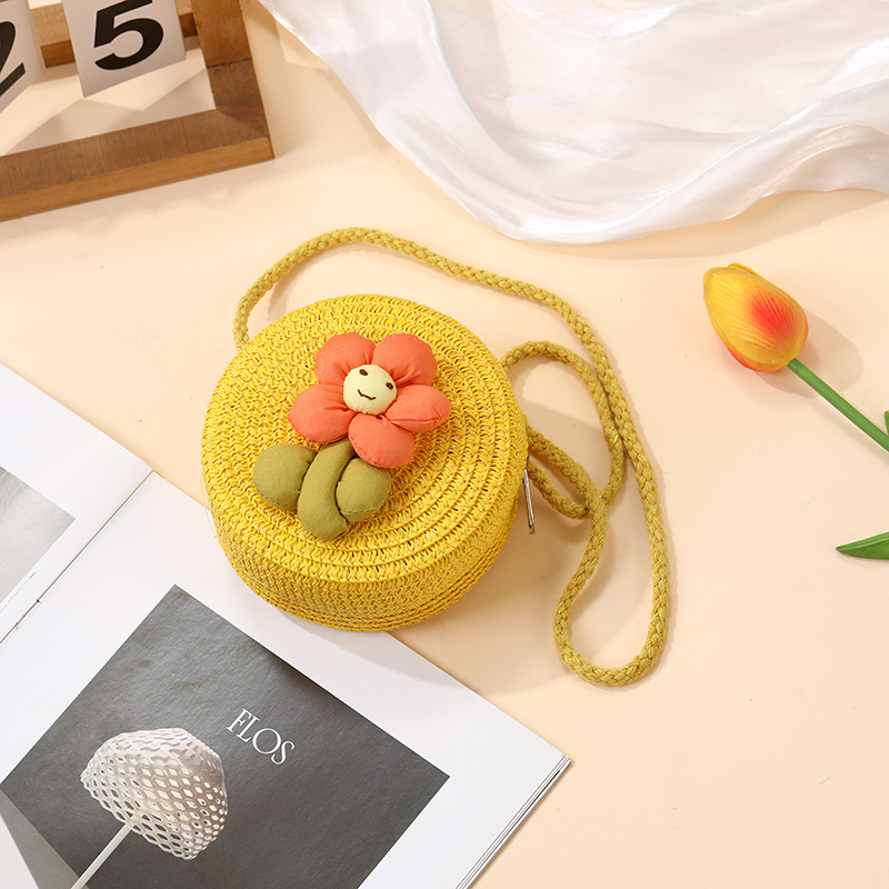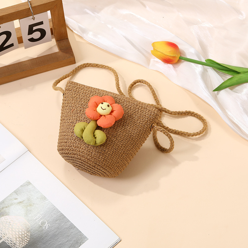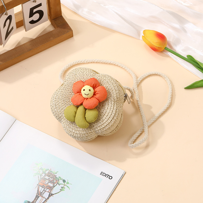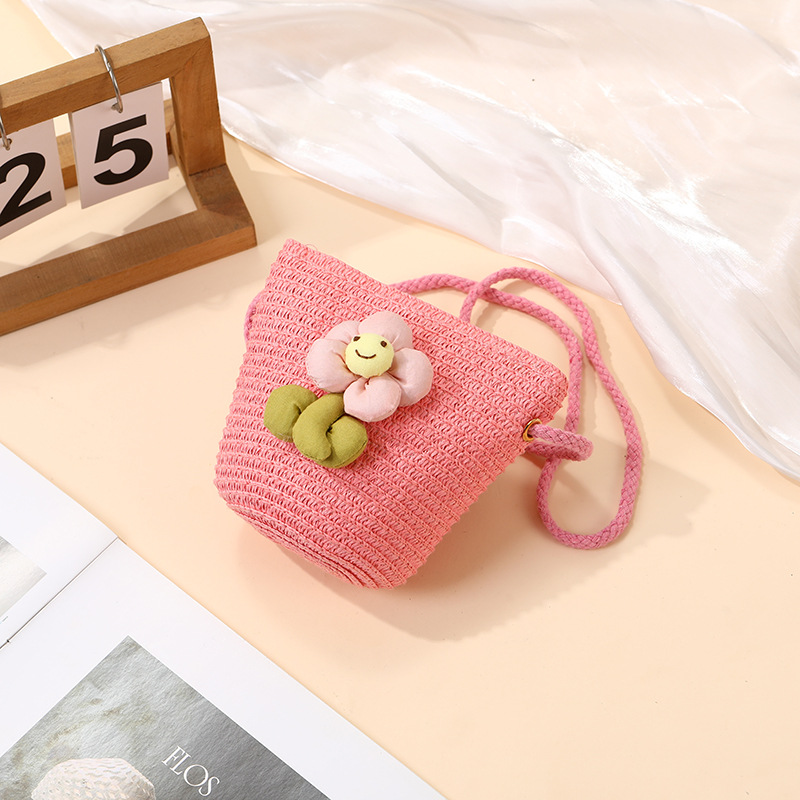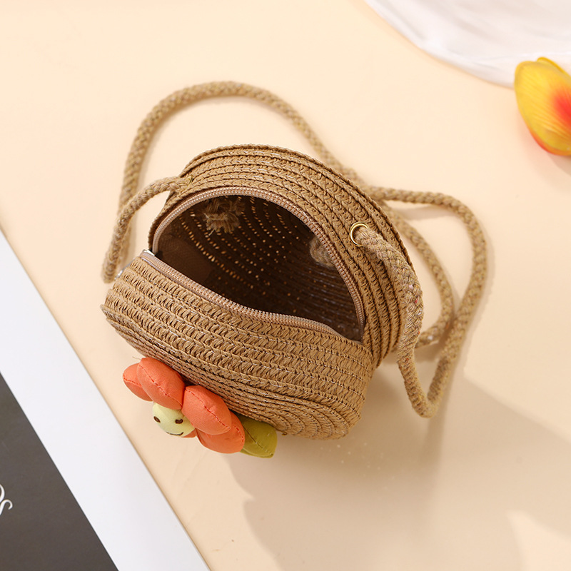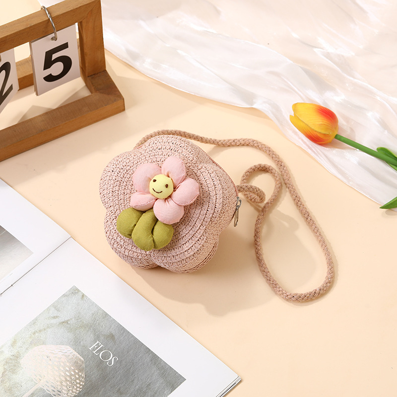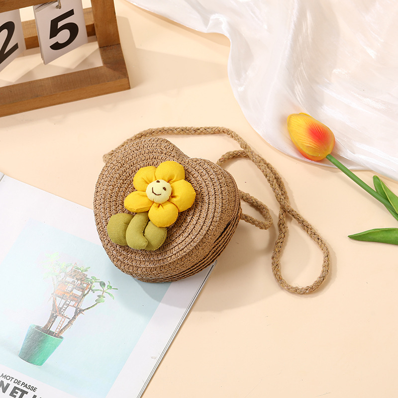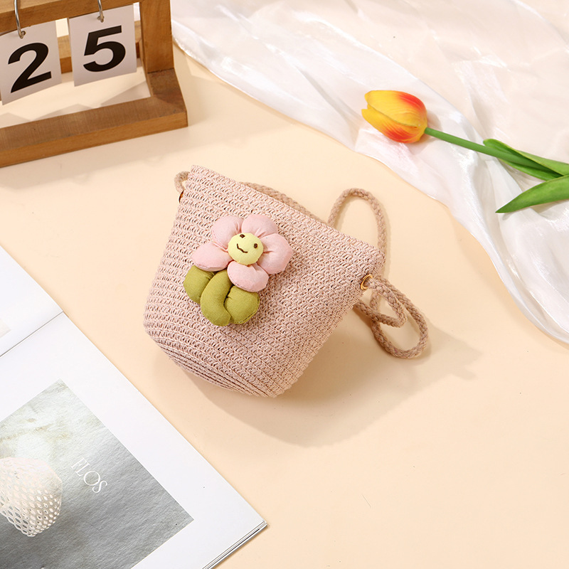 여성을위한 여름 밀짚 가방 2025 새로운 해변 휴가 해변 밀짚 가방 어린이 크로스 바디 가방 귀여운 꽃