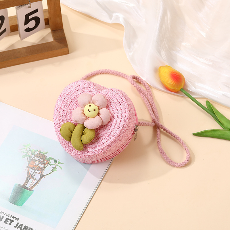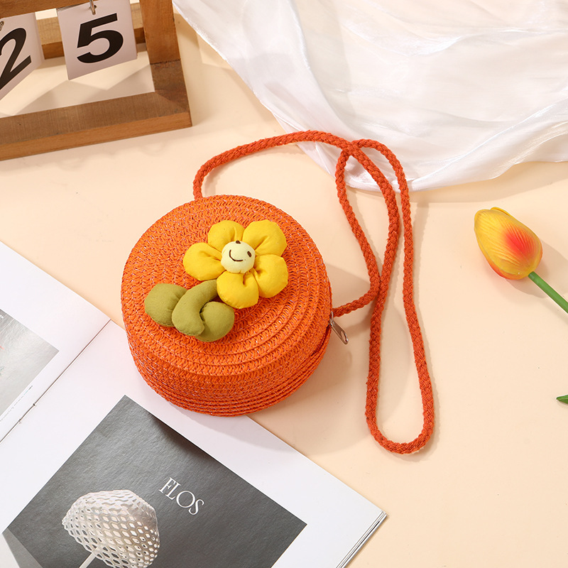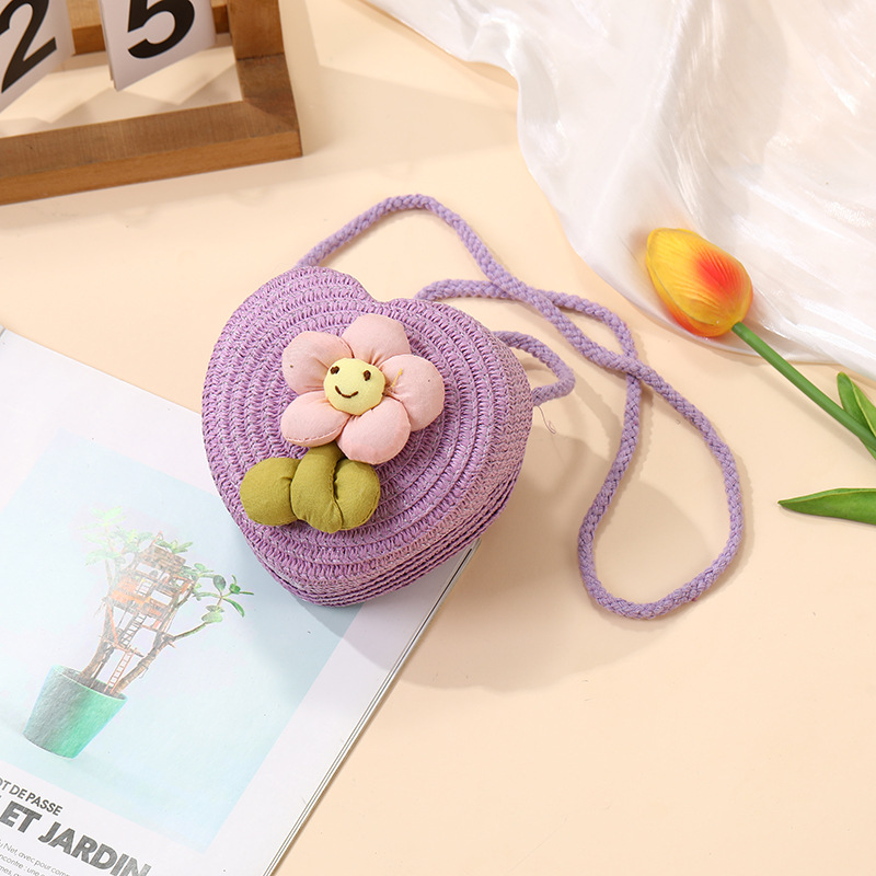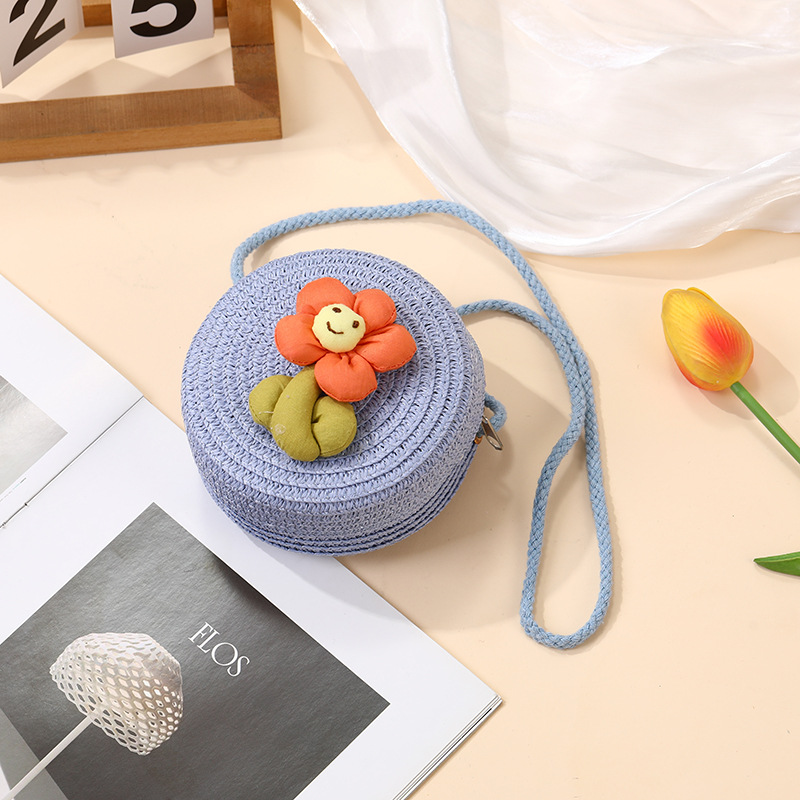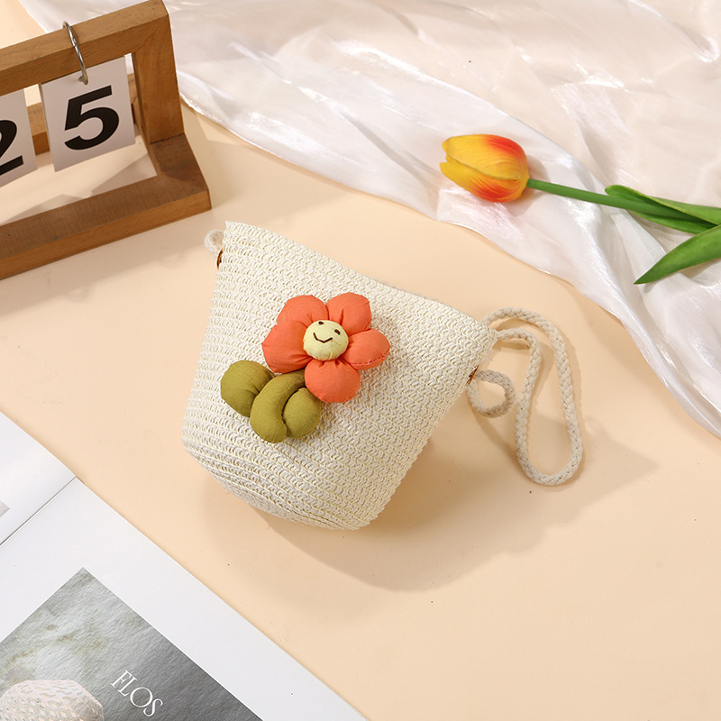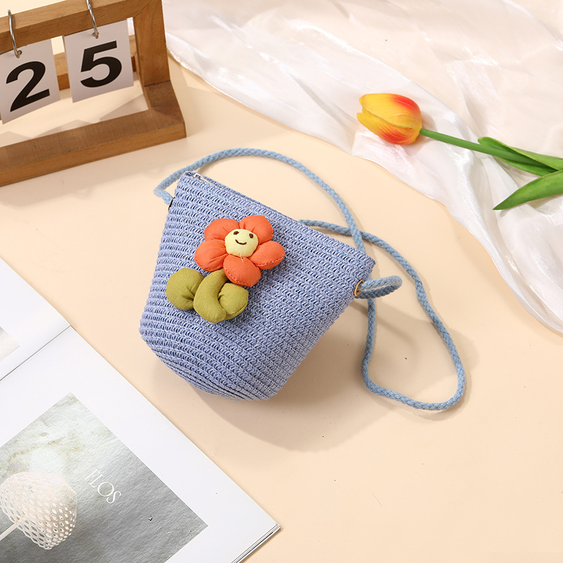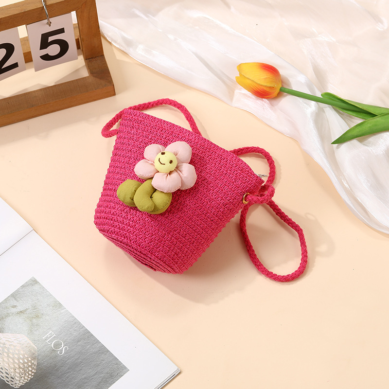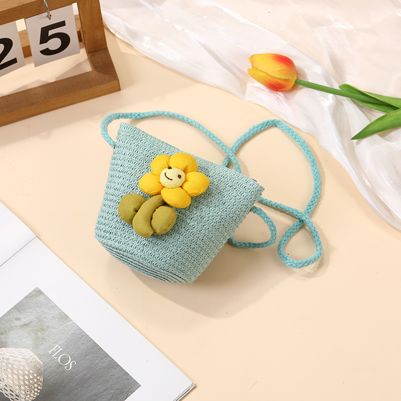 여성을위한 여름 밀짚 가방 2025 새로운 해변 휴가 해변 밀짚 가방 어린이 크로스 바디 가방 귀여운 꽃