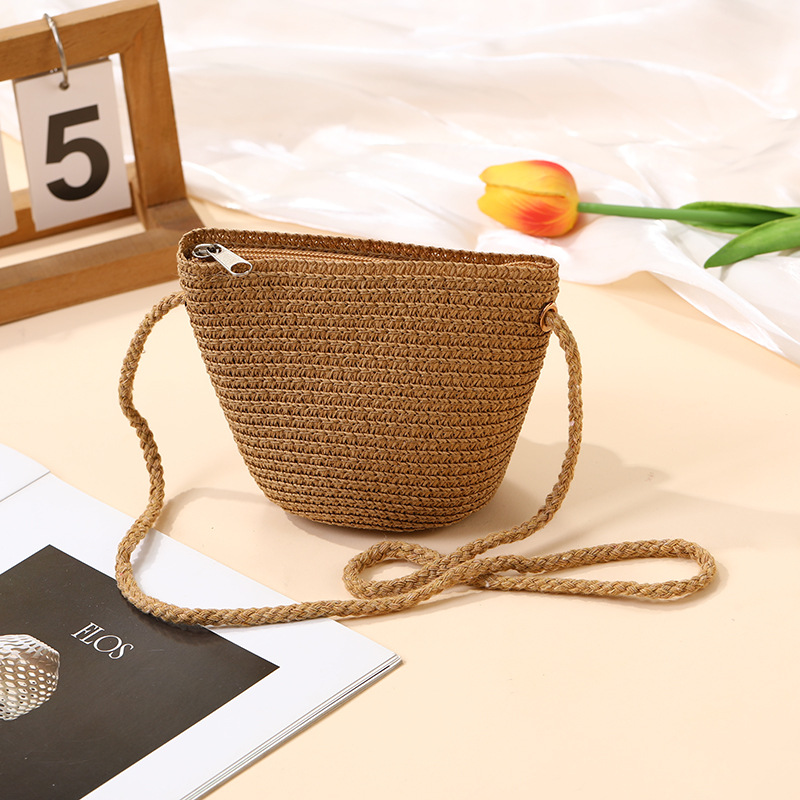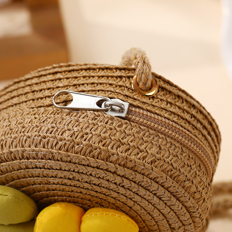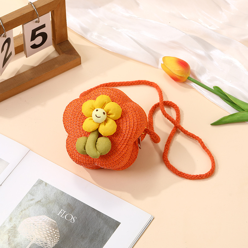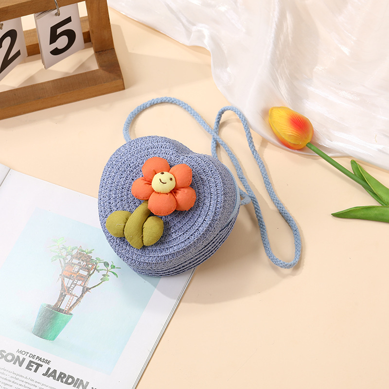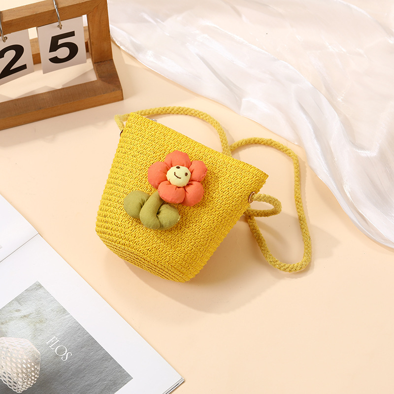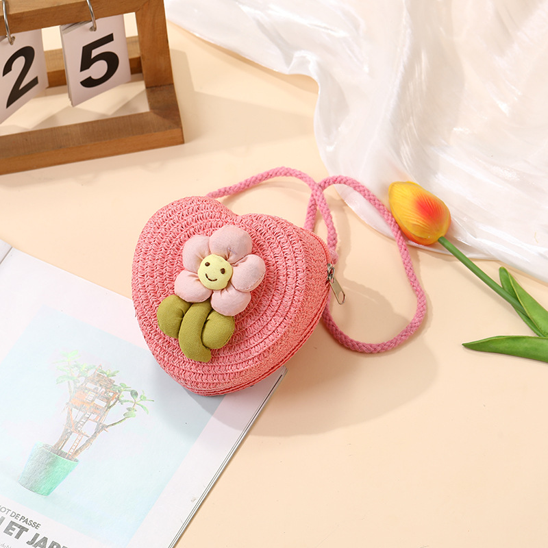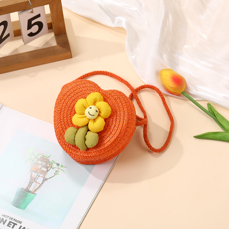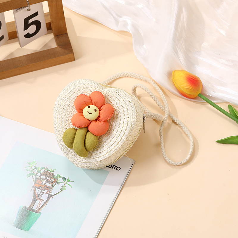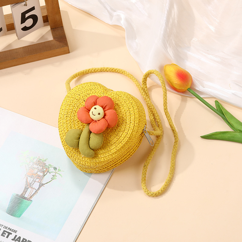 여성을위한 여름 밀짚 가방 2025 새로운 해변 휴가 해변 밀짚 가방 어린이 크로스 바디 가방 귀여운 꽃