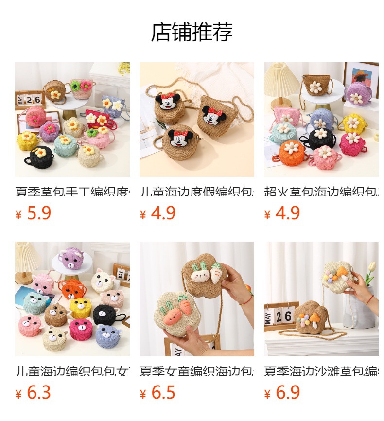 여성을위한 여름 밀짚 가방 2025 새로운 해변 휴가 해변 밀짚 가방 어린이 크로스 바디 가방 귀여운 꽃스토어 가기