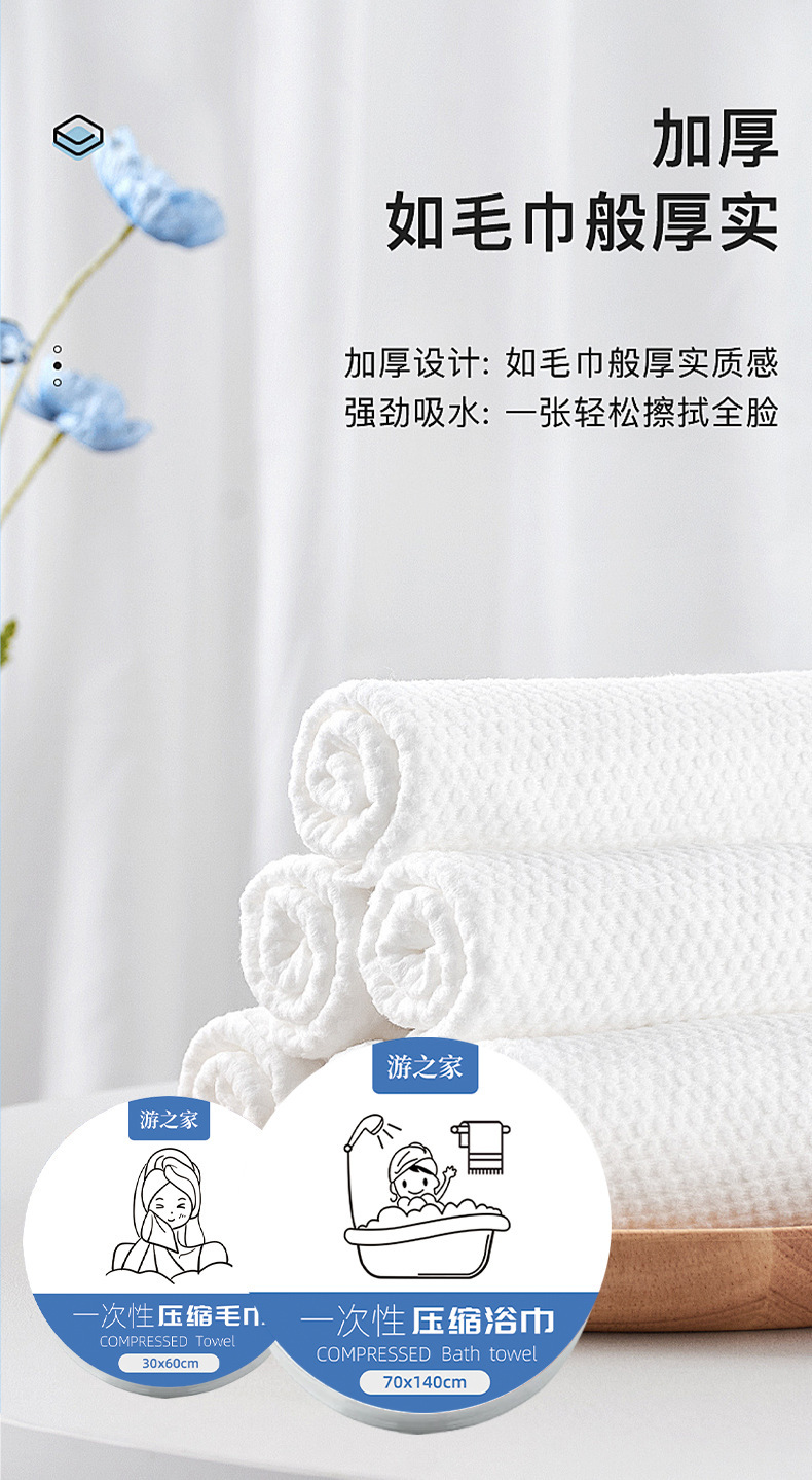 일회용 목욕타월, 여행용 개별 포장, 호텔용, 더 두껍고 크고 휴대 가능한 압축 여행용 타월