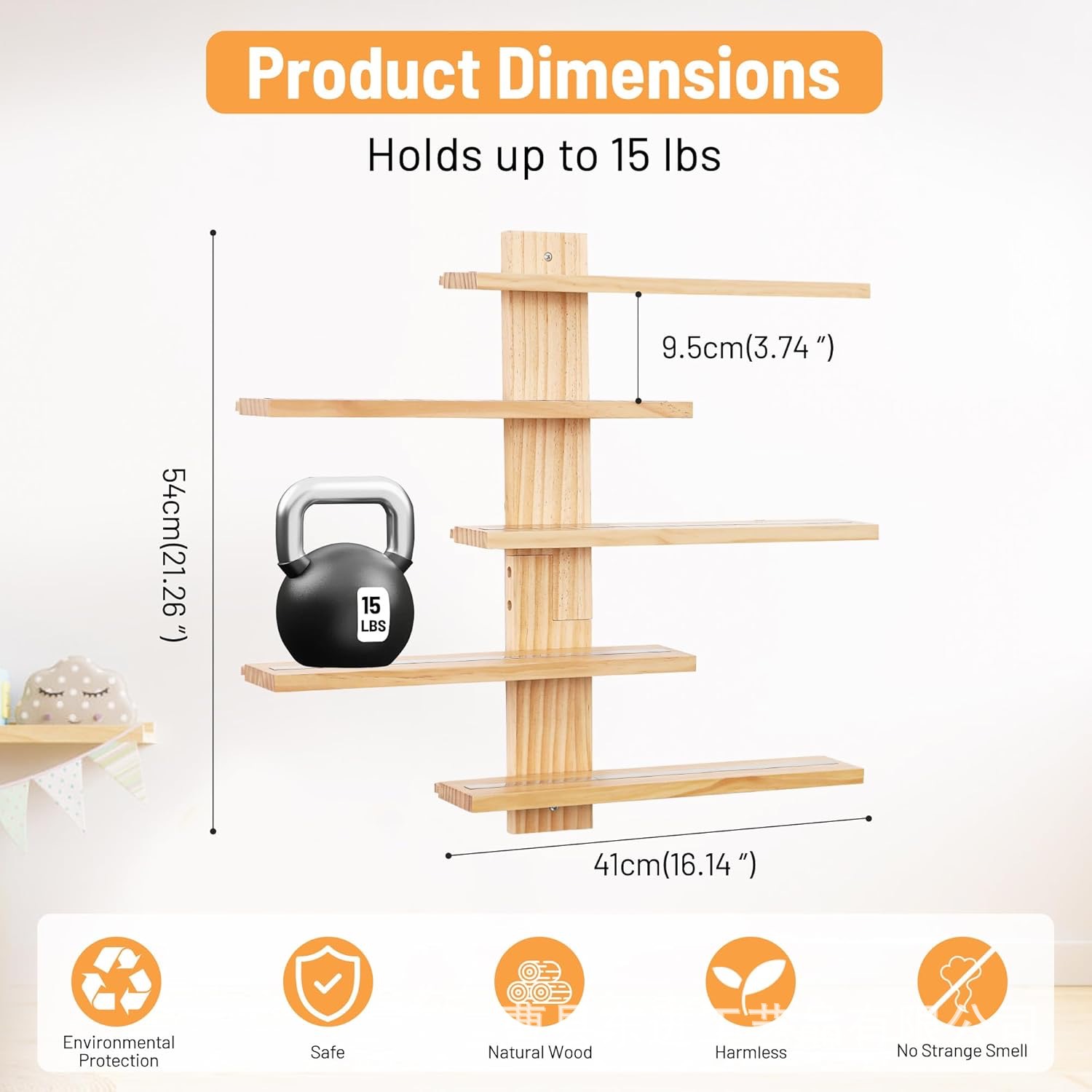 벽걸이 선반, 거실용 목재 다층 장식 장식품, 벽걸이형 원목 손으로 만든 정리 및 디스플레이 선반