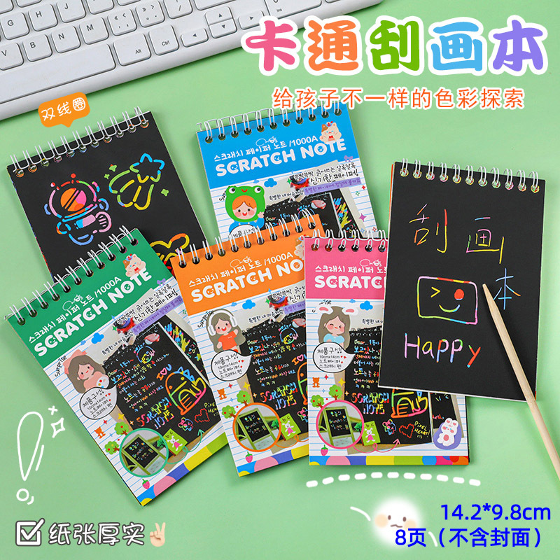 • 황백색 만화 패턴 스크래치 카드 7팩, 총 140장