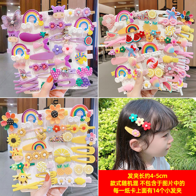 • 핑크 14피스 여아용 머리핀 세트, 4세트, 56개