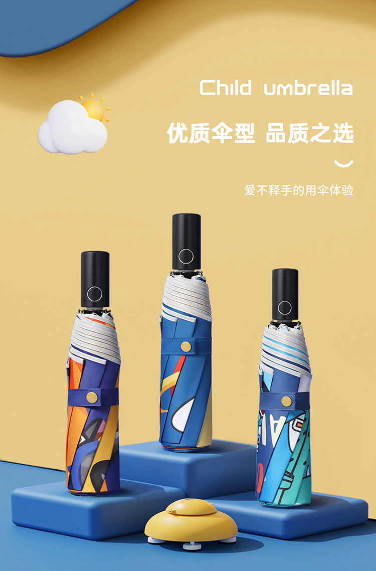 완전 자동 안전 역방향 방지 차양 우산, 만화 어린이 그림 우산, 비가 오나 눈이 오나 사용 가능한 강화 접이식 우산 도매