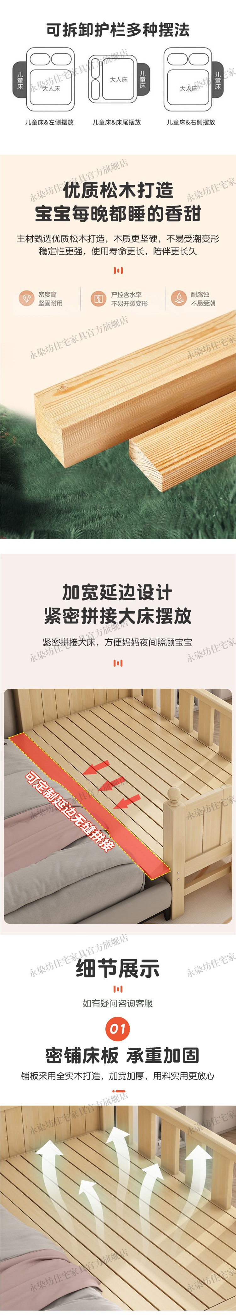 폭이 넓은 가드레일이 있는 원목 베이비 스플라이스 침대, 남아 및 여아용 싱글 침대 사이드 침대, 어린이용 대형 침대, 못으로 고정 가능스토어 가기