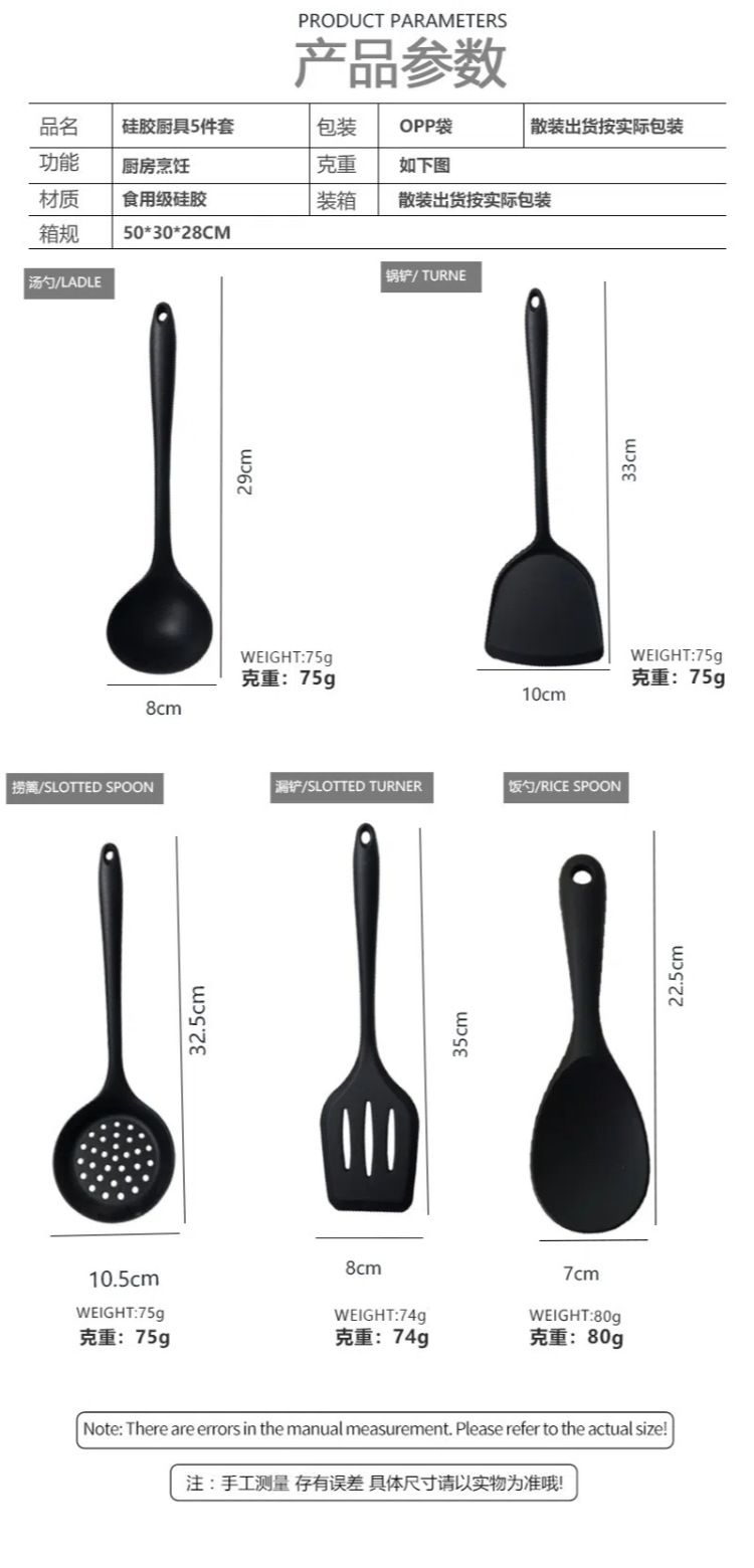 실리콘 주방용품 5종 세트 실리콘 주걱 가정용 국자 거름망 고온 내성 논스틱 팬 주걱 베이킹 도구