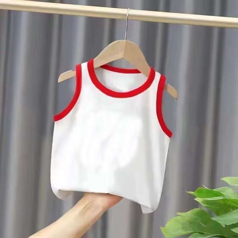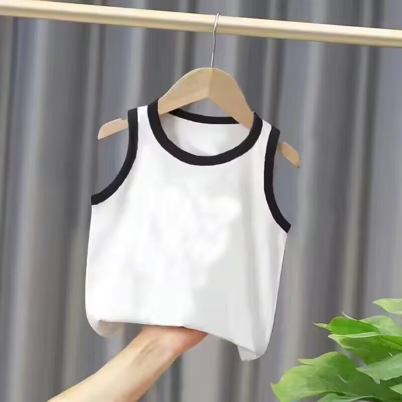 소년과 소녀를위한 솔리드 컬러 조끼 티셔츠 여름 어린이 새로운 민소매 탑 여름 아기 아동 의류 바닥 셔츠