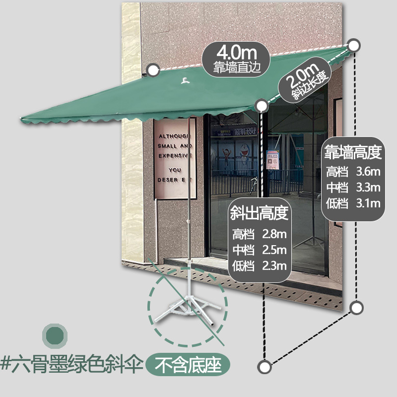 • (진한 녹색) 경사우산 4x 3.1m 갈비뼈 특대형 (베이스 포함)