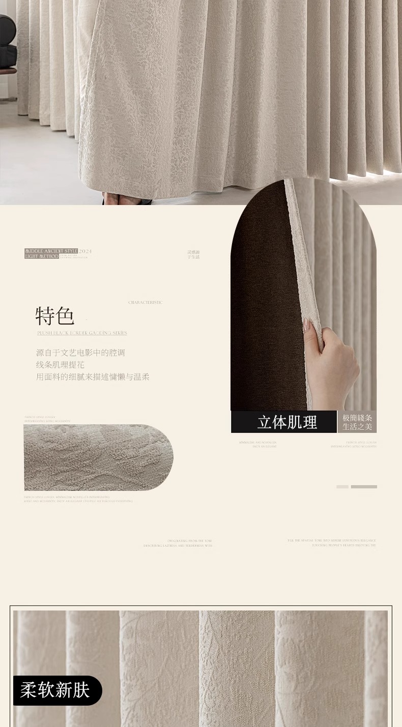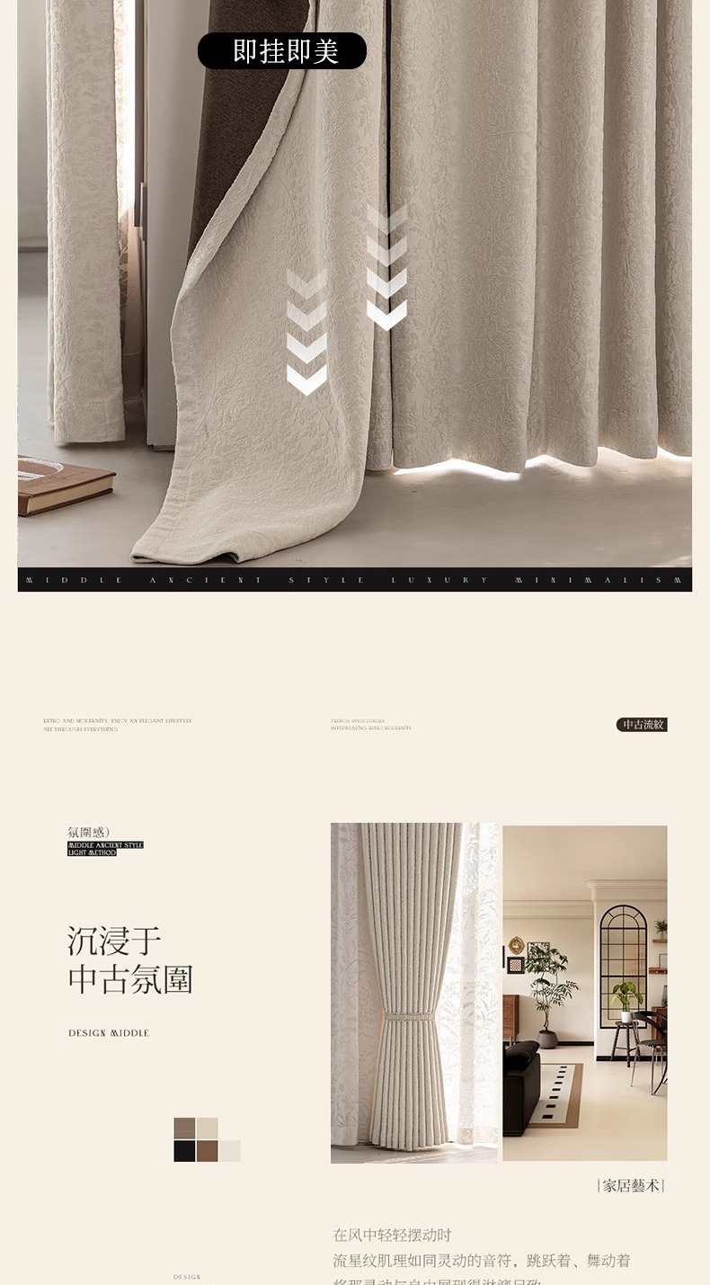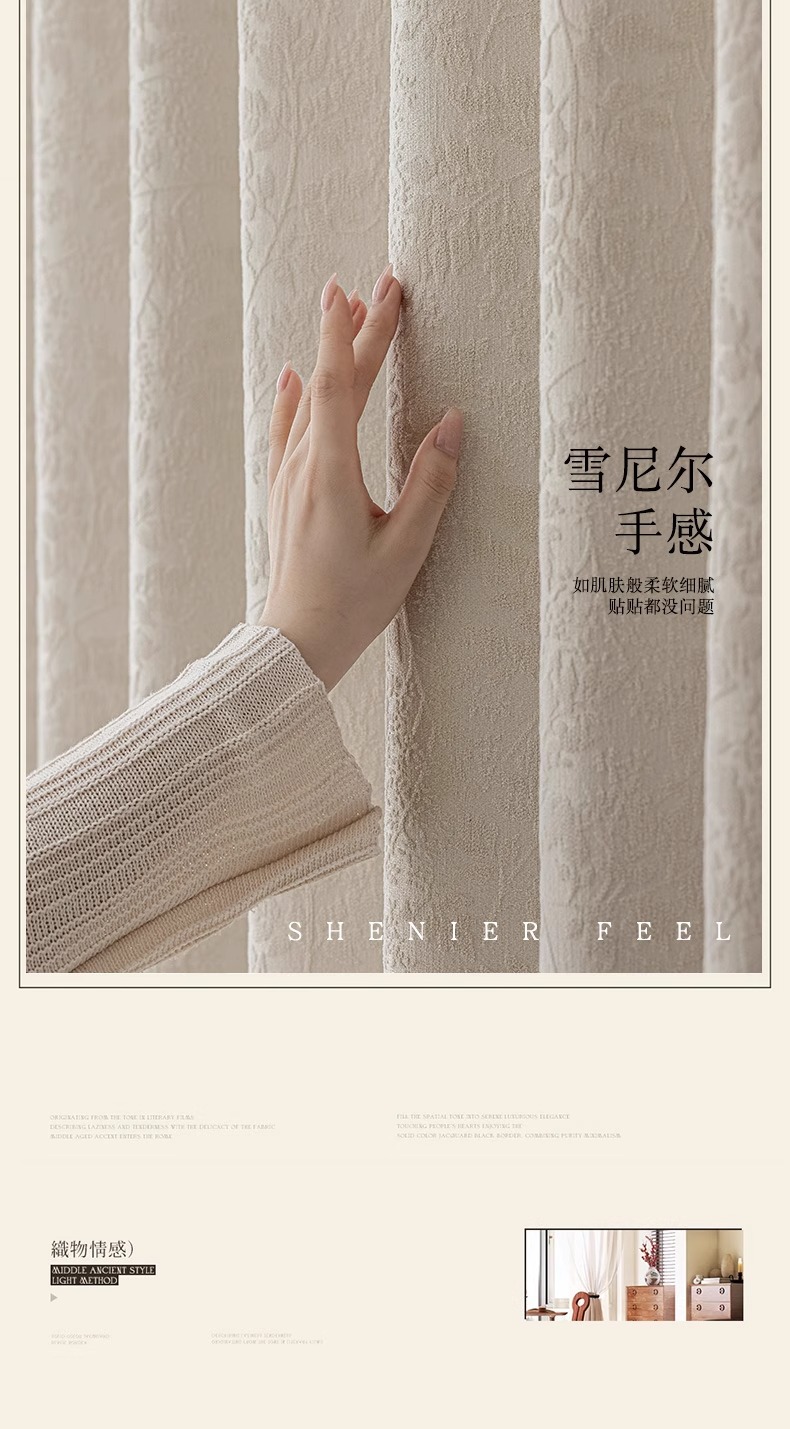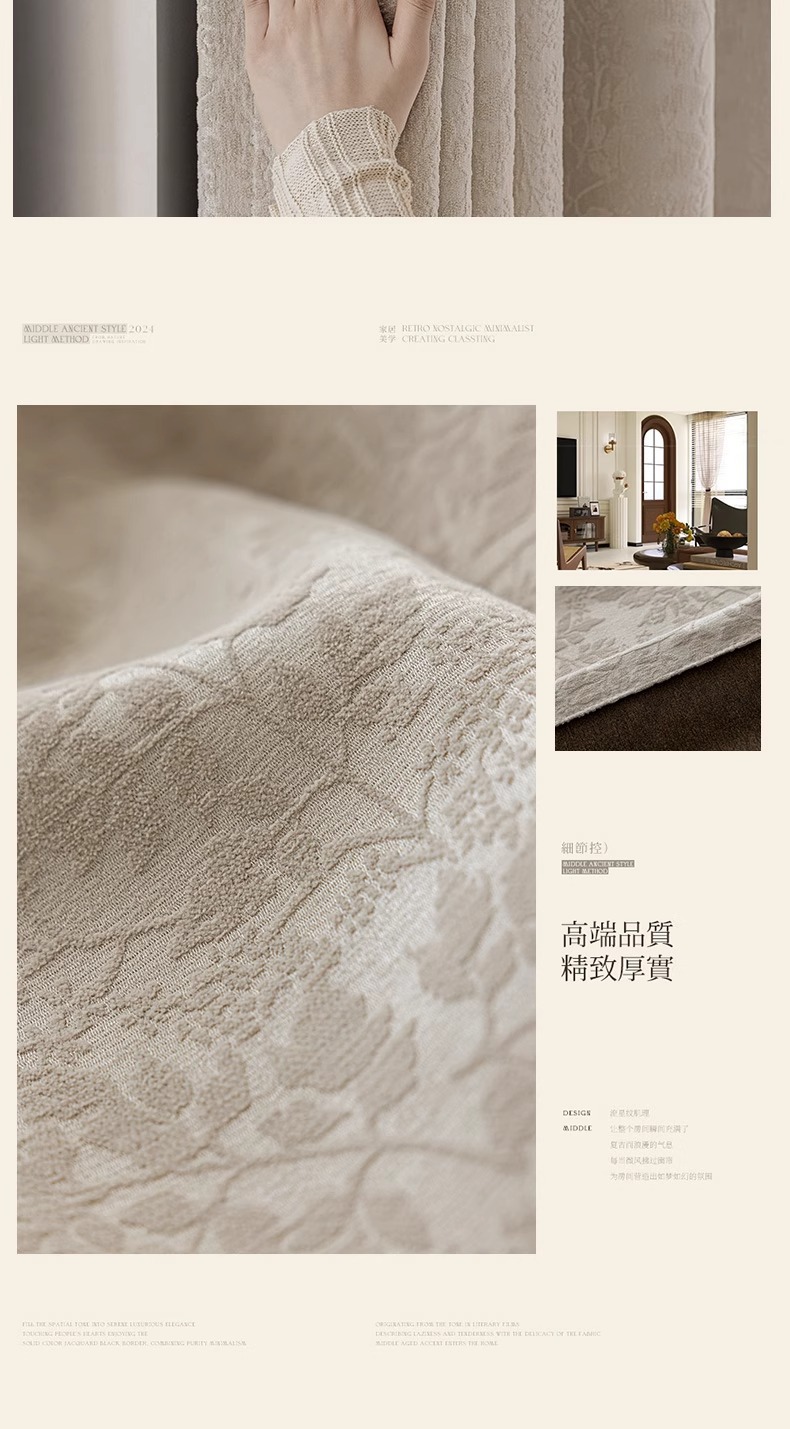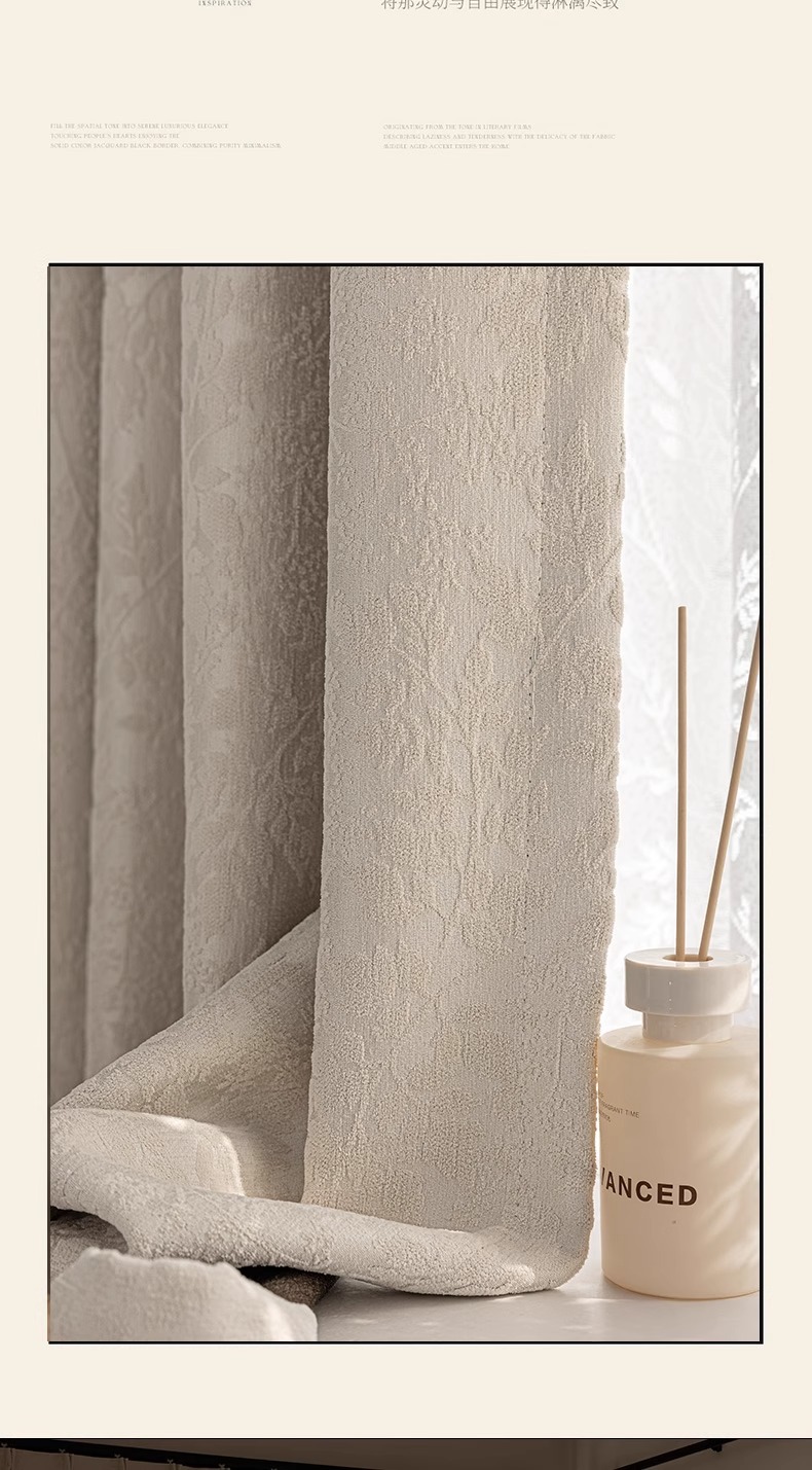프렌치 엠보싱 셔닐 커튼 난양 중세 스타일 크림색 거실 침실 암막 커튼 Shaoxing Keqiao 커튼스토어 가기