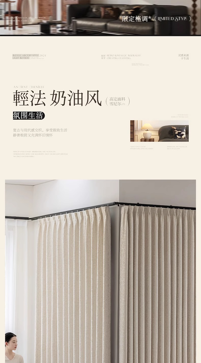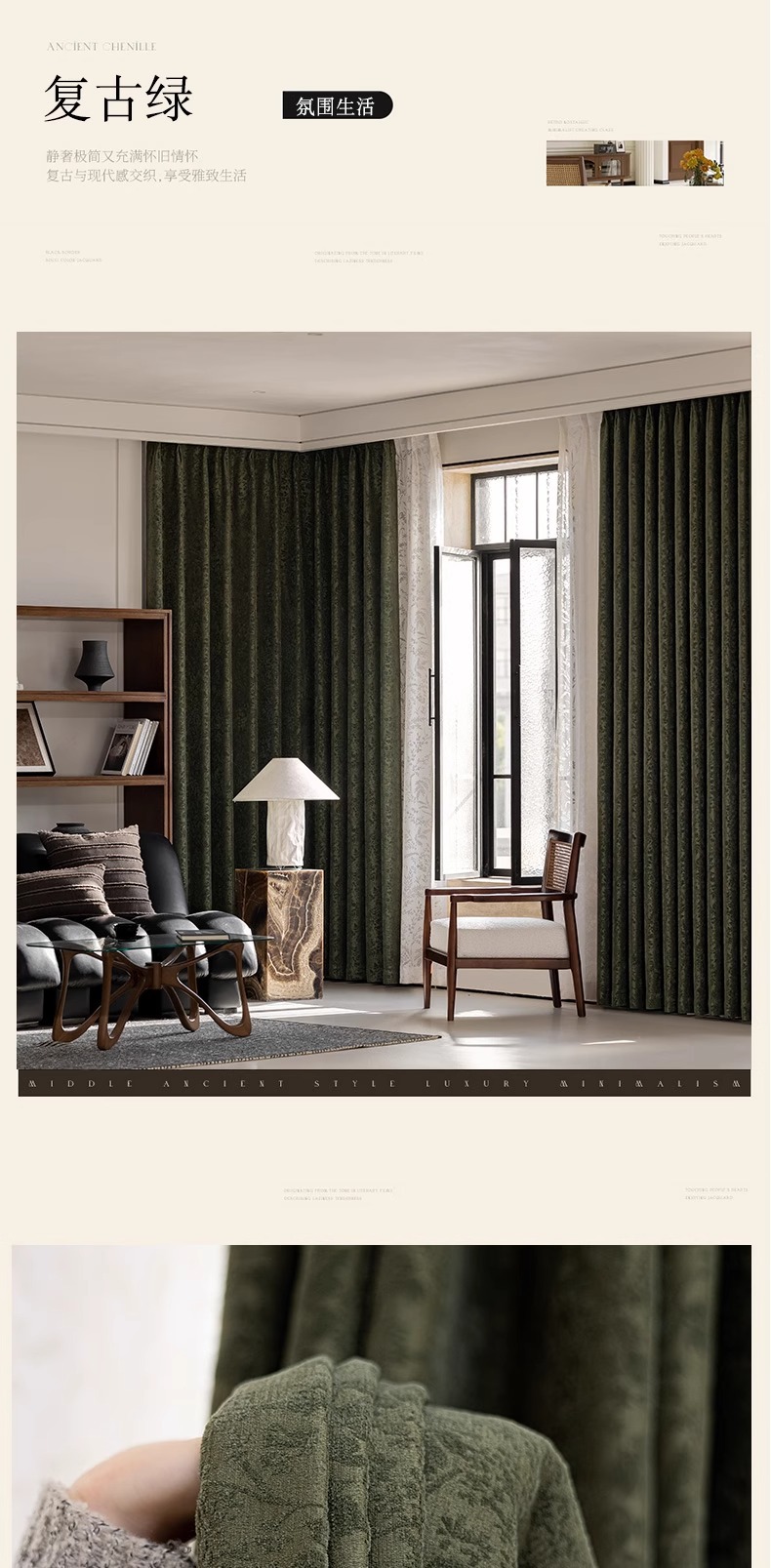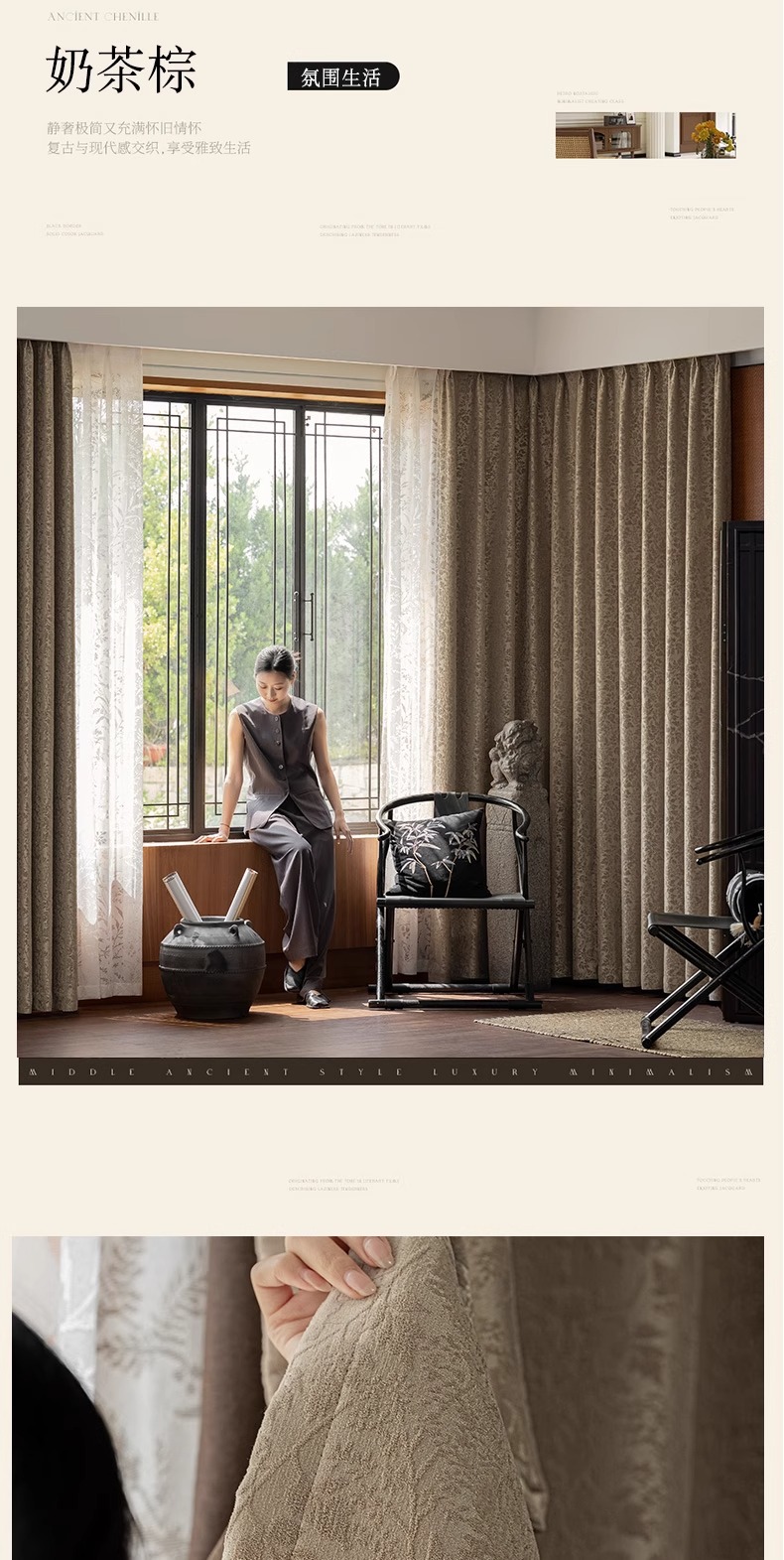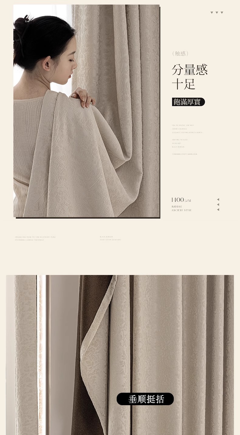 프렌치 엠보싱 셔닐 커튼 난양 중세 스타일 크림색 거실 침실 암막 커튼 Shaoxing Keqiao 커튼스토어 가기