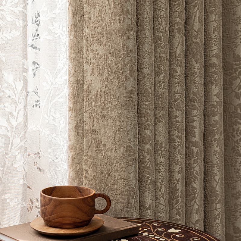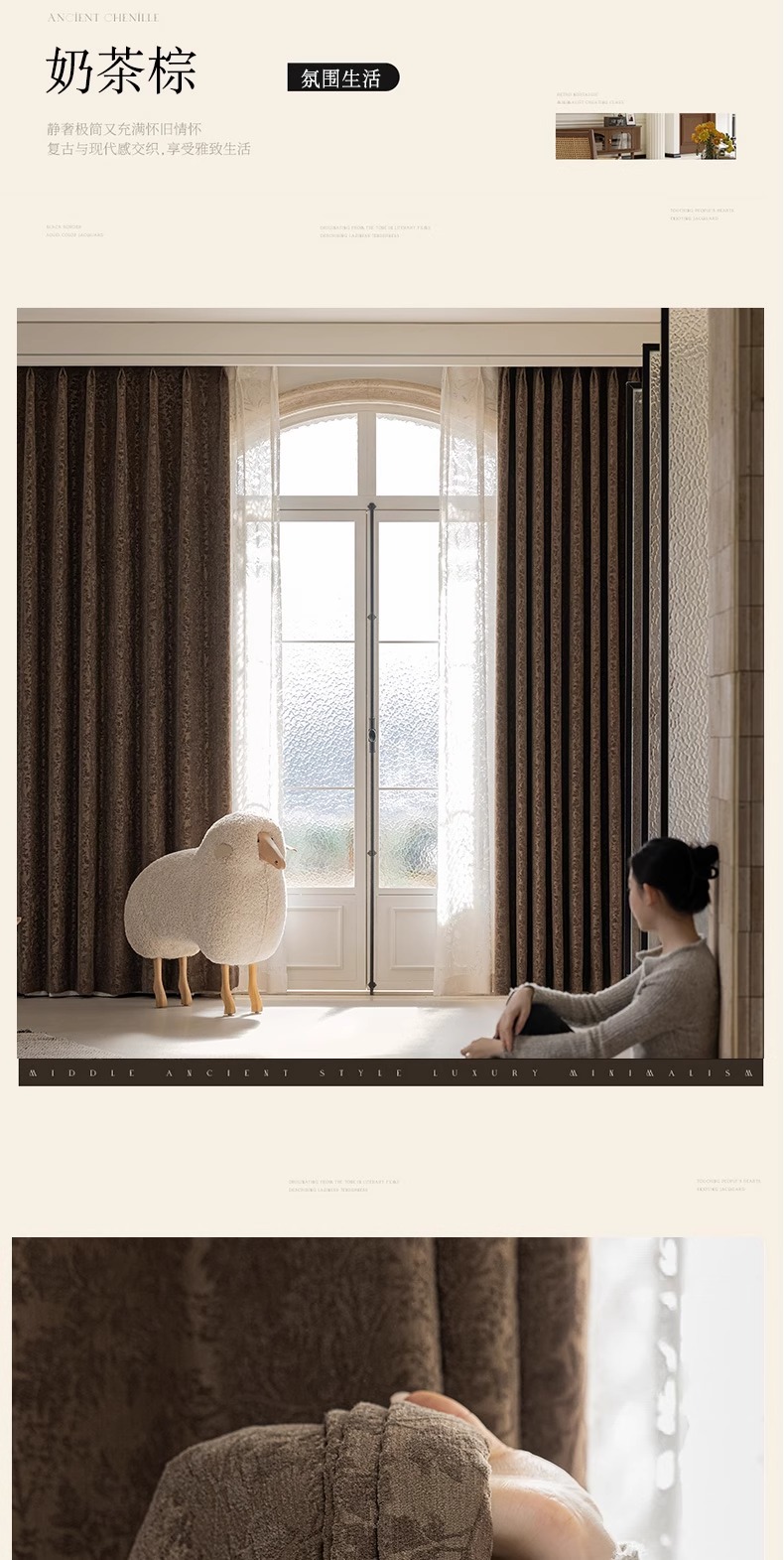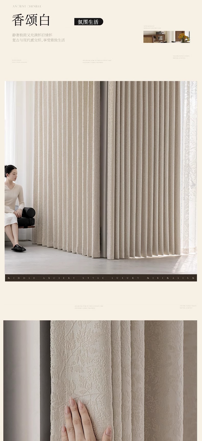 프렌치 엠보싱 셔닐 커튼 난양 중세 스타일 크림색 거실 침실 암막 커튼 Shaoxing Keqiao 커튼