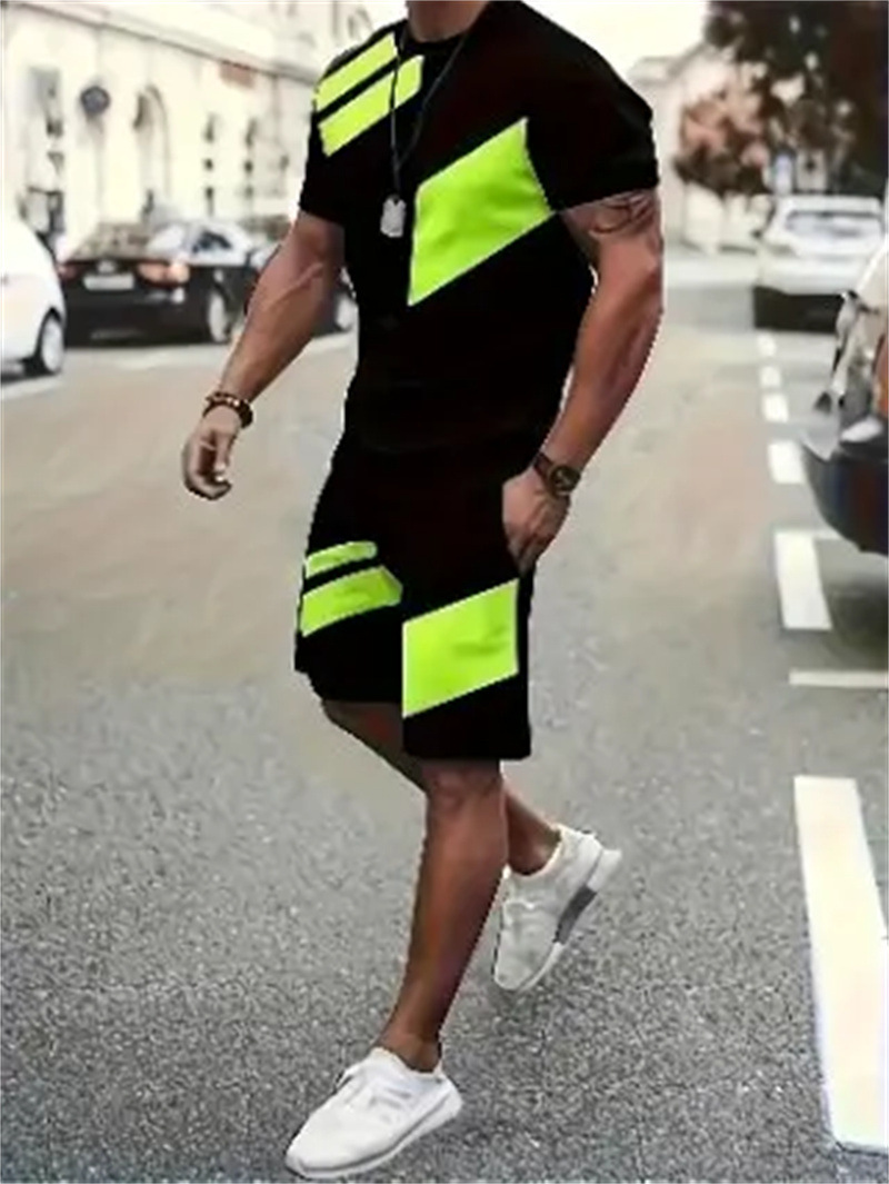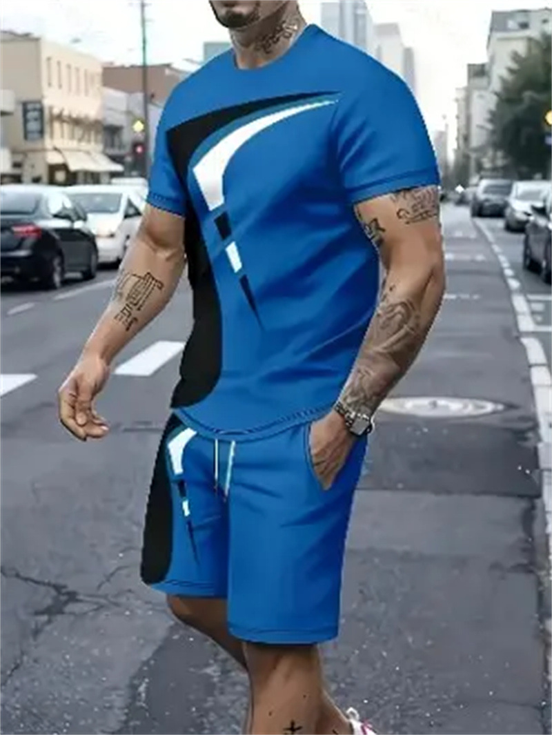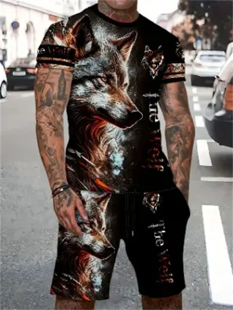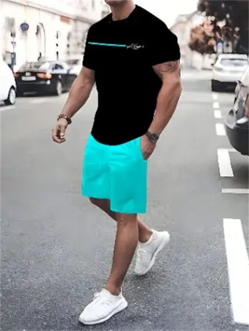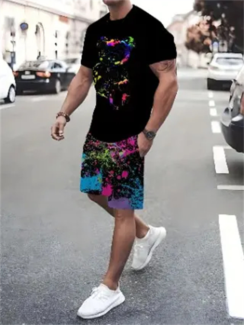 2025 여름 신상 3D 프린팅 패션 트렌드 쿨 반팔 반바지 티셔츠 캐주얼 스포츠 남성 세트