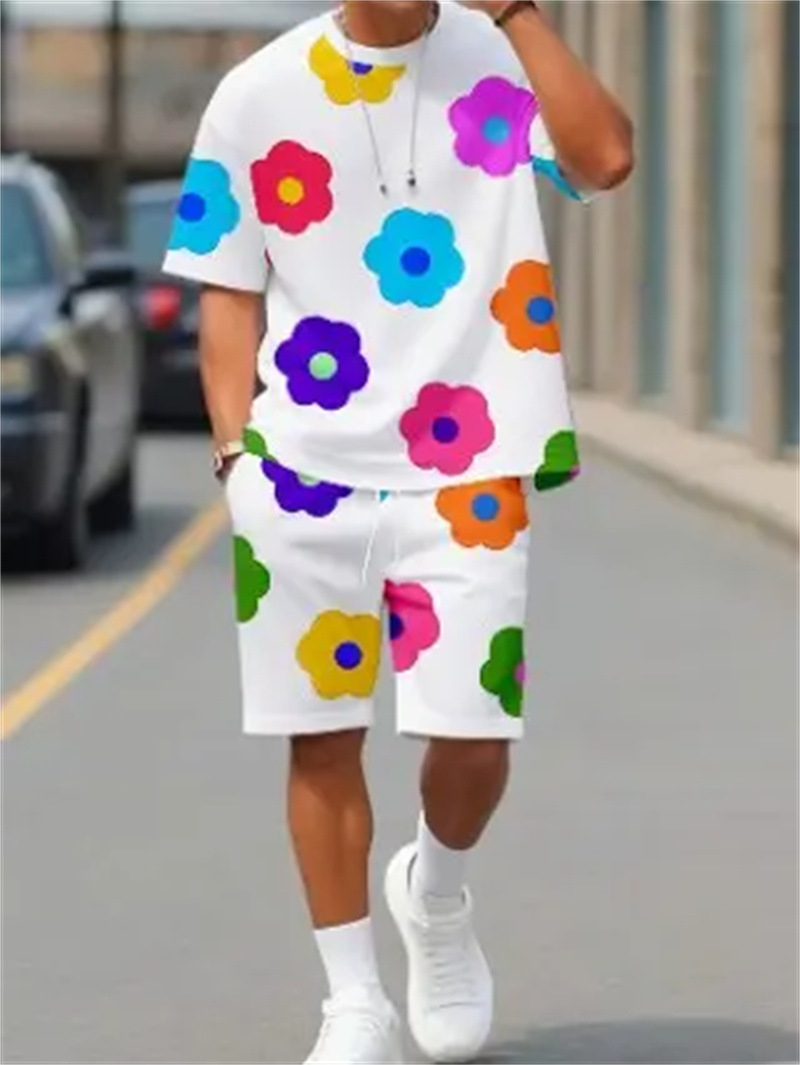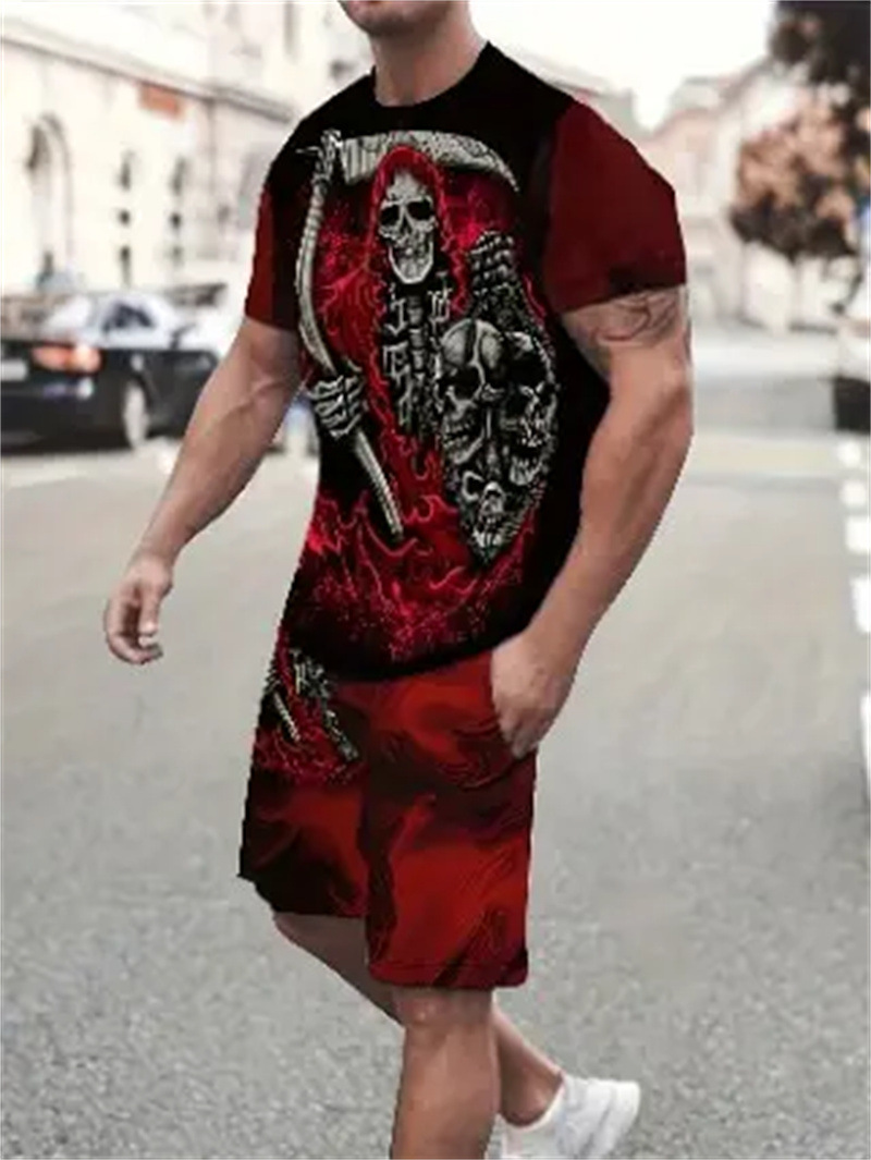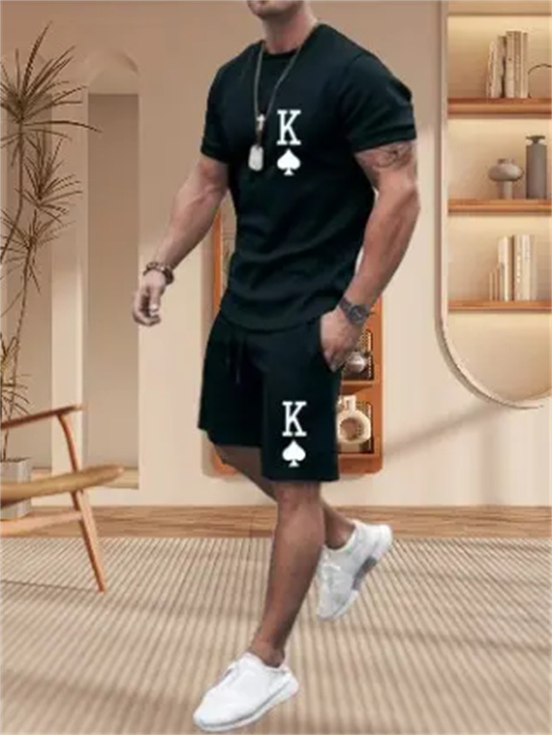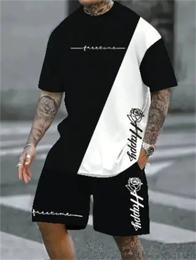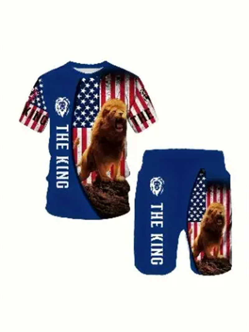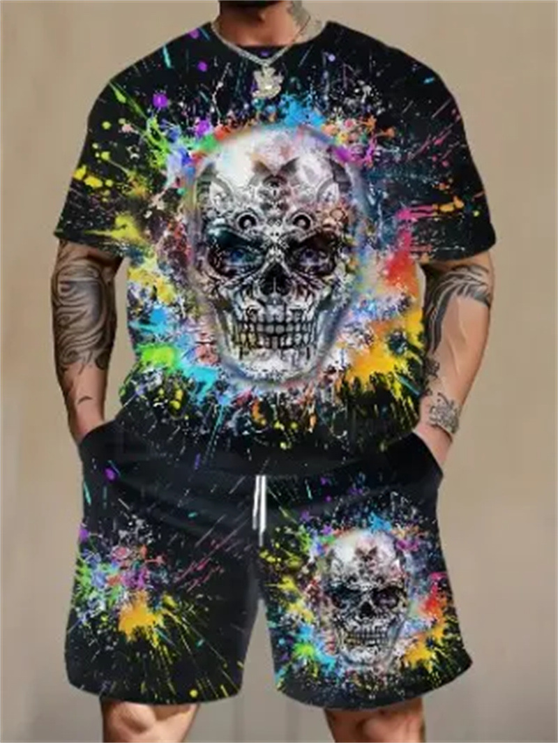 2025 여름 신상 3D 프린팅 패션 트렌드 쿨 반팔 반바지 티셔츠 캐주얼 스포츠 남성 세트