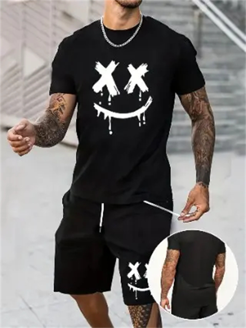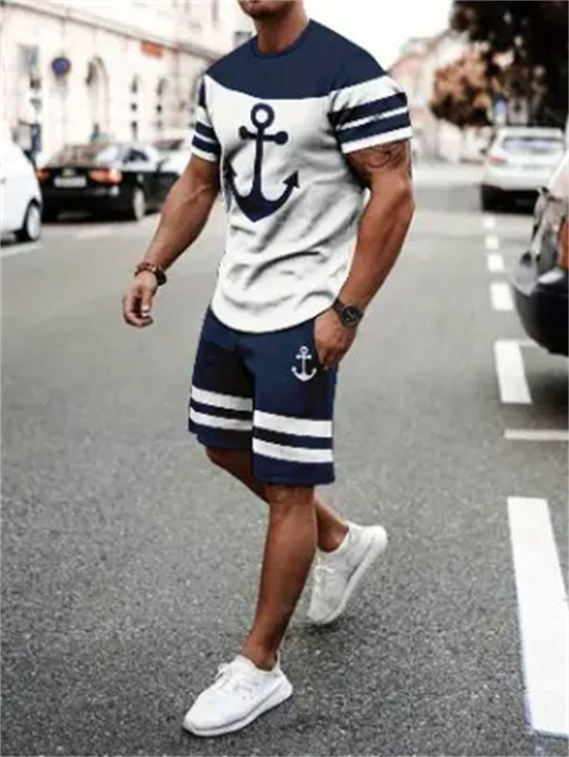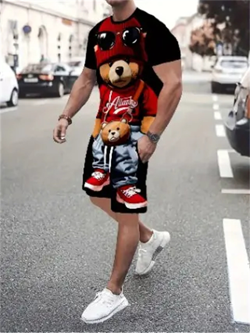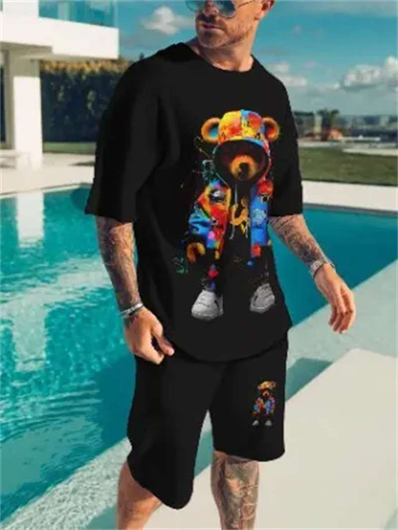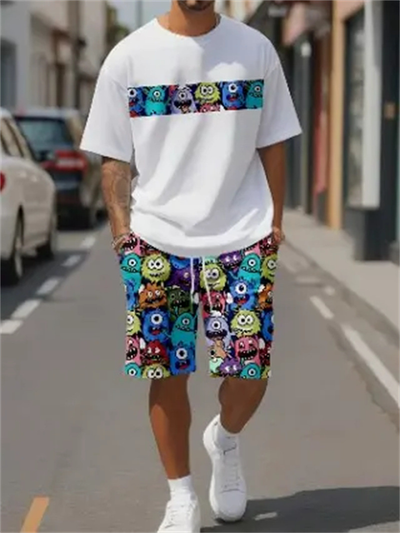 2025 여름 신상 3D 프린팅 패션 트렌드 쿨 반팔 반바지 티셔츠 캐주얼 스포츠 남성 세트스토어 가기