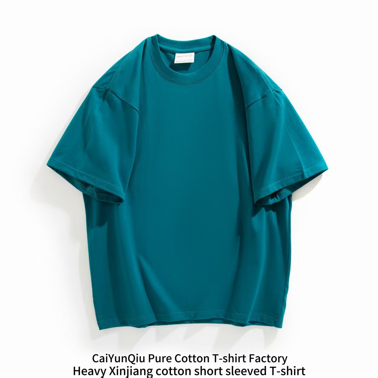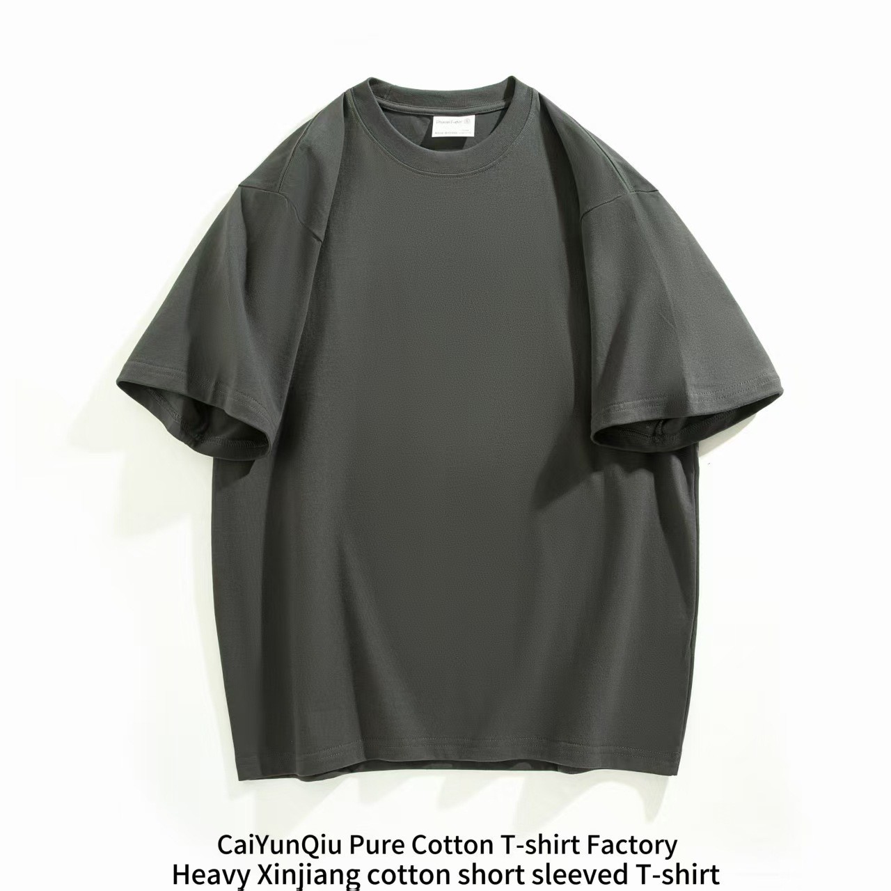 2025 여름 신상 헤비급 순면 반팔 티셔츠 솔리드 컬러 루즈하고 다재다능한 남성 심플 트렌디 다재다능한 베이스 레이어 셔츠스토어 가기