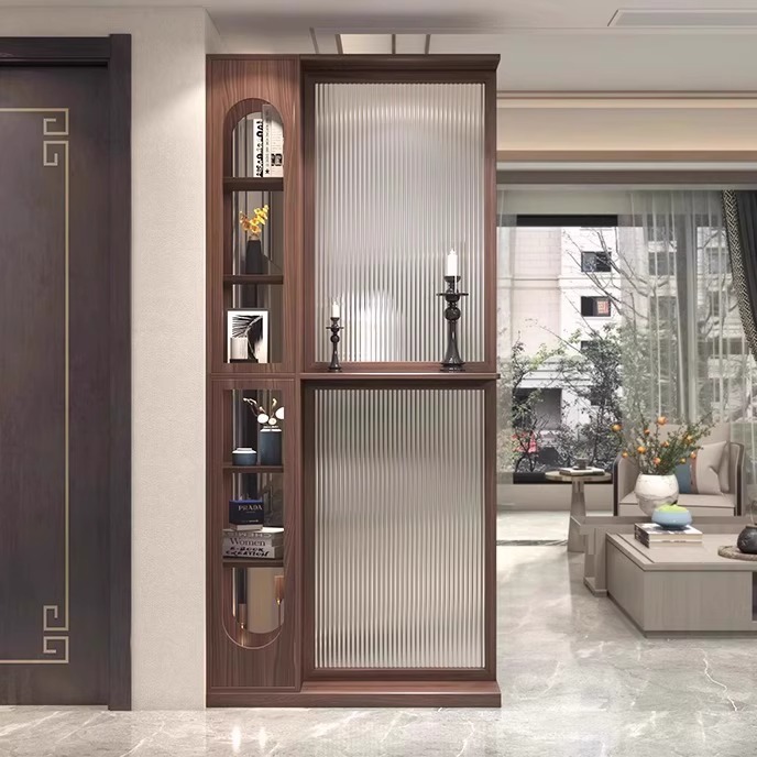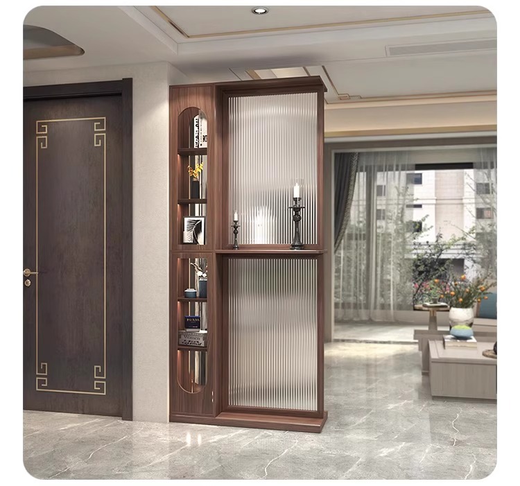 현대적인 간단한 스토리지 랙을 차단하는 현관 캐비닛과 정면에 맞는 거실 입구를 위한 새로운 중국 스타일의 단단한 나무 유리 스크린 파티션스토어 가기