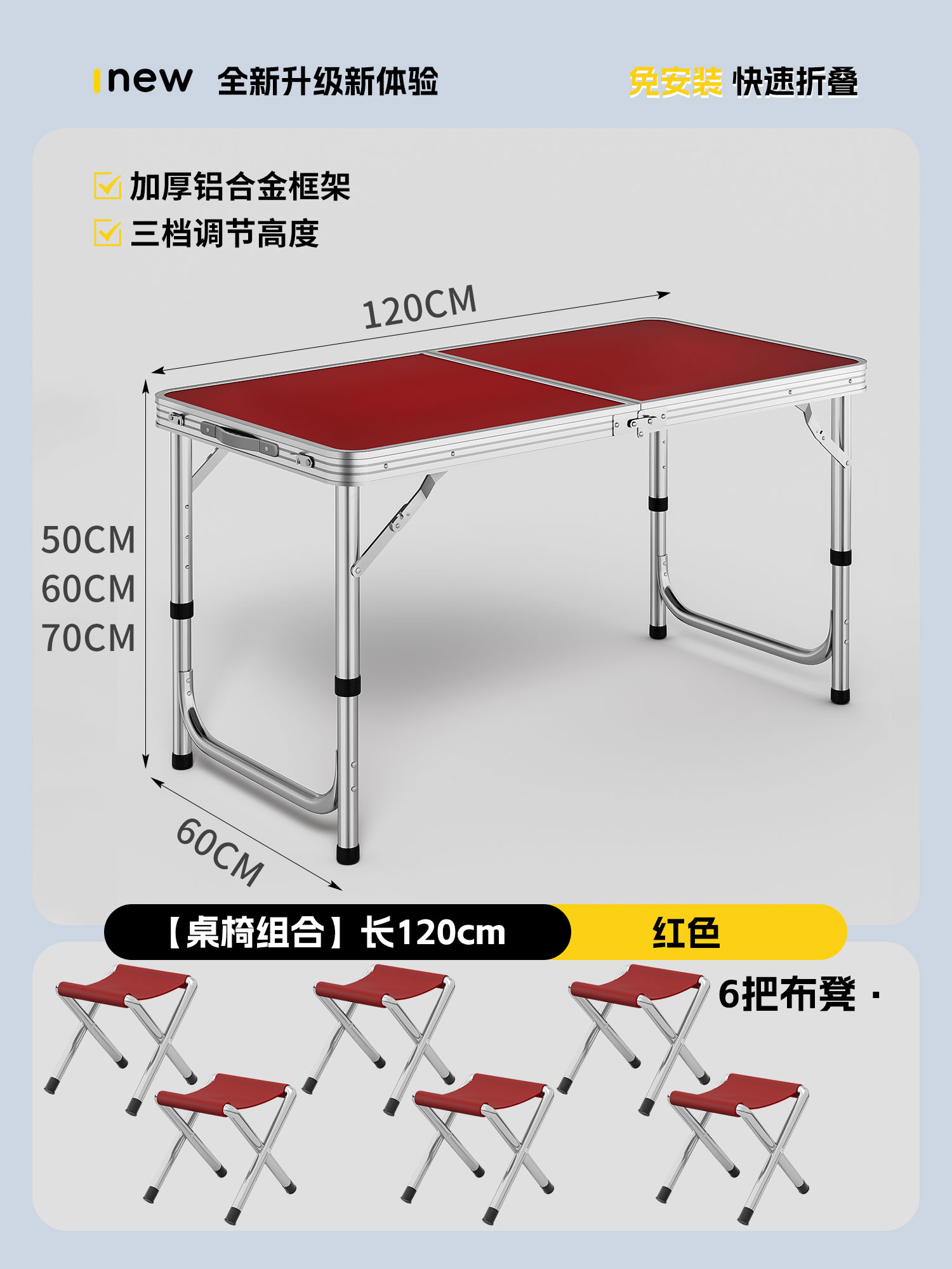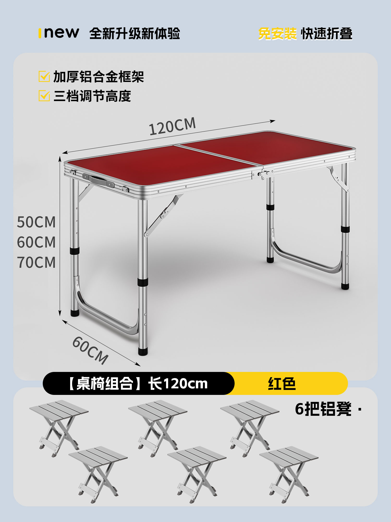 • ☆★**【볼드한 원형 다리 테이블 의자 세트】120cm 레드 + 알루미늄 스툴 6개 (항공기 등급 두께 알루미늄/가볍고 튼튼함)**☆★