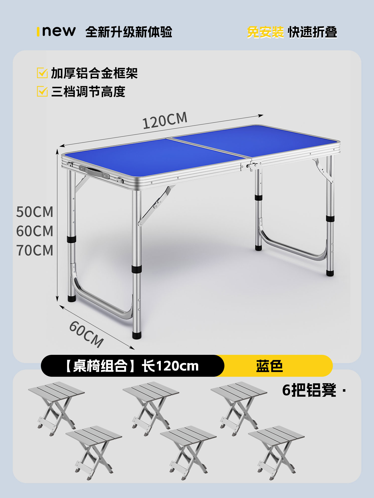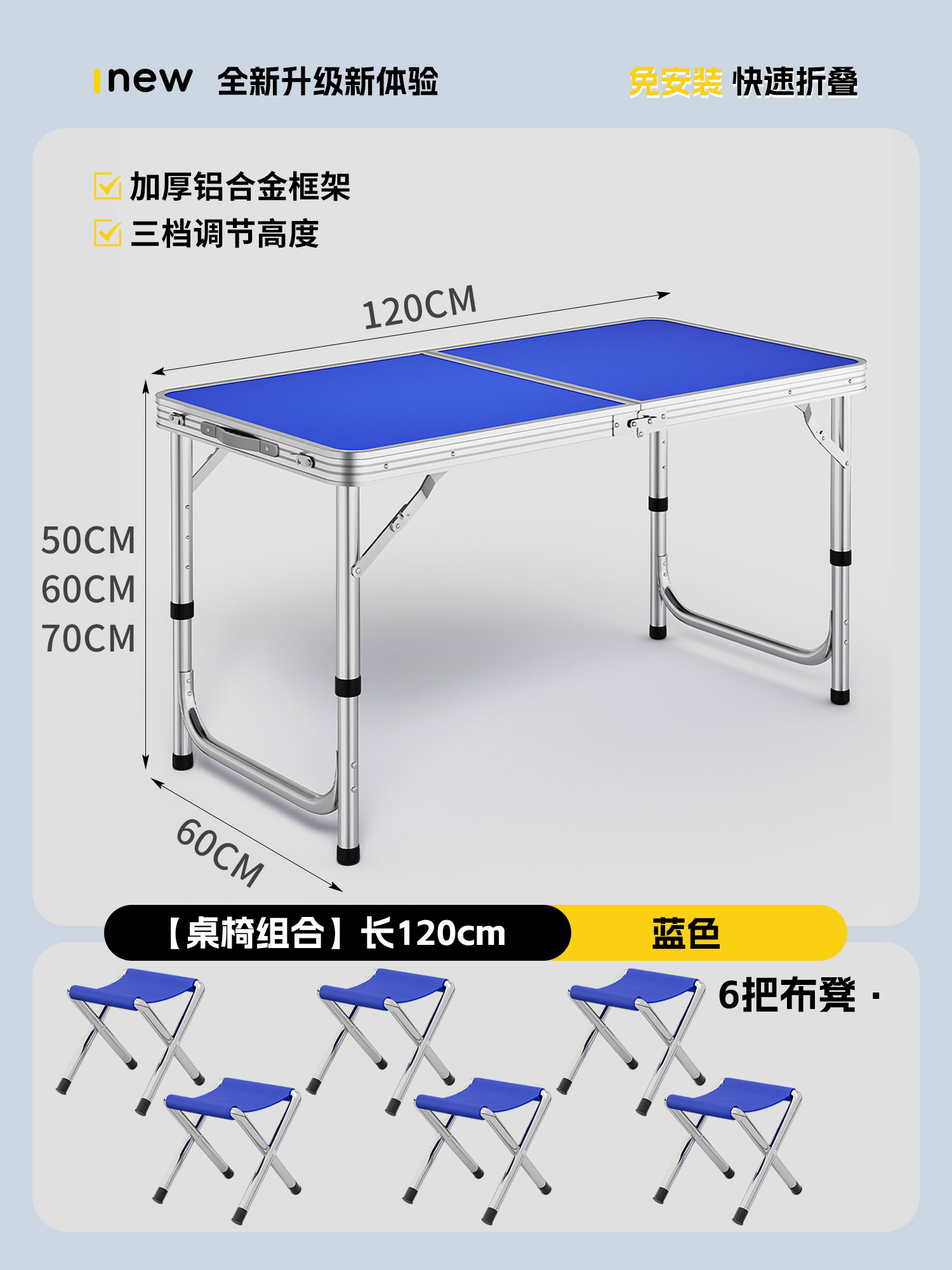 • ☆★**【볼드한 원형 다리 테이블 의자 세트】120cm 블루 + 알루미늄 스툴 6개 (항공기 등급 두께 알루미늄/가볍고 튼튼함)**☆★