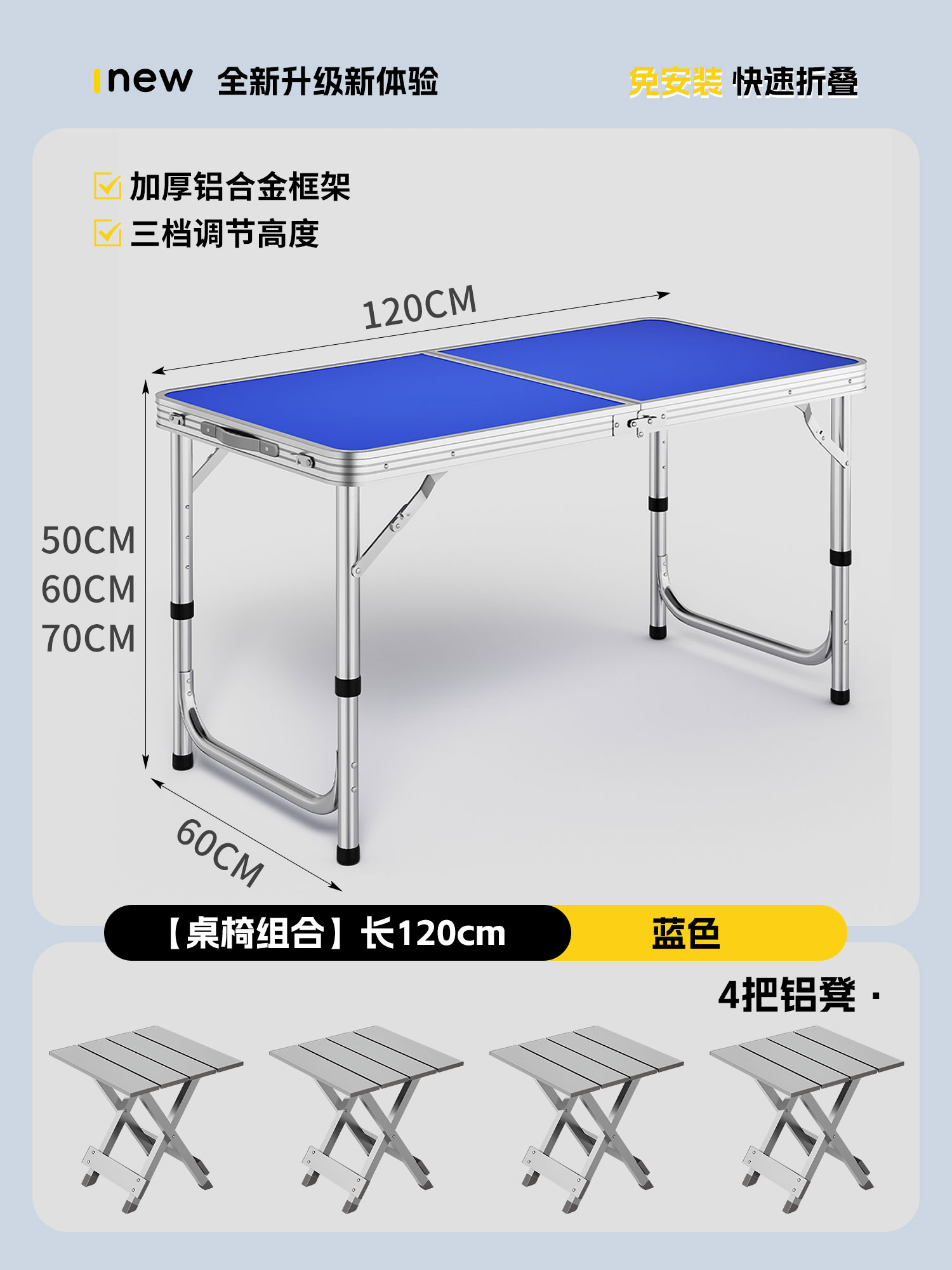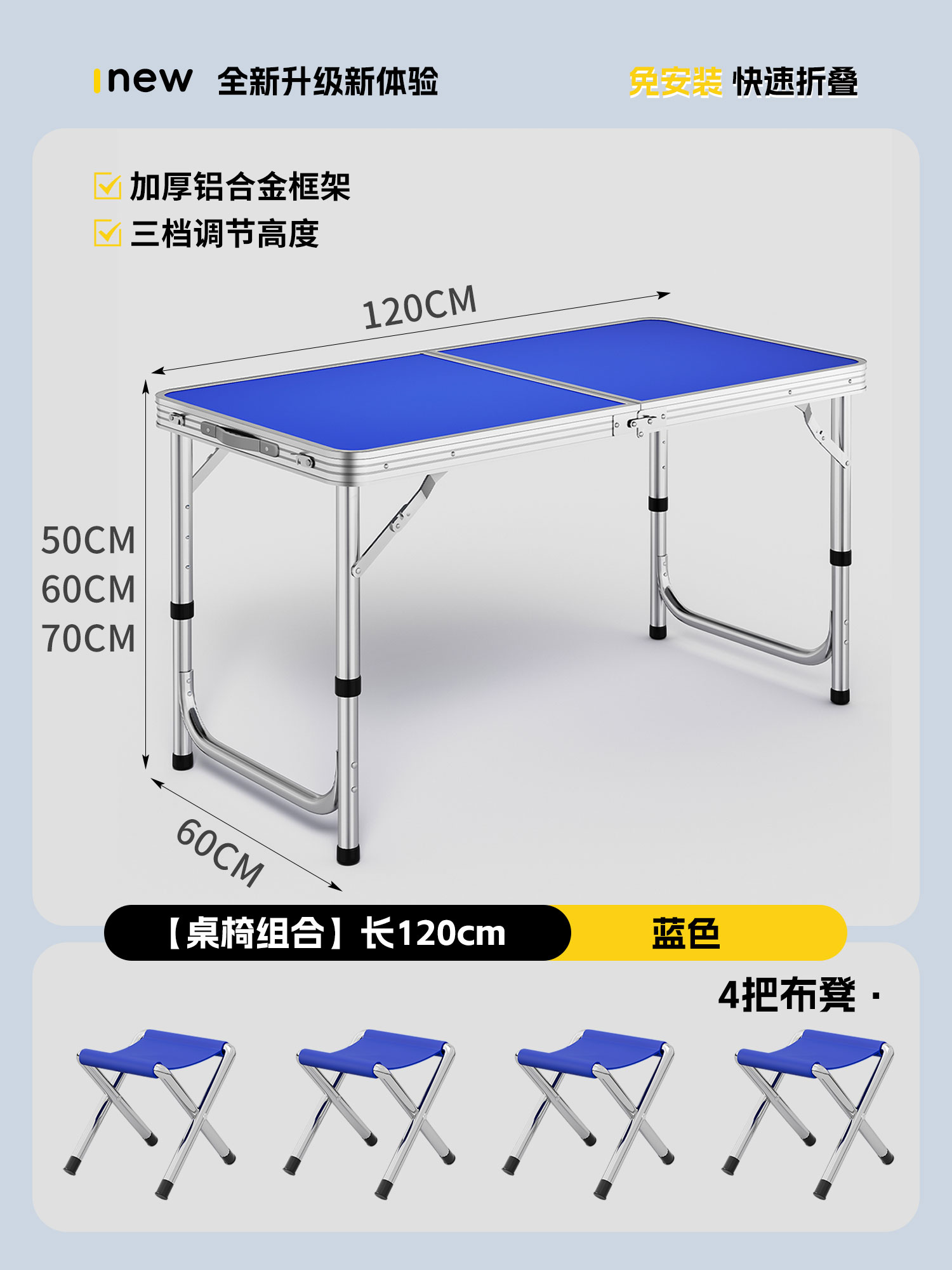 • ☆★**【볼드한 원형 다리 테이블 의자 세트】120cm 블루 + 알루미늄 스툴 4개 (항공기 등급 두께 알루미늄/가볍고 튼튼함)**☆★