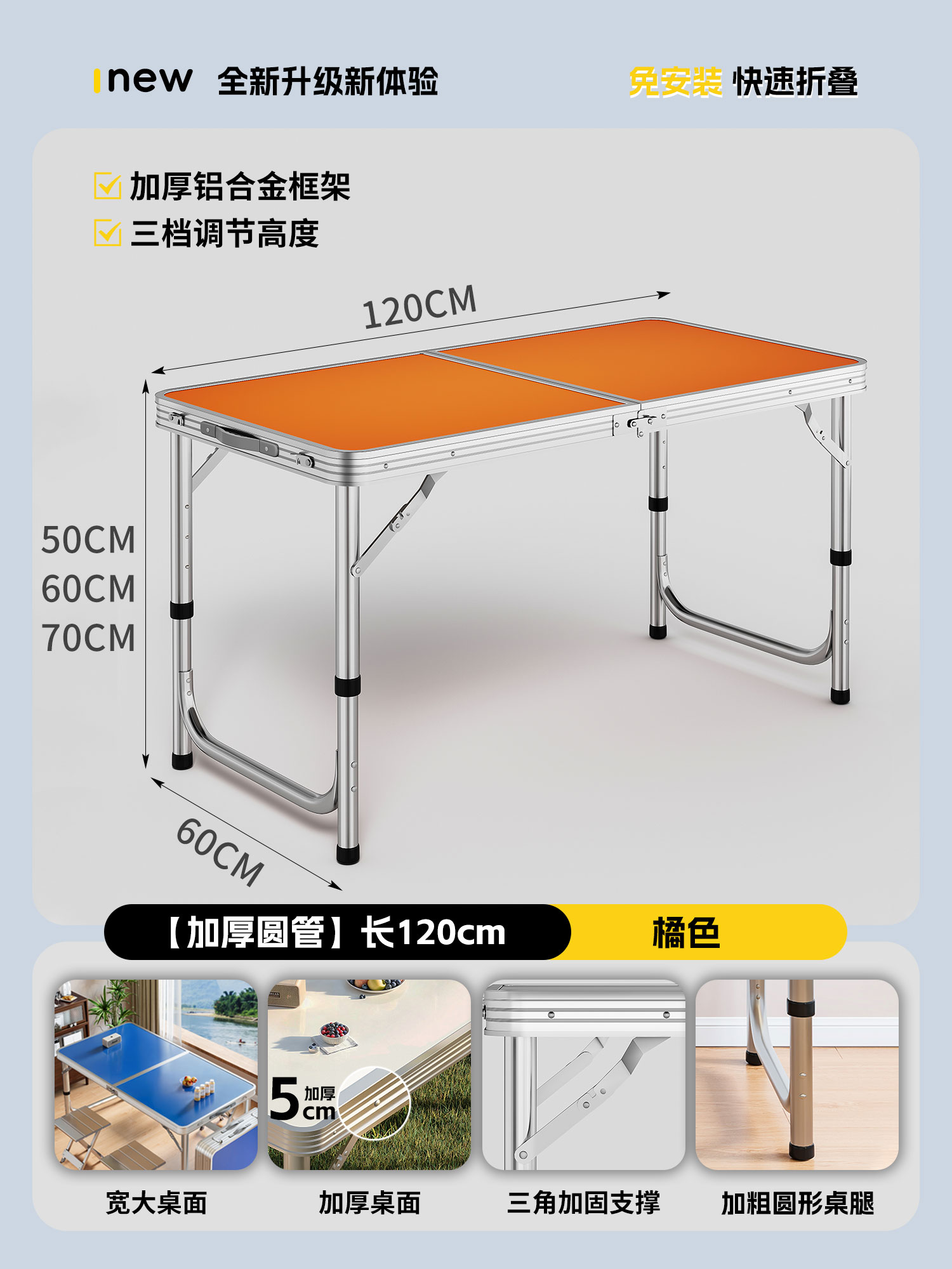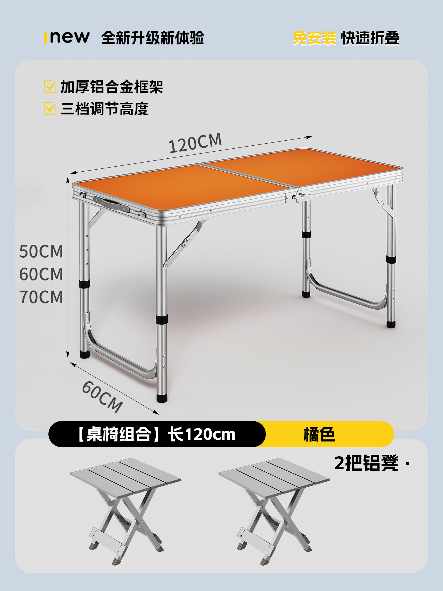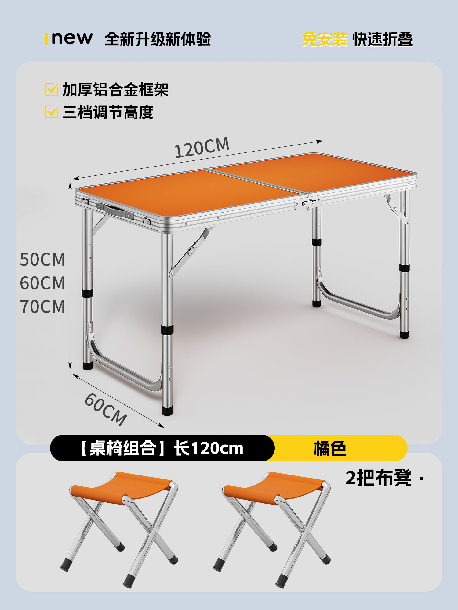 • ☆★**【볼드한 원형 다리 테이블 의자 세트】120cm 오렌지색 + 알루미늄 스툴 2개 (항공기 등급 두께 알루미늄/가볍고 튼튼함)**☆★
