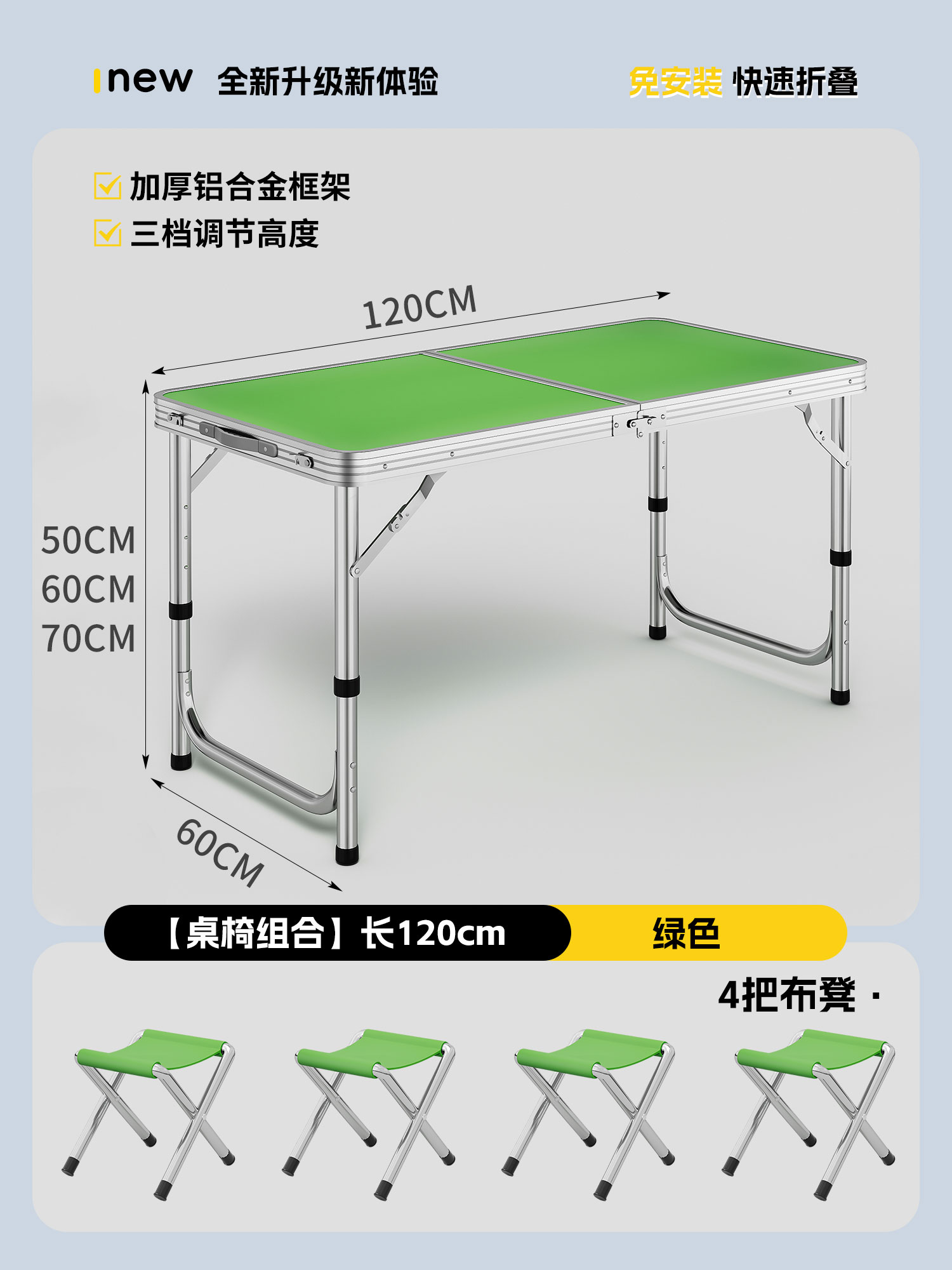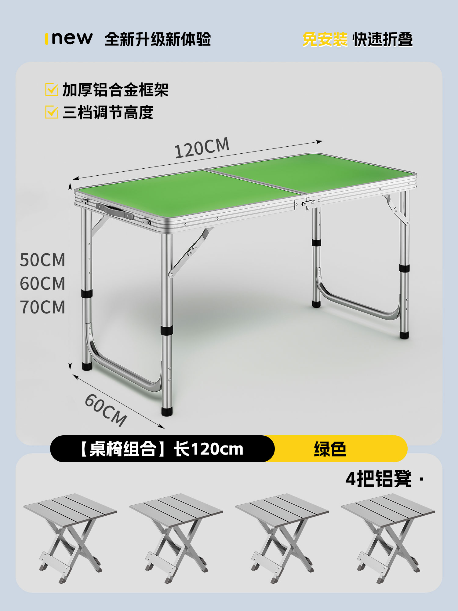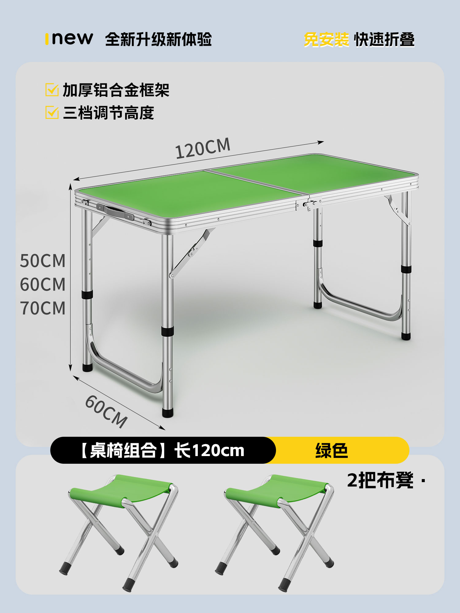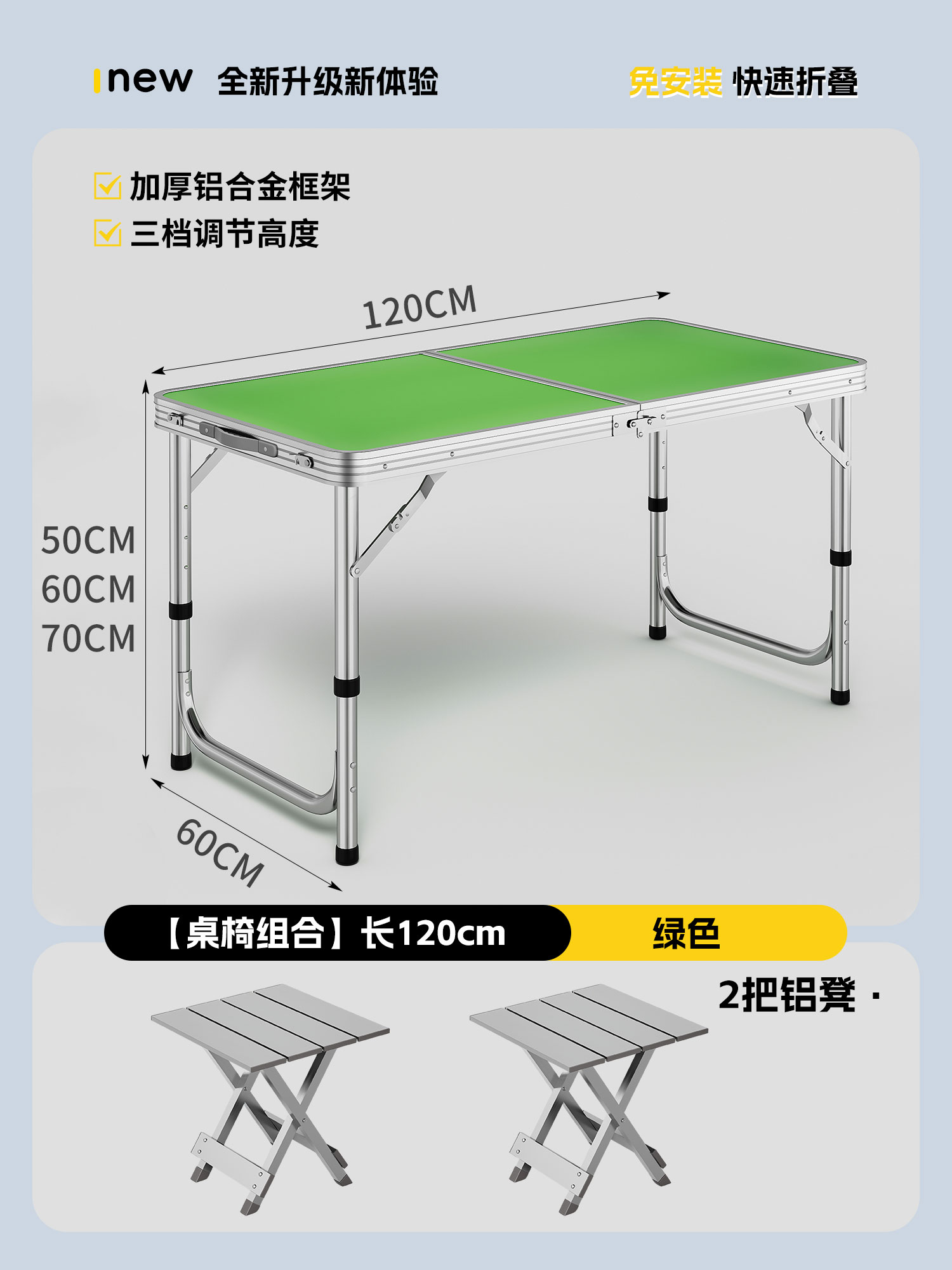 • ☆★**【볼드한 원형 다리 테이블 의자 세트】120cm 그린 + 알루미늄 스툴 2개 (항공 등급 두께 알루미늄/가볍고 튼튼함)**☆★