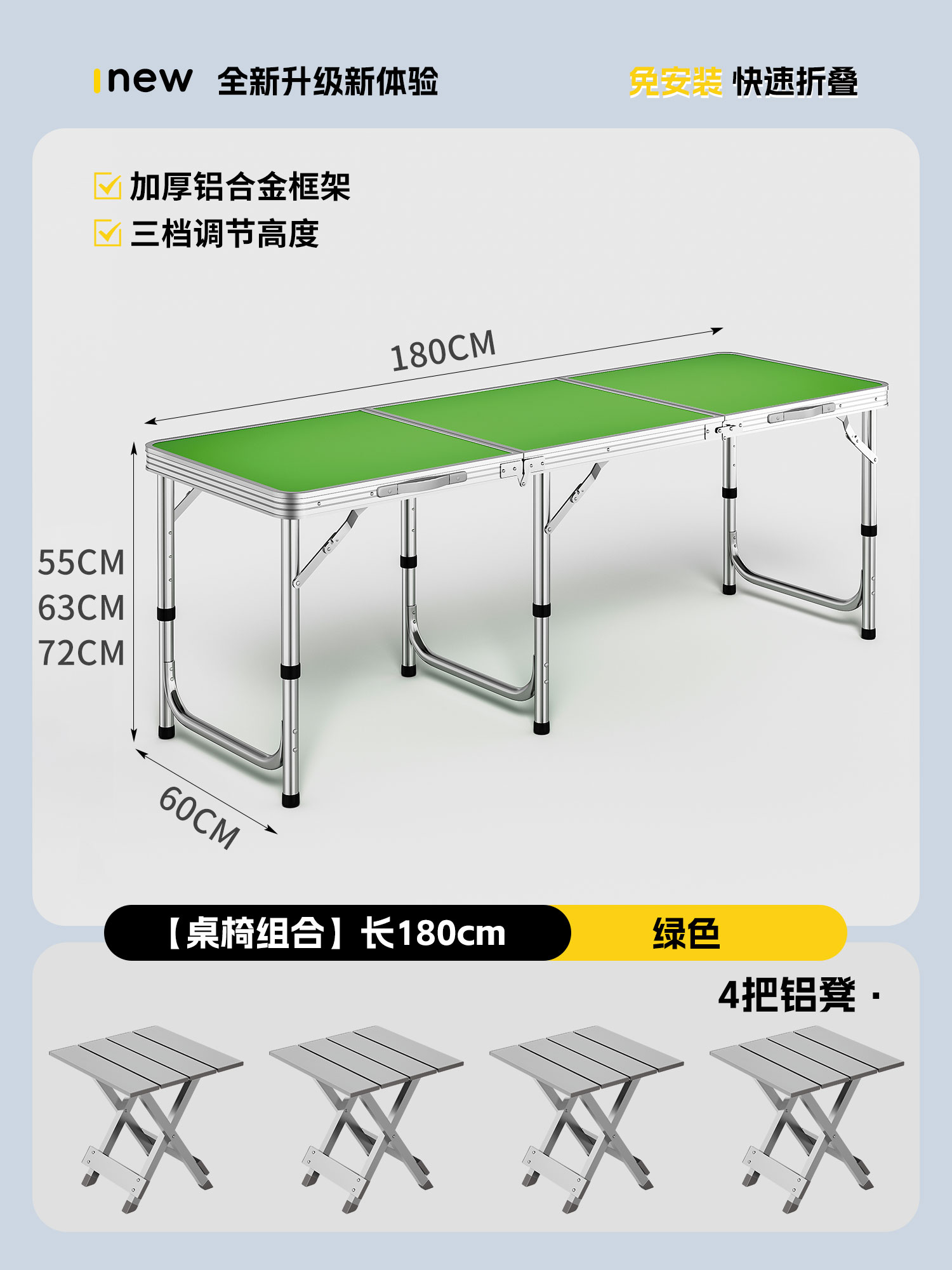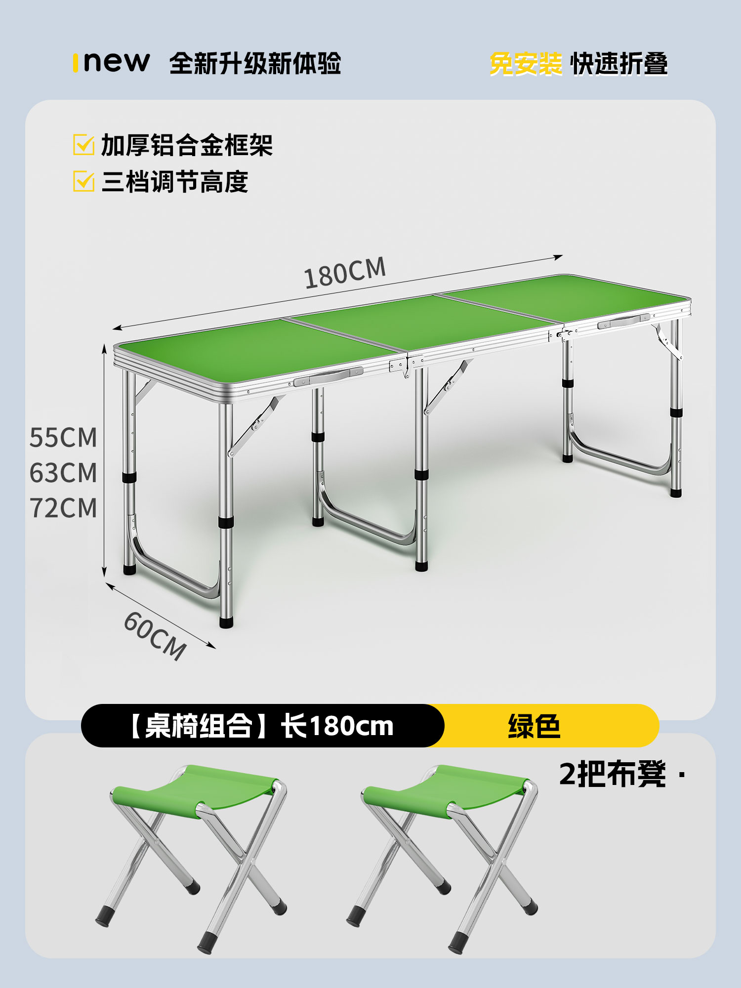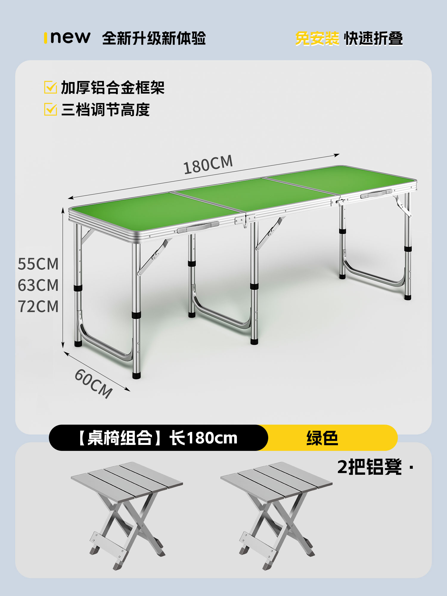 • ☆★**【볼드한 원형 다리 테이블 의자 세트】180CM 그린 + 알루미늄 스툴 2개 (항공기 등급 두께 알루미늄/가볍고 튼튼함)**☆★