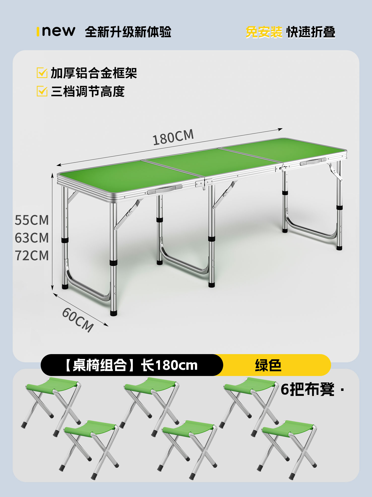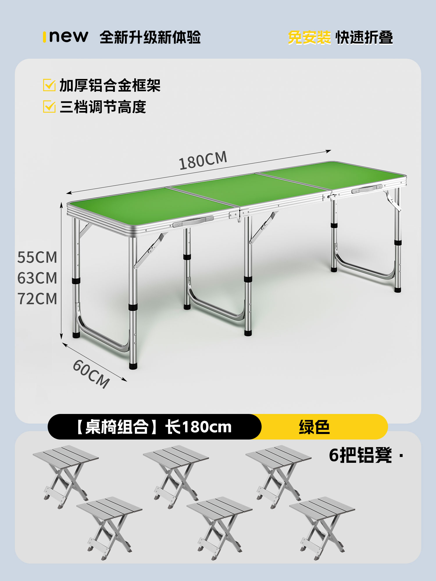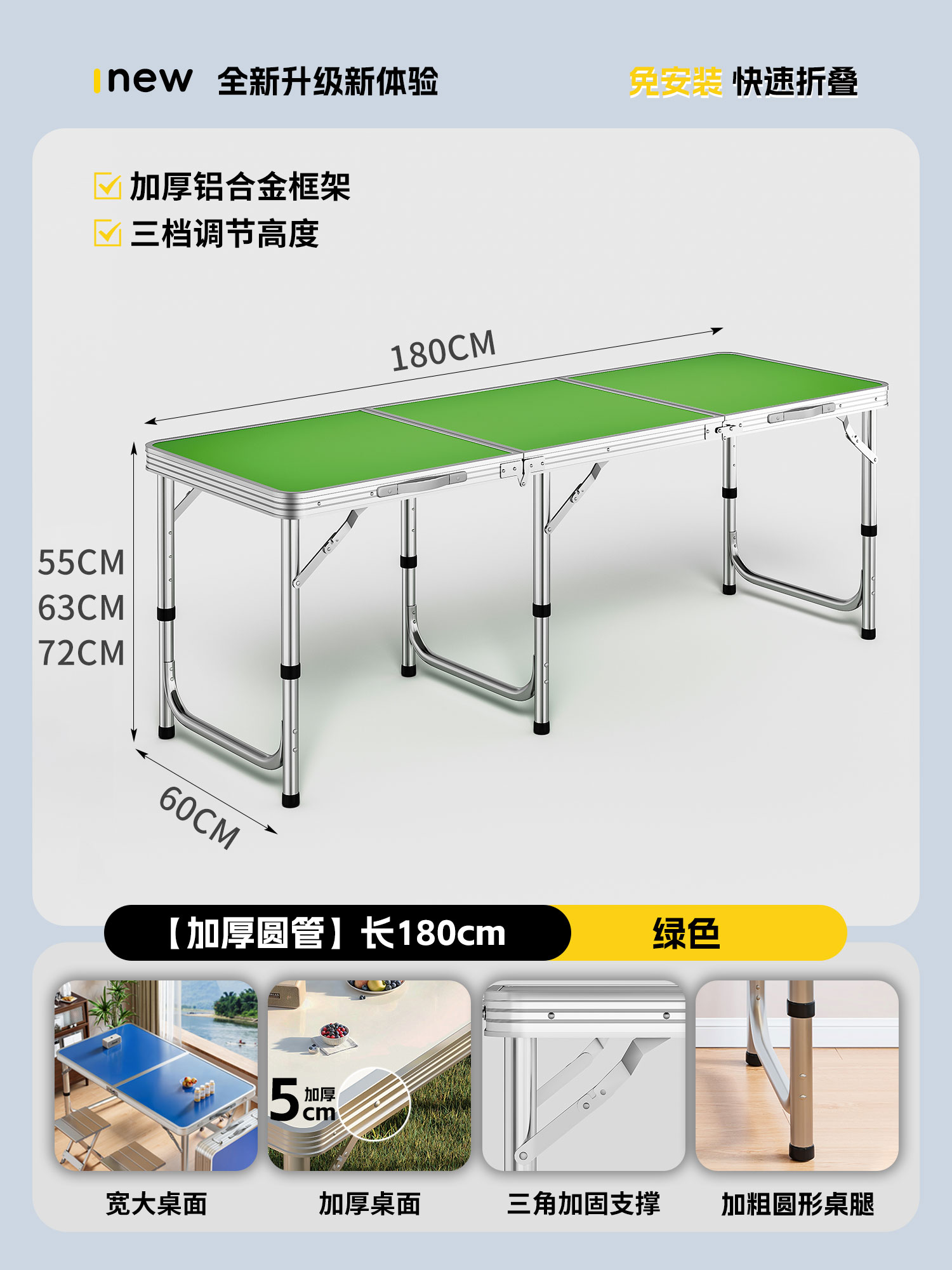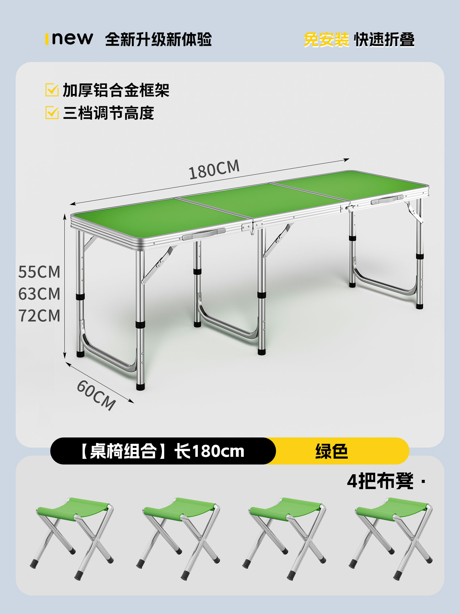 • ☆★**【볼드한 원형 다리 테이블 의자 세트】180CM 그린 + 알루미늄 스툴 2개 (항공기 등급 두께 알루미늄/가볍고 튼튼함)**☆★