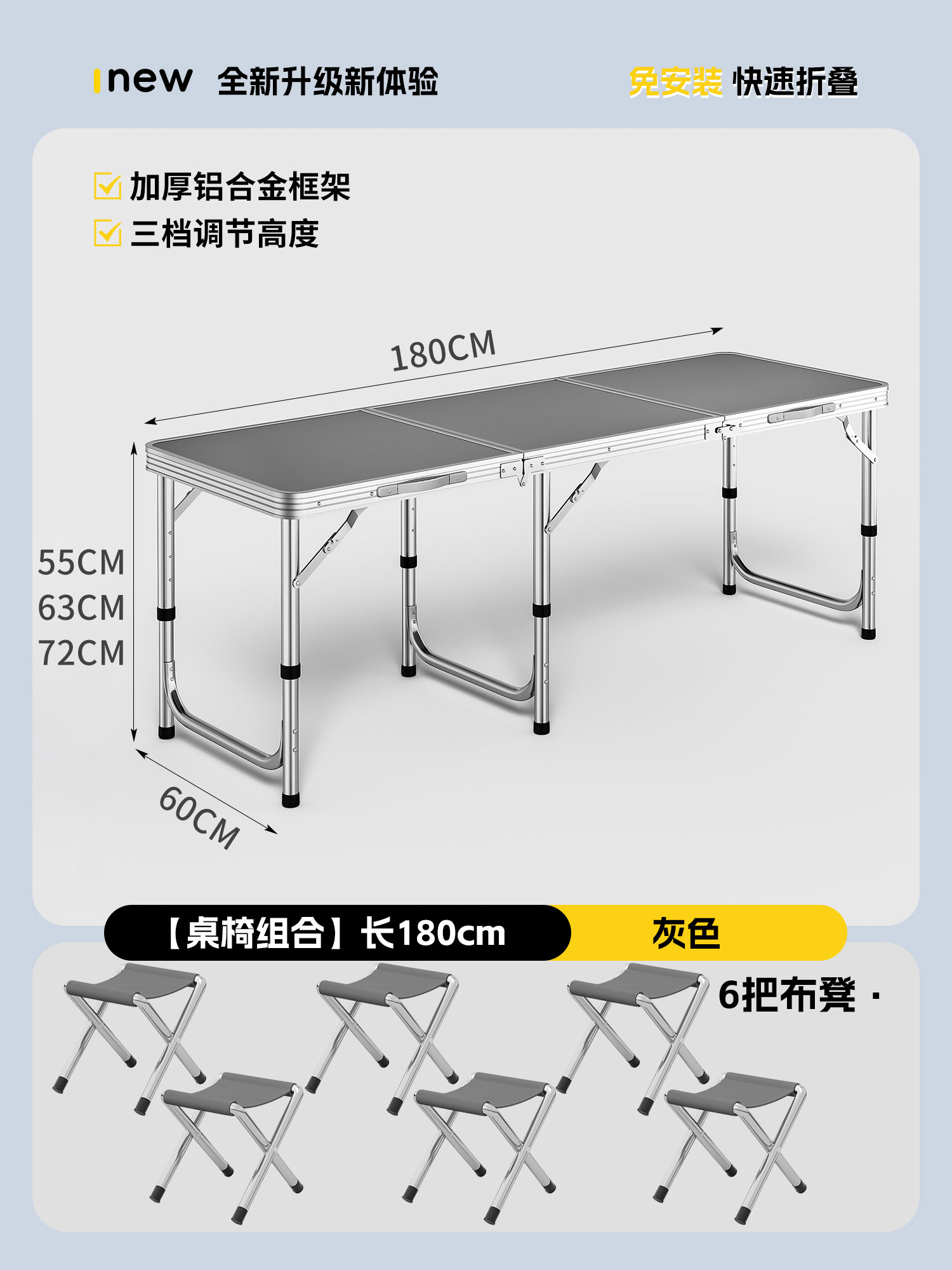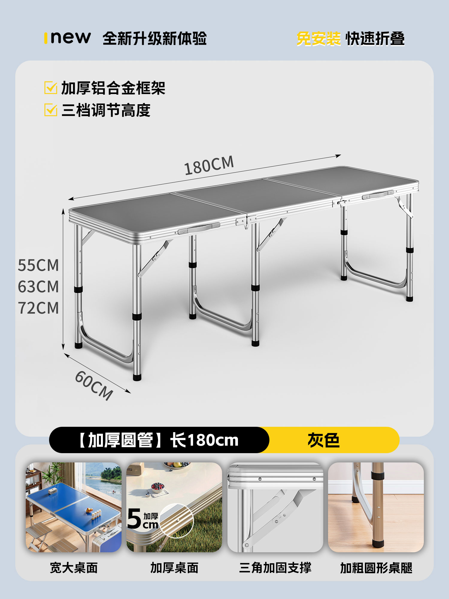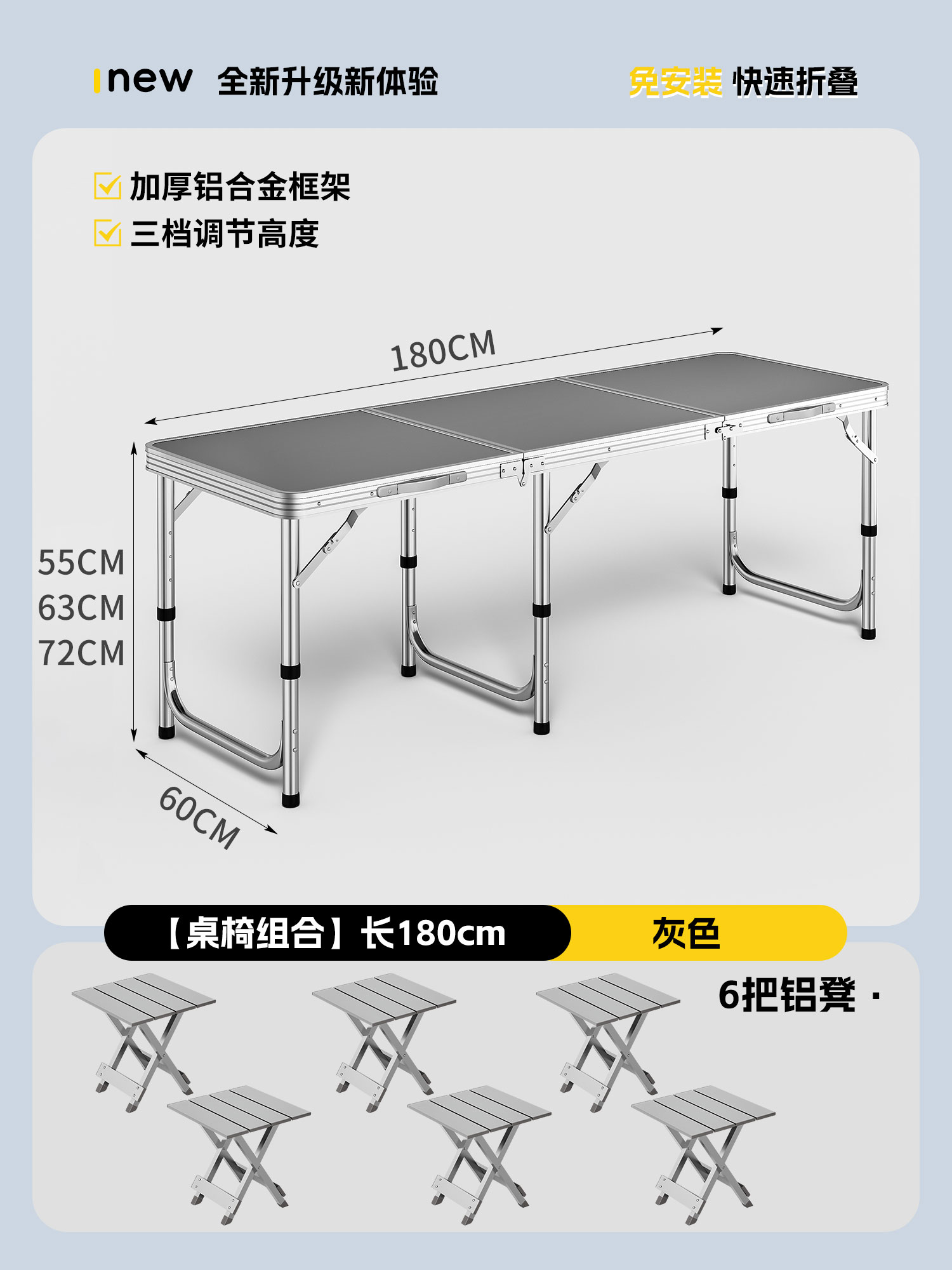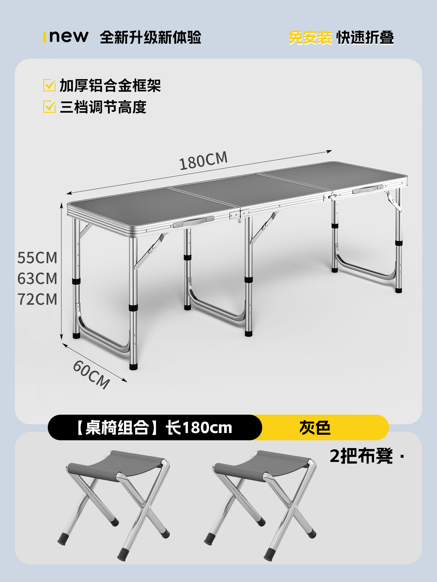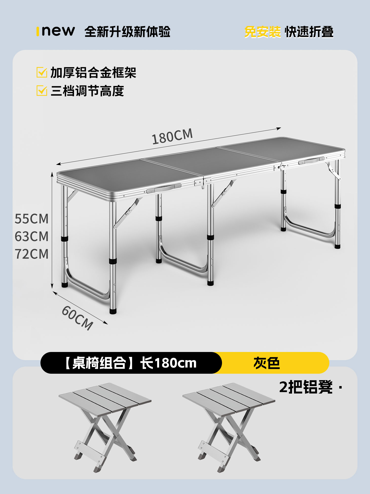 • ☆★**【볼드한 원형 다리 테이블 의자 세트】180CM 회색 + 알루미늄 스툴 2개 (항공기 등급 두께 알루미늄/가볍고 튼튼함)**☆★