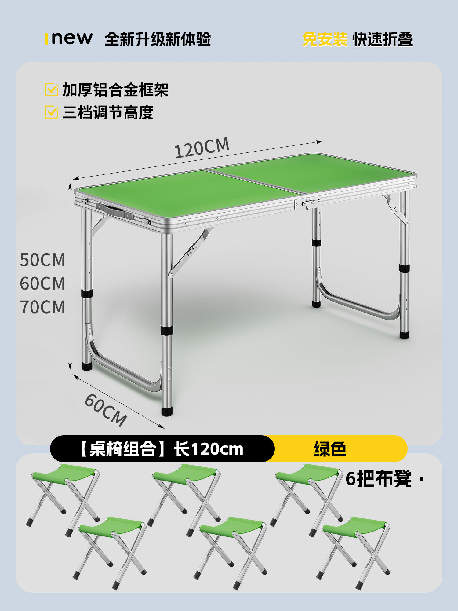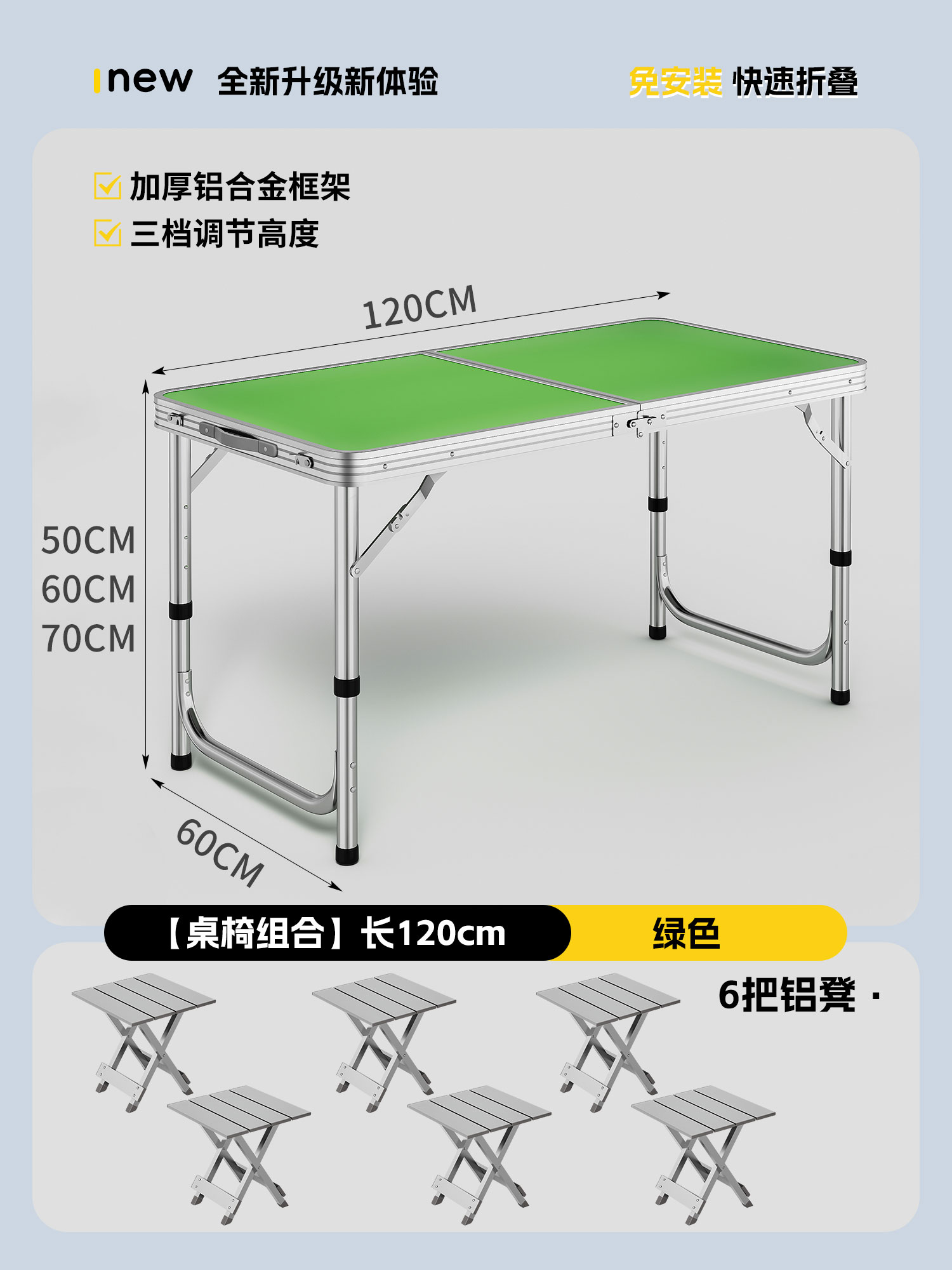 • ☆★**【볼드한 원형 다리 테이블 의자 세트】120cm 그린 + 알루미늄 스툴 6개 (항공기 등급 두께 알루미늄/가볍고 튼튼함)**☆★