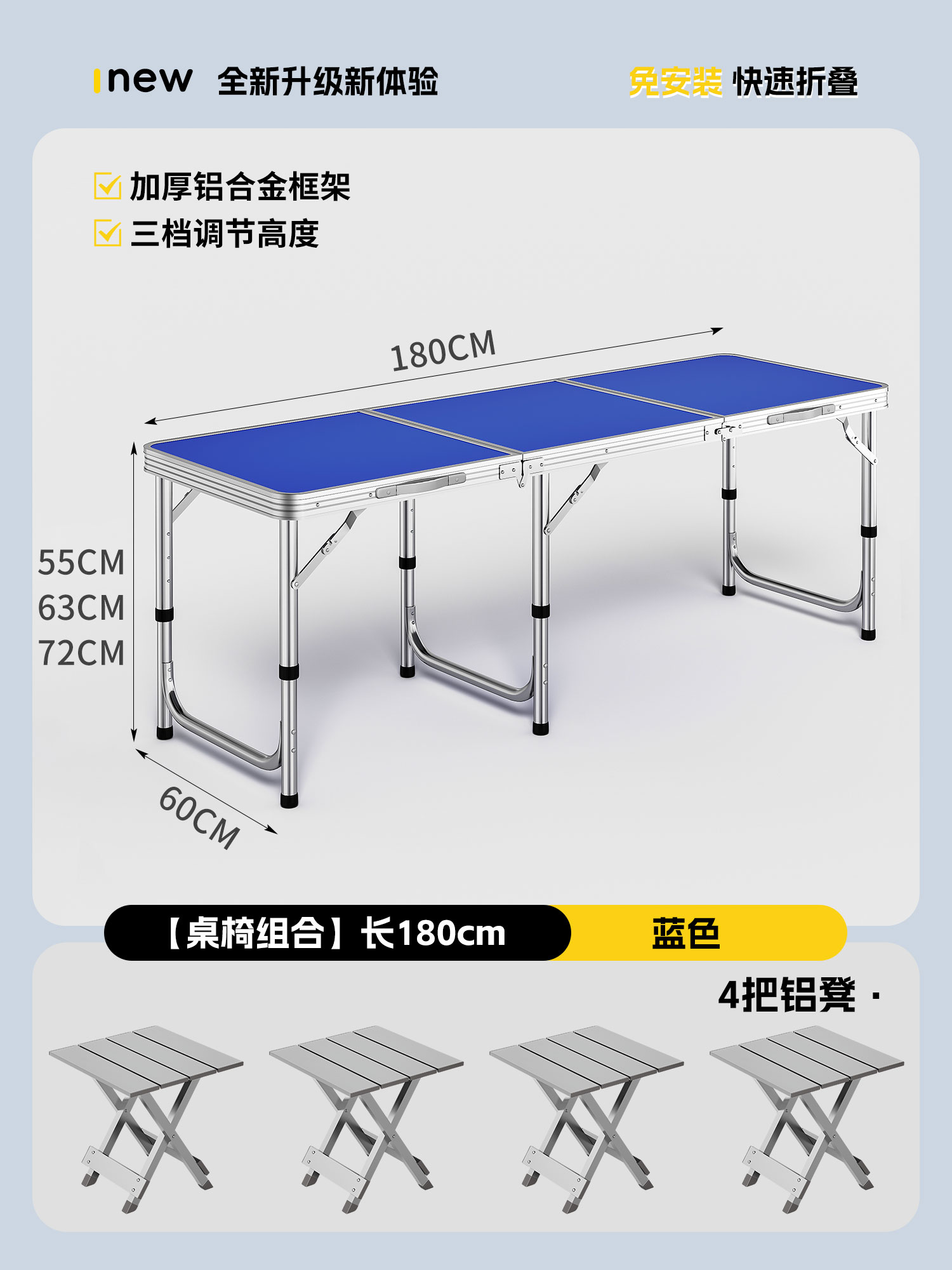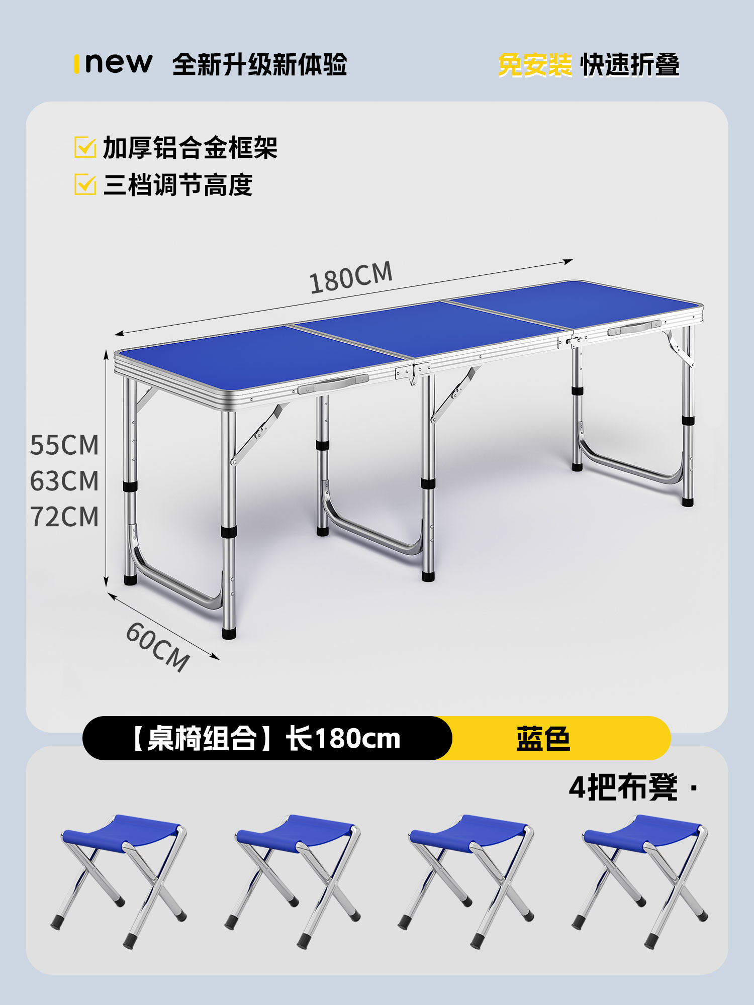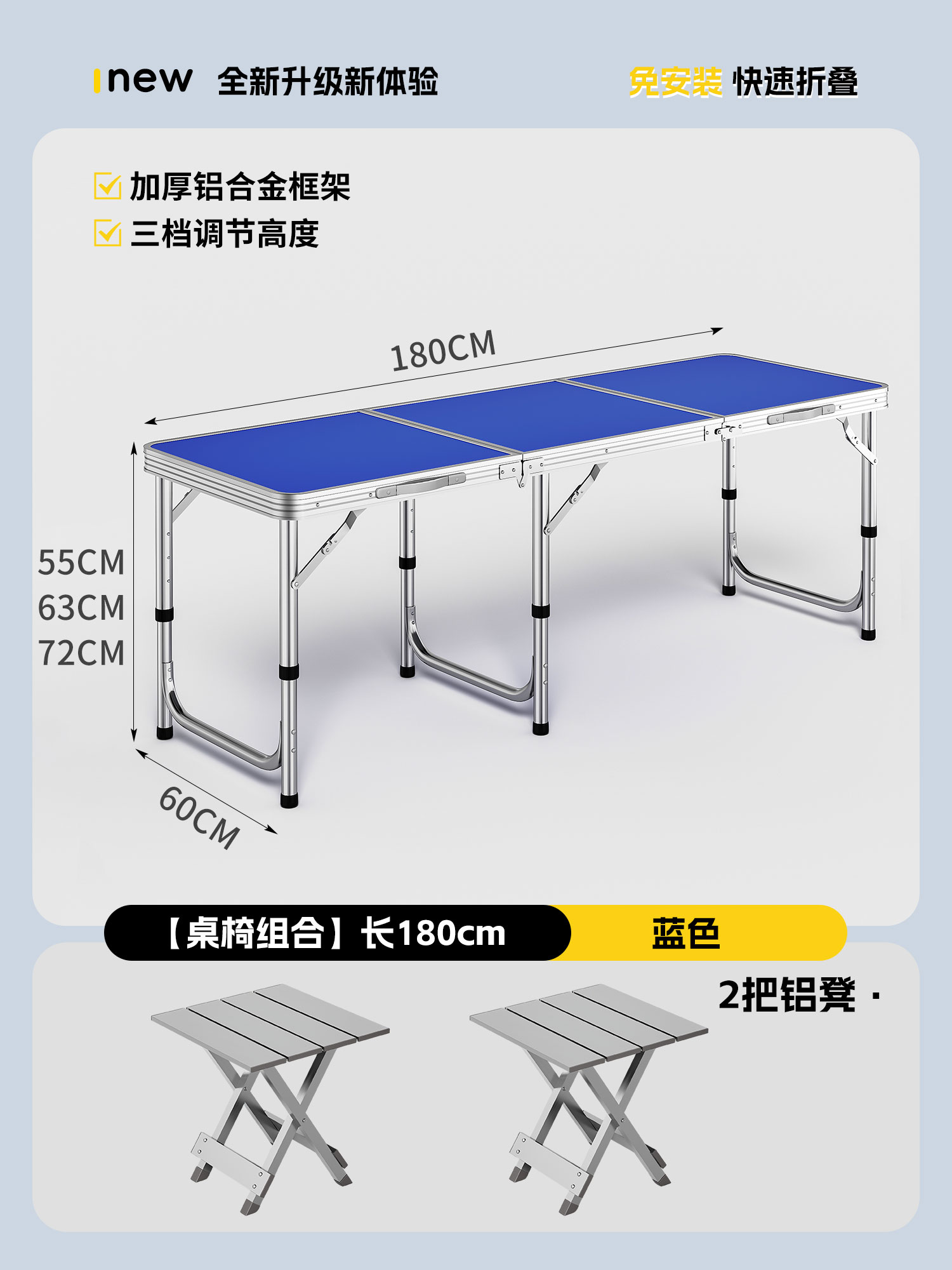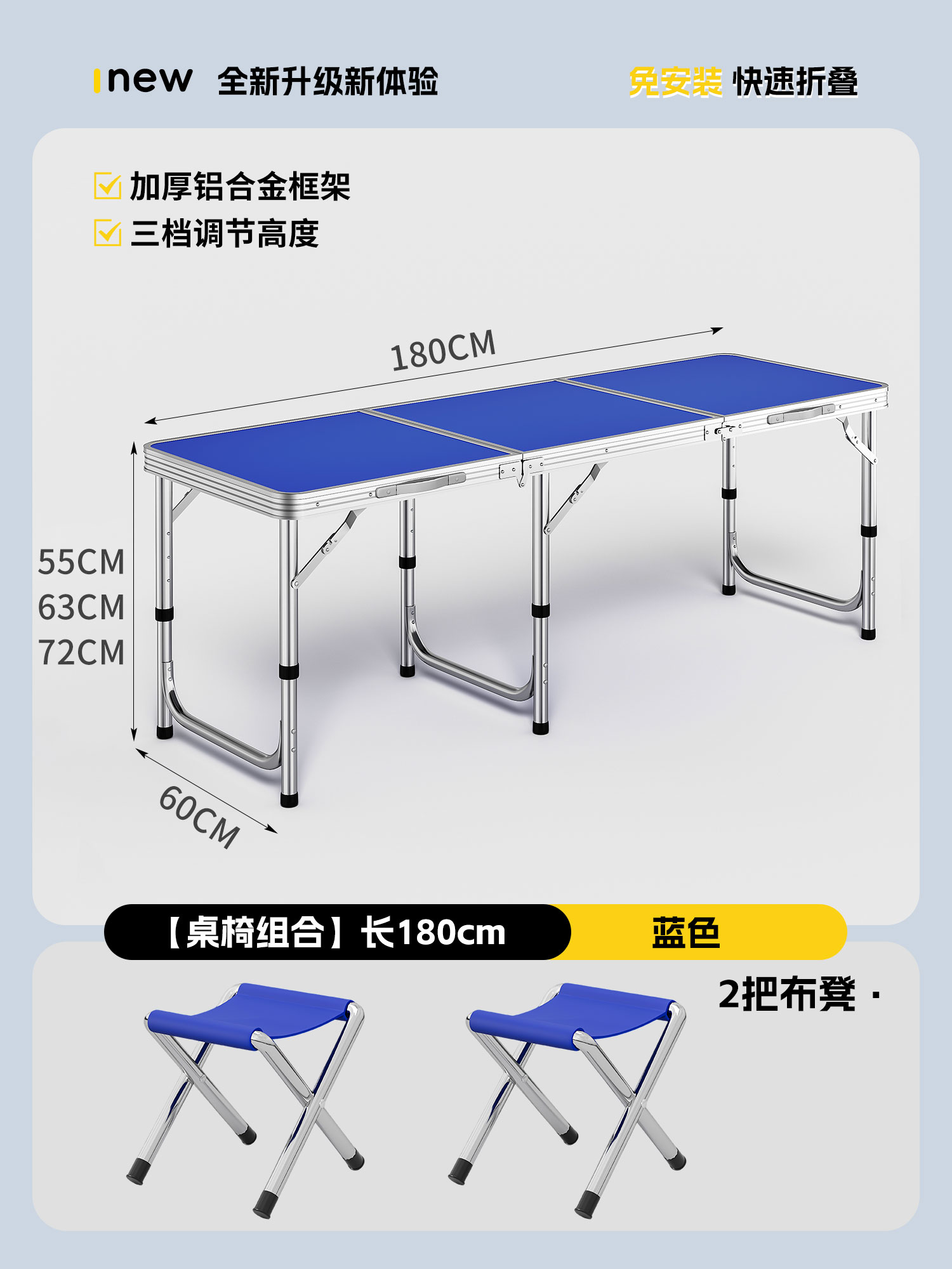 • ☆★**【볼드한 원형 다리 테이블 의자 세트】180CM 블루 + 알루미늄 스툴 2개 (항공기 등급 두께 알루미늄/가볍고 튼튼함)**☆★