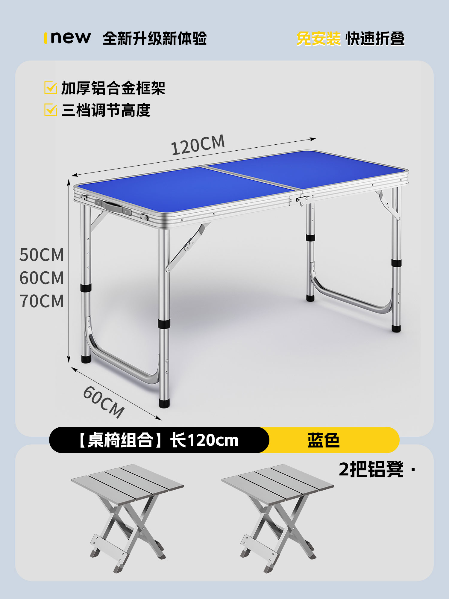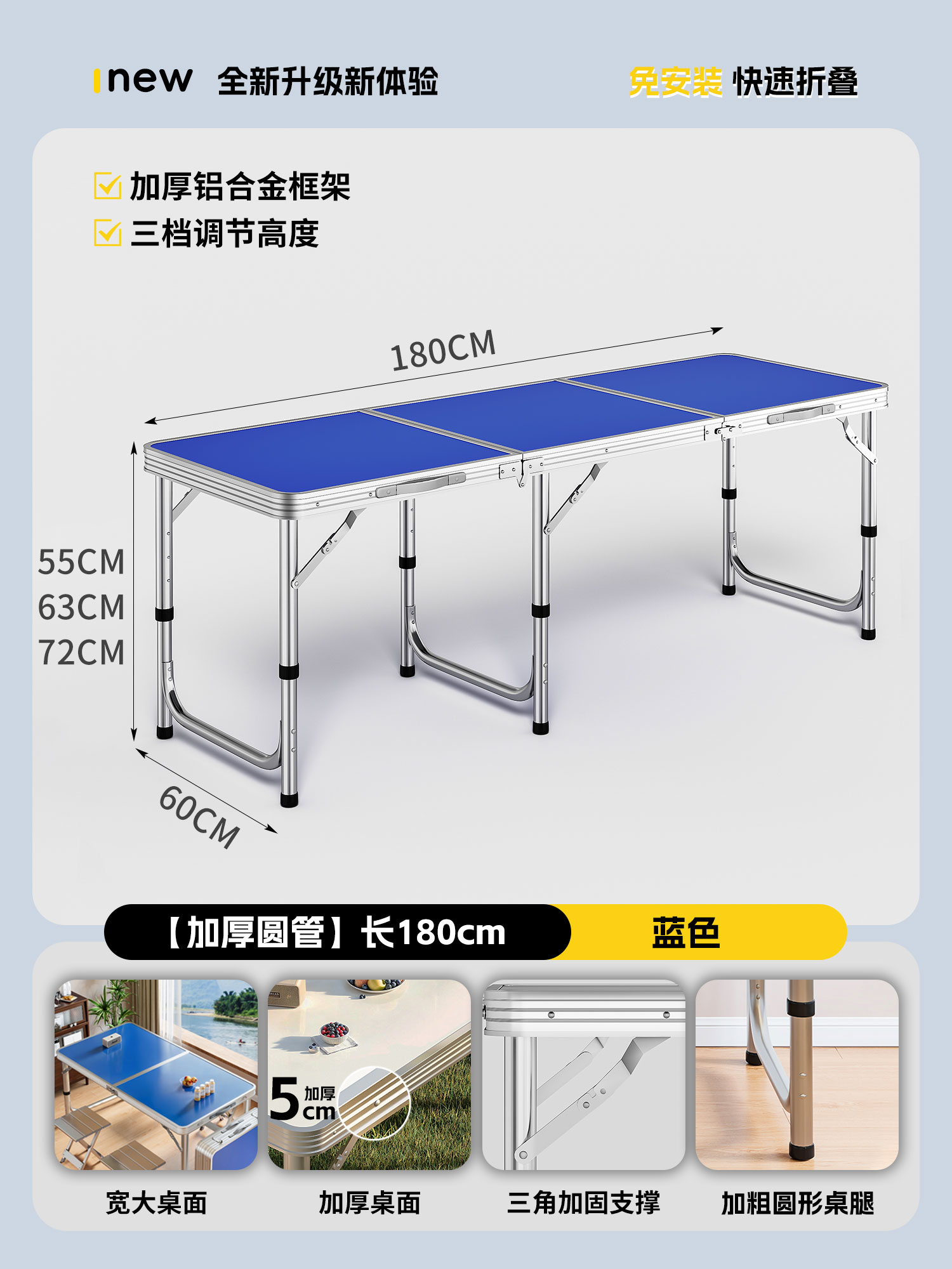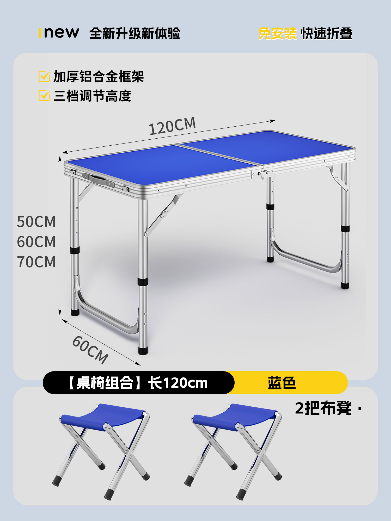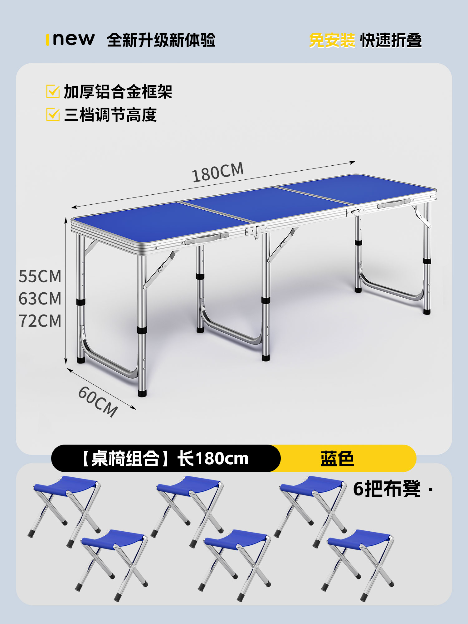 • ☆★**【볼드한 원형 다리 테이블 의자 세트】180CM 블루 + 알루미늄 스툴 2개 (항공기 등급 두께 알루미늄/가볍고 튼튼함)**☆★