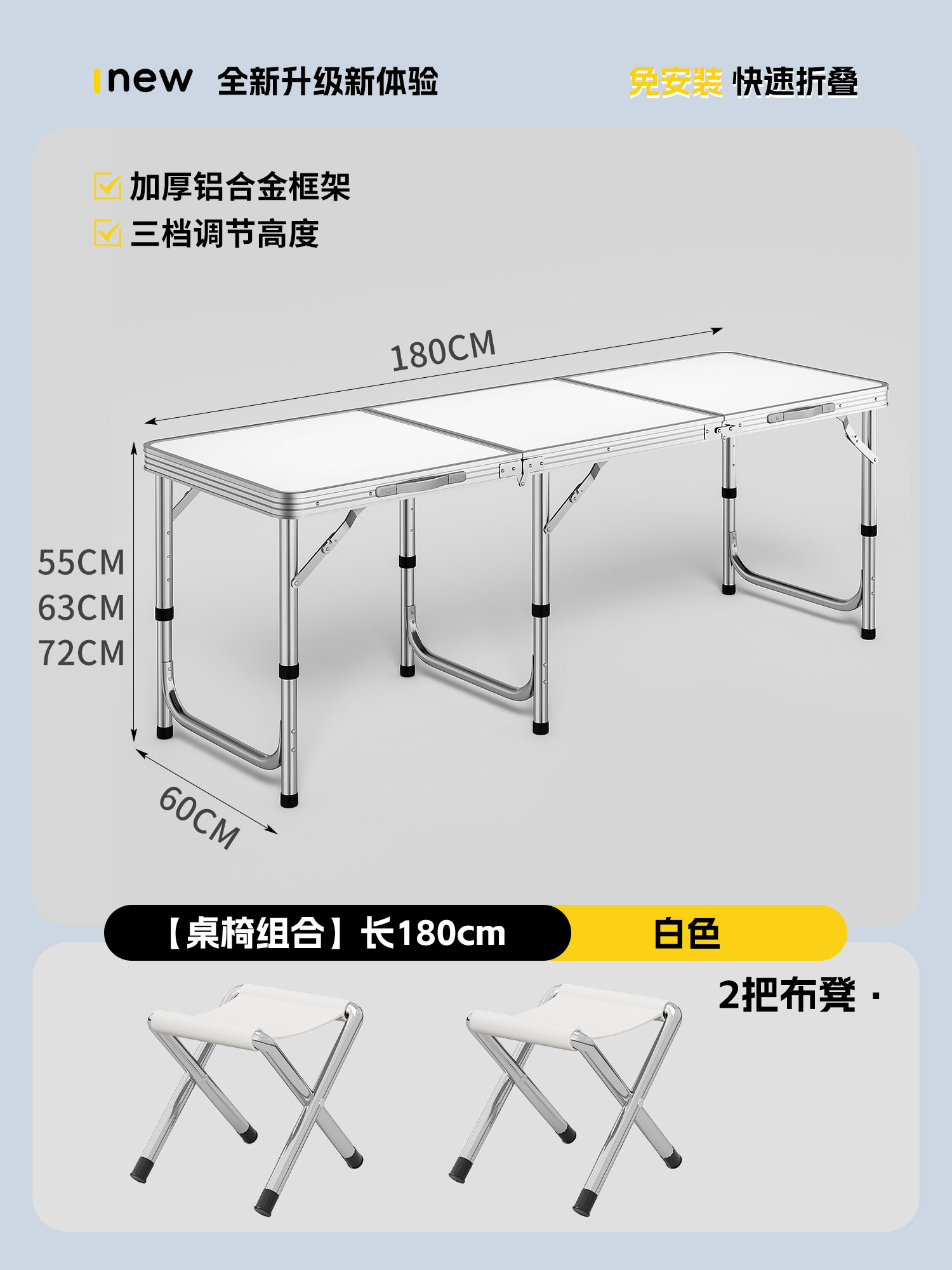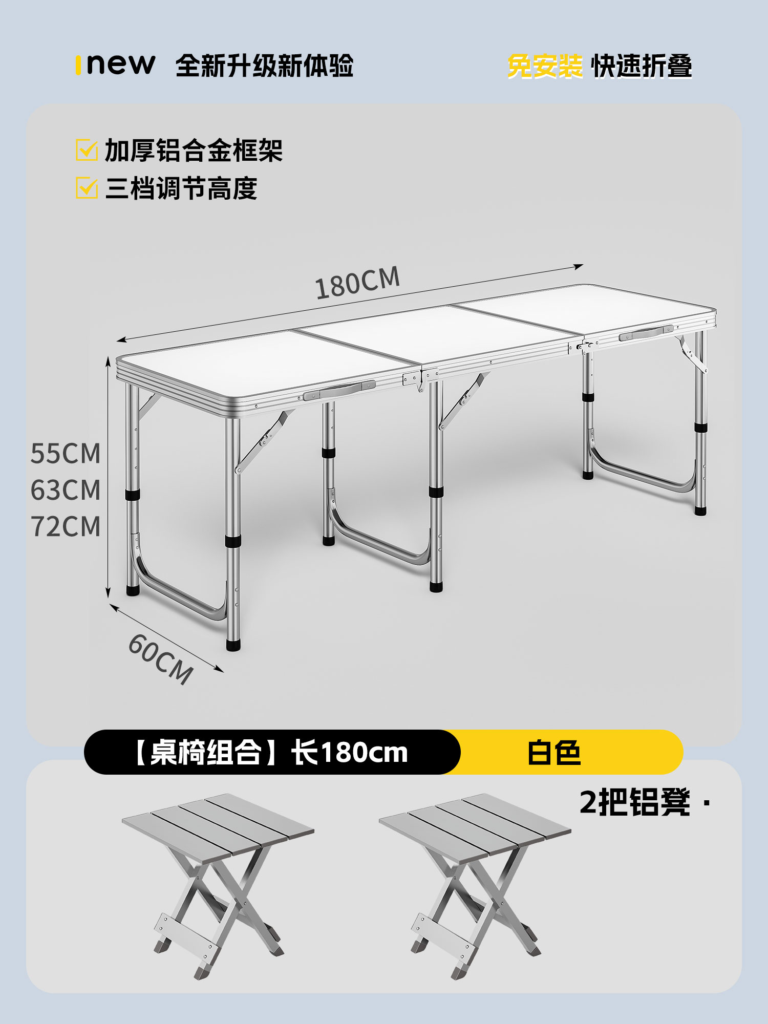 • ☆★**【볼드한 원형 다리 테이블 의자 세트】180CM 화이트 + 알루미늄 스툴 2개 (항공기 등급 두께 알루미늄/가볍고 튼튼함)**☆★