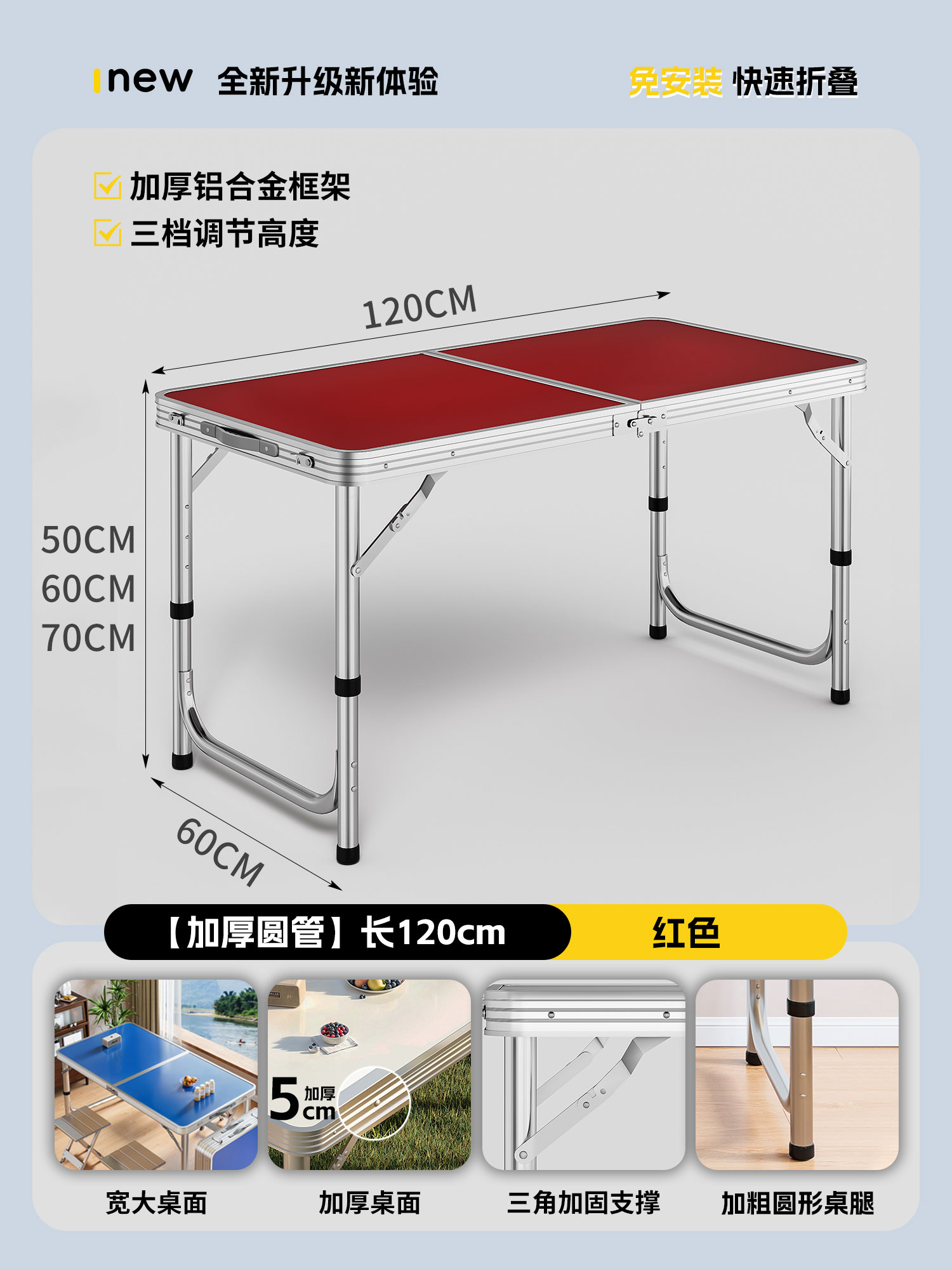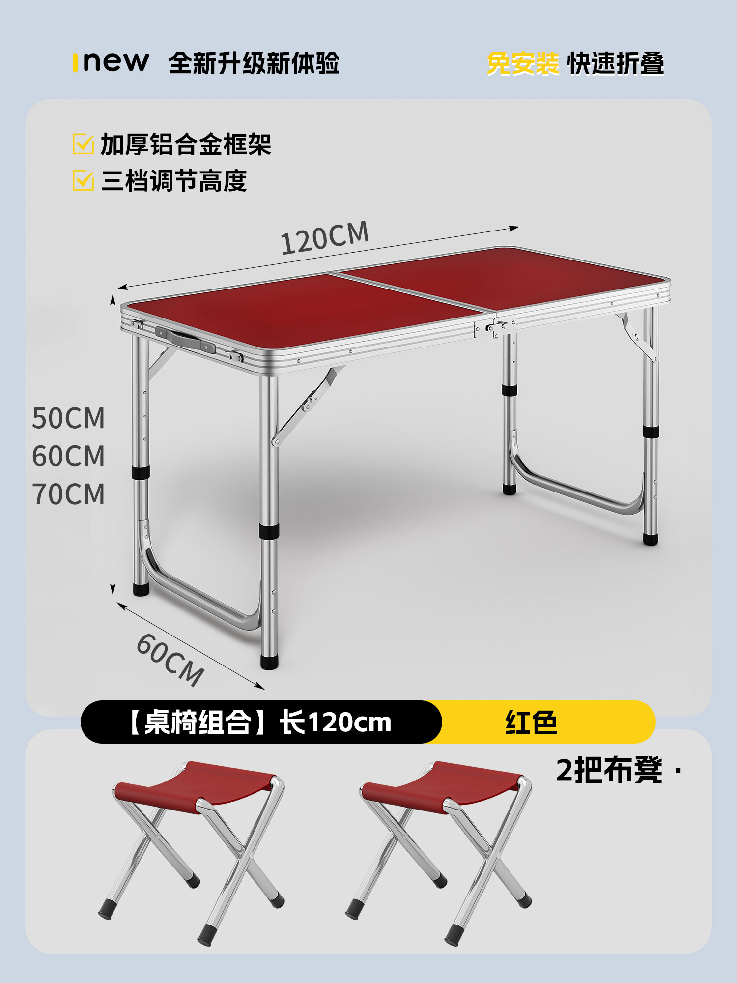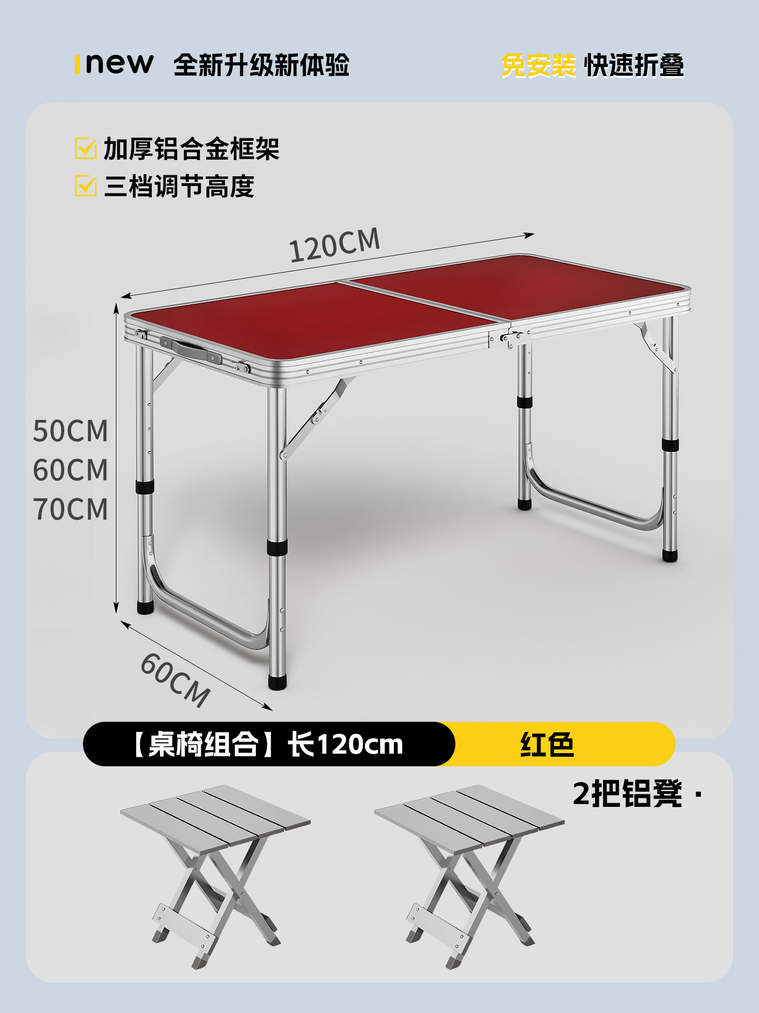 • ☆★**【볼드한 원형 다리 테이블 의자 세트】120cm 레드 + 알루미늄 스툴 2개 (항공기 등급 두께 알루미늄/가볍고 튼튼함)**☆★