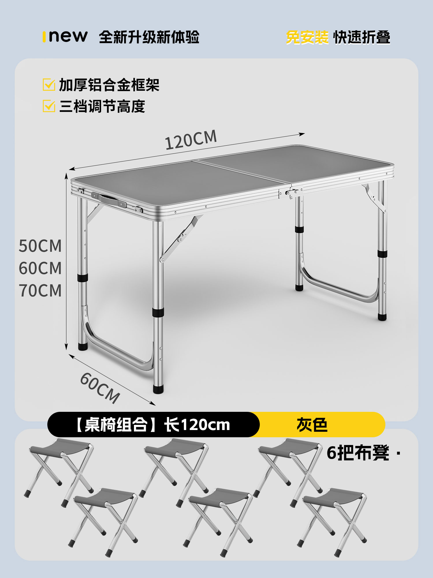 • ☆★**【볼드한 원형 다리 테이블 의자 세트】120cm 회색 + 알루미늄 스툴 6개 (항공기 등급 두께 알루미늄/가볍고 튼튼함)**☆★
