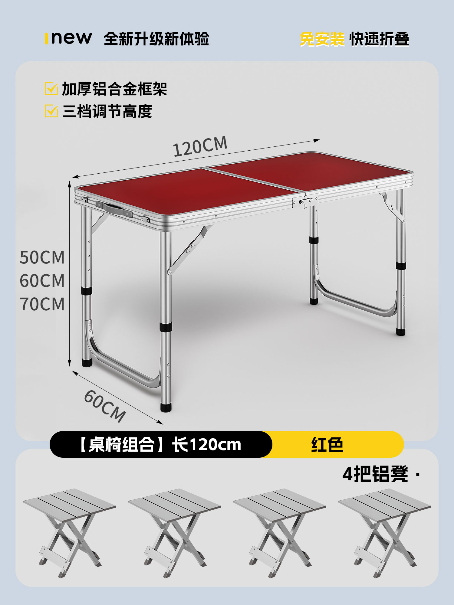 • ☆★**【볼드한 원형 다리 테이블 의자 세트】120cm 레드 + 알루미늄 스툴 4개 (항공기 등급 두께 알루미늄/가볍고 튼튼함)**☆★