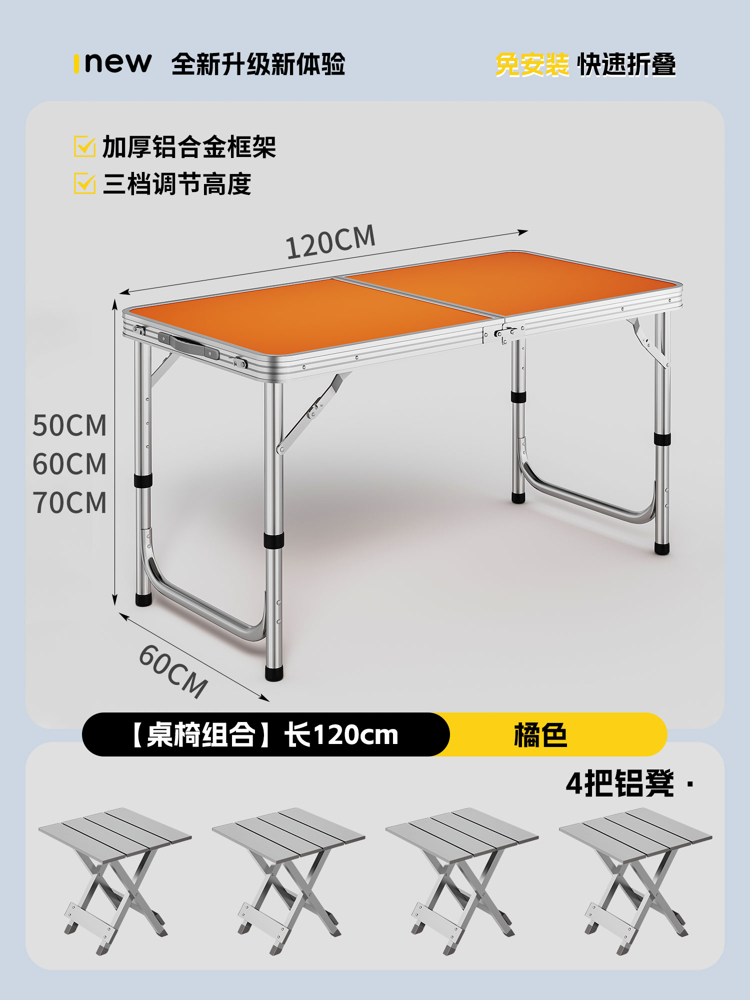 • ☆★**【볼드한 원형 다리 테이블 의자 세트】120cm 오렌지색 + 알루미늄 스툴 4개 (항공기 등급 두께 알루미늄/가볍고 튼튼함)**☆★