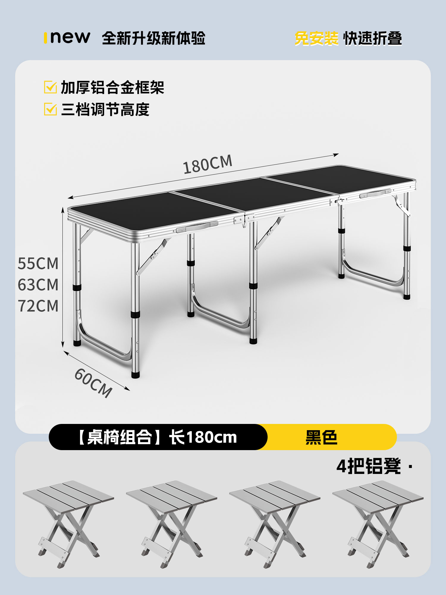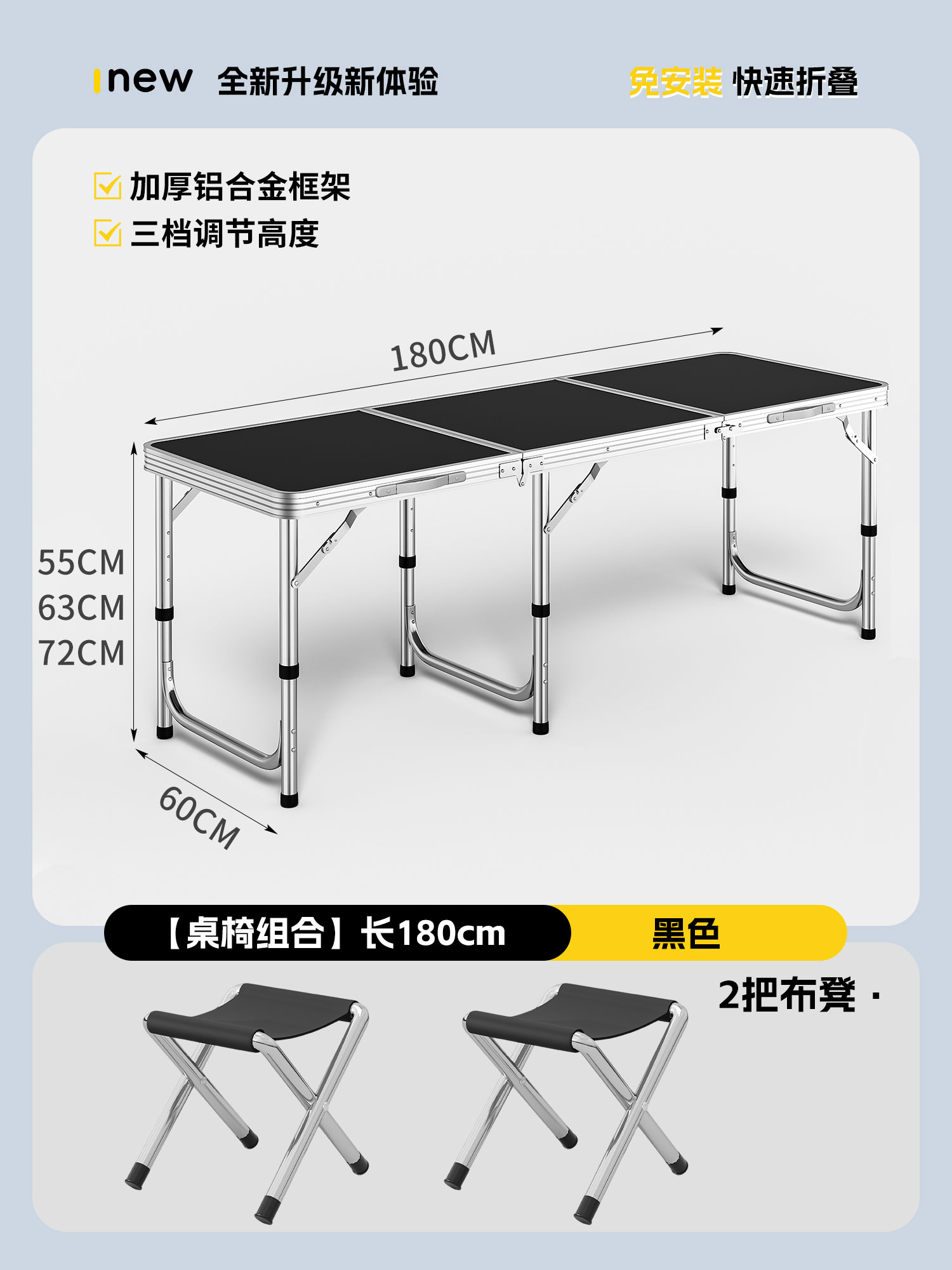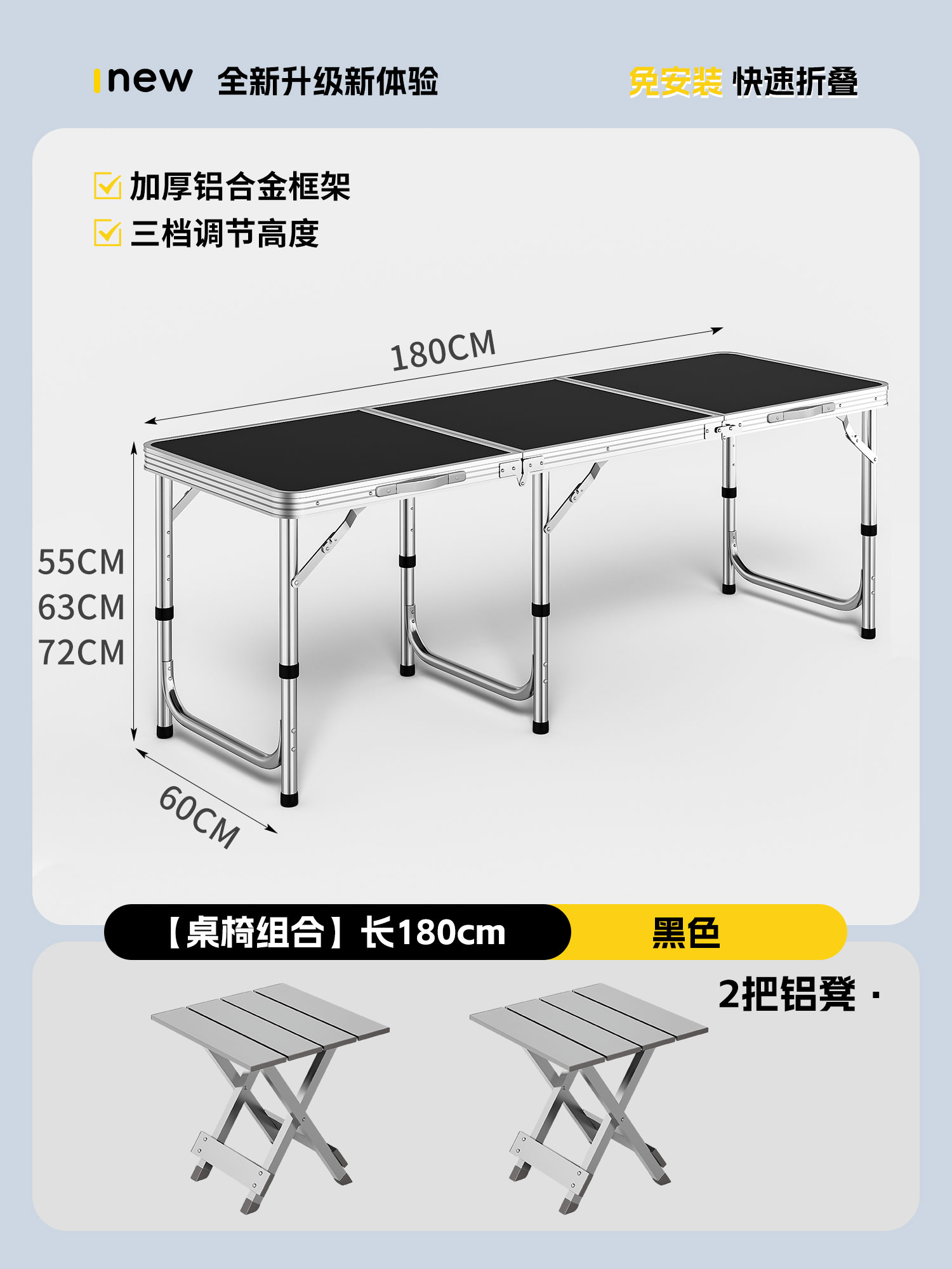 • ☆★**【볼드한 원형 다리 테이블 의자 세트】180CM 블랙 + 알루미늄 스툴 2개 (항공기 등급 두께 알루미늄/가볍고 튼튼함)**☆★