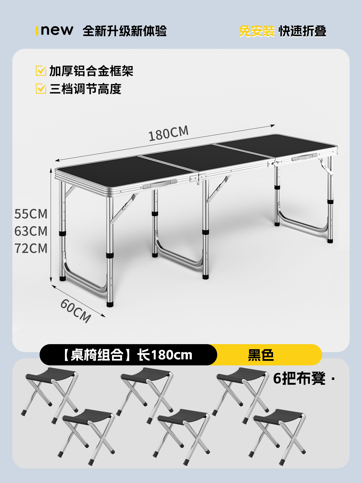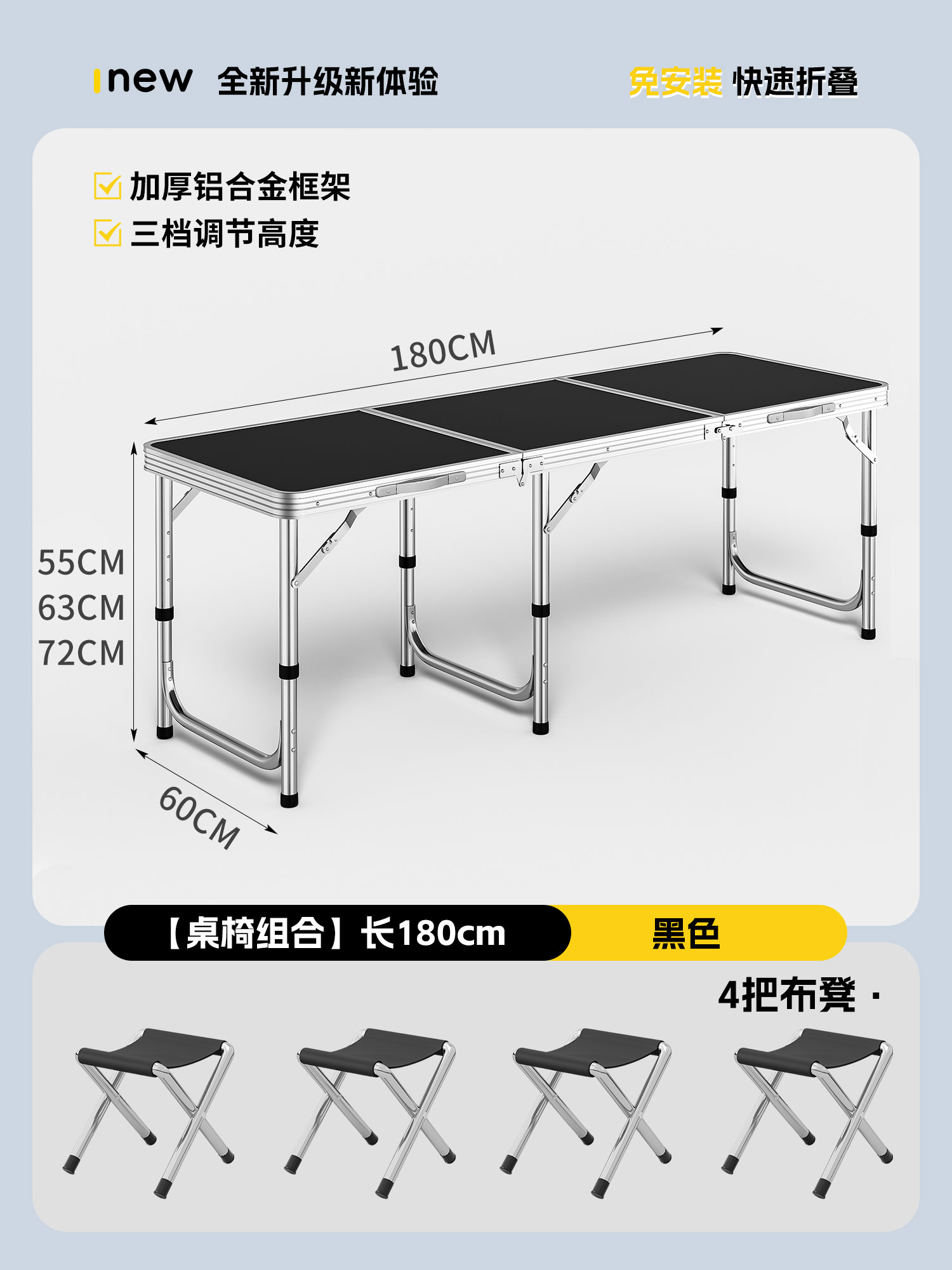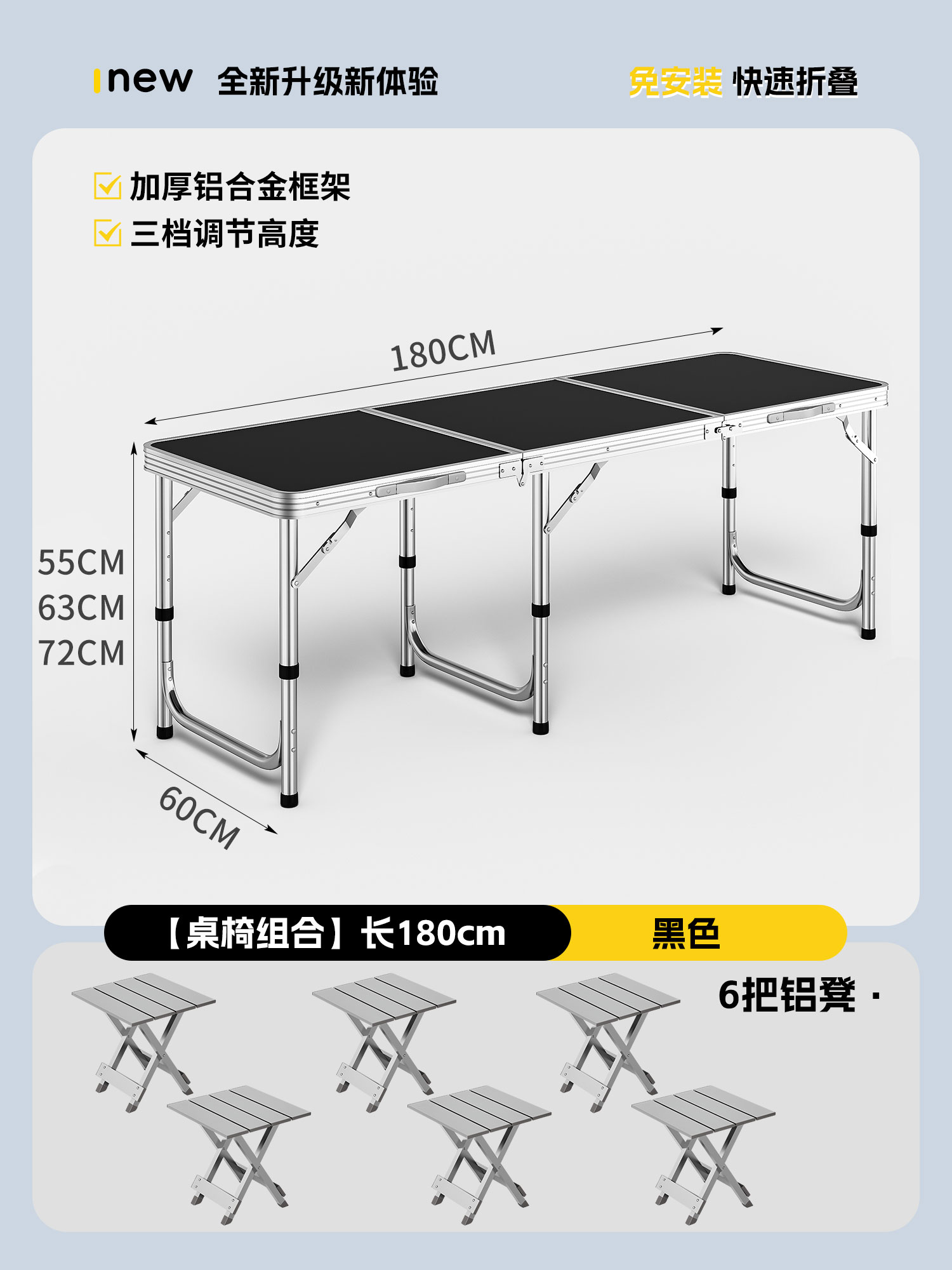 • ☆★**【볼드한 원형 다리 테이블 의자 세트】180CM 블랙 + 알루미늄 스툴 2개 (항공기 등급 두께 알루미늄/가볍고 튼튼함)**☆★