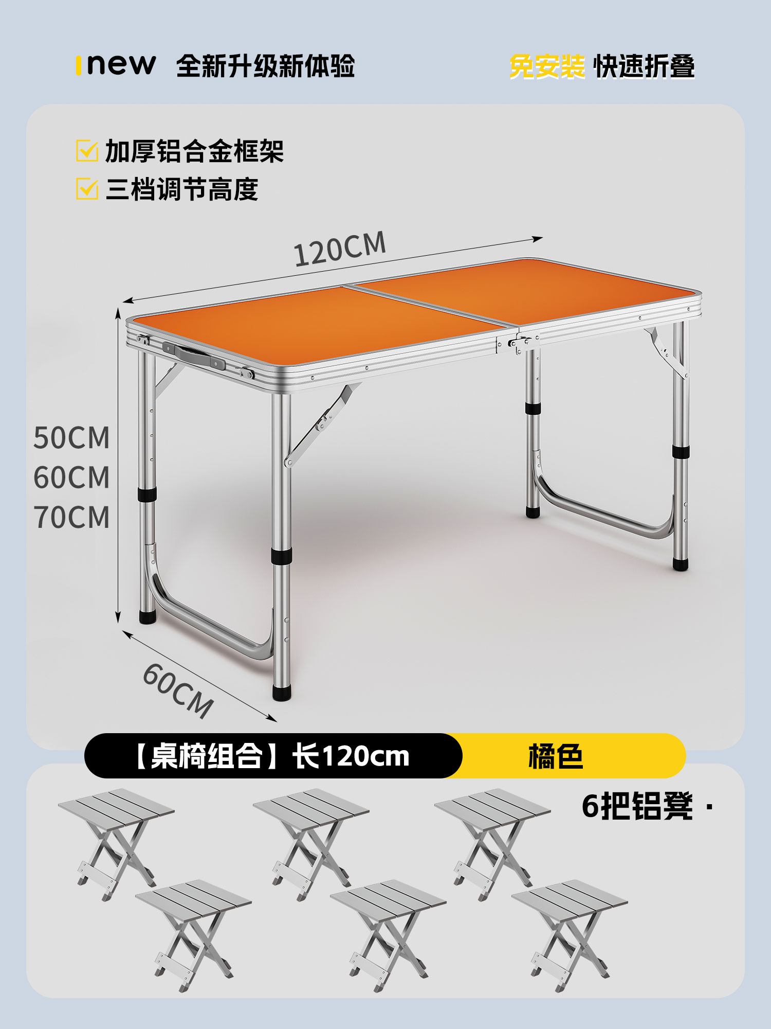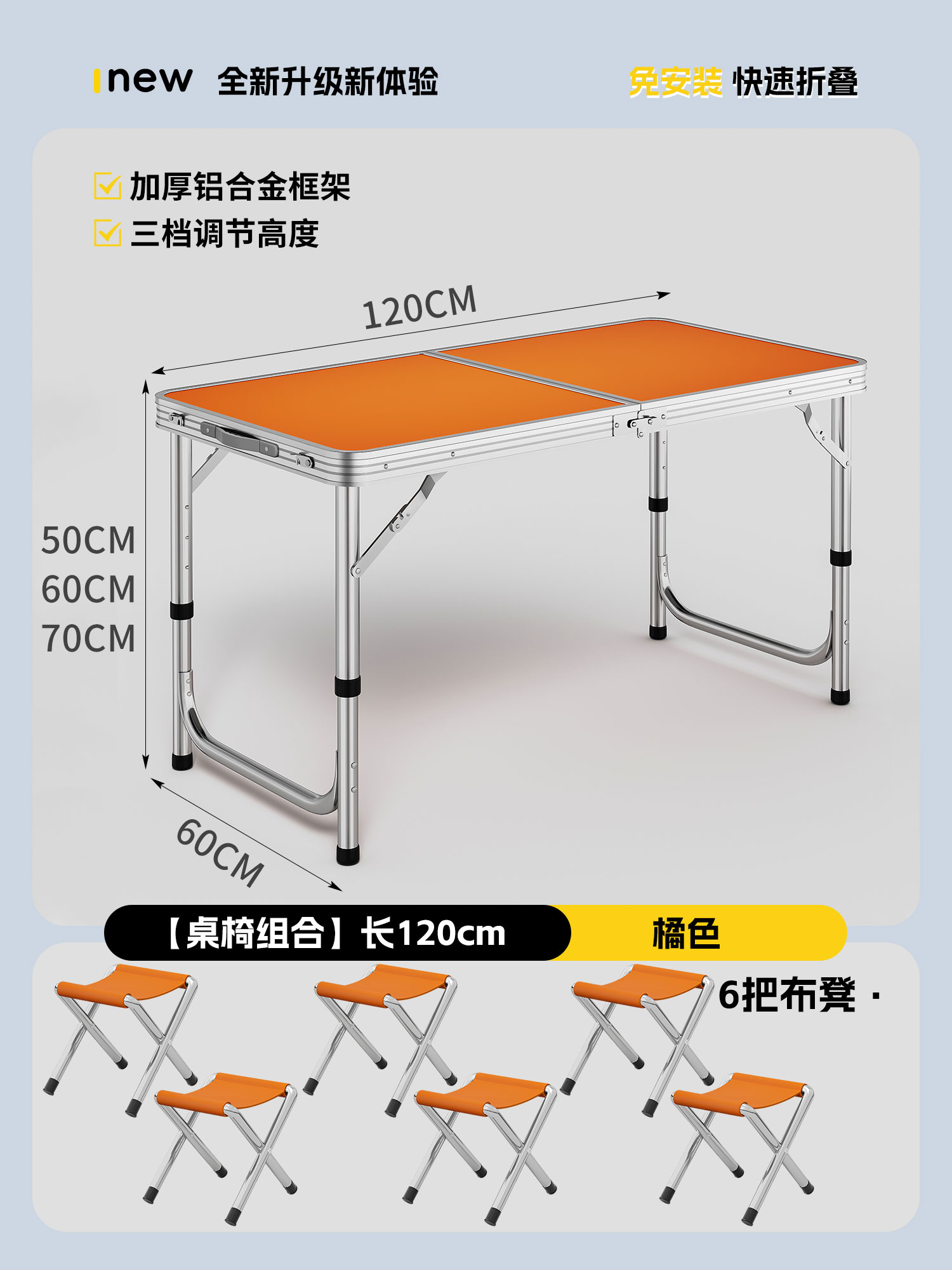 • ☆★**【볼드한 원형 다리 테이블 의자 세트】120cm 오렌지색 + 알루미늄 스툴 6개 (항공기 등급 두께 알루미늄/가볍고 튼튼함)**☆★