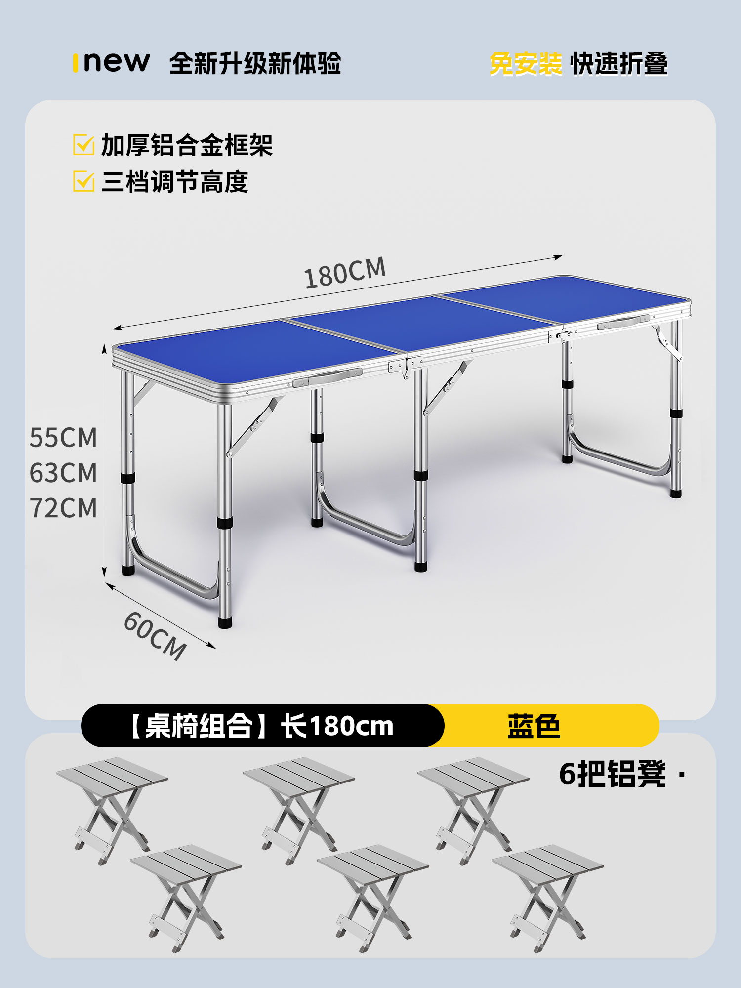• ☆★**【볼드한 원형 다리 테이블 의자 세트】180CM 블루 + 알루미늄 스툴 6개 (항공기 등급 두께 알루미늄/가볍고 튼튼함)**☆★